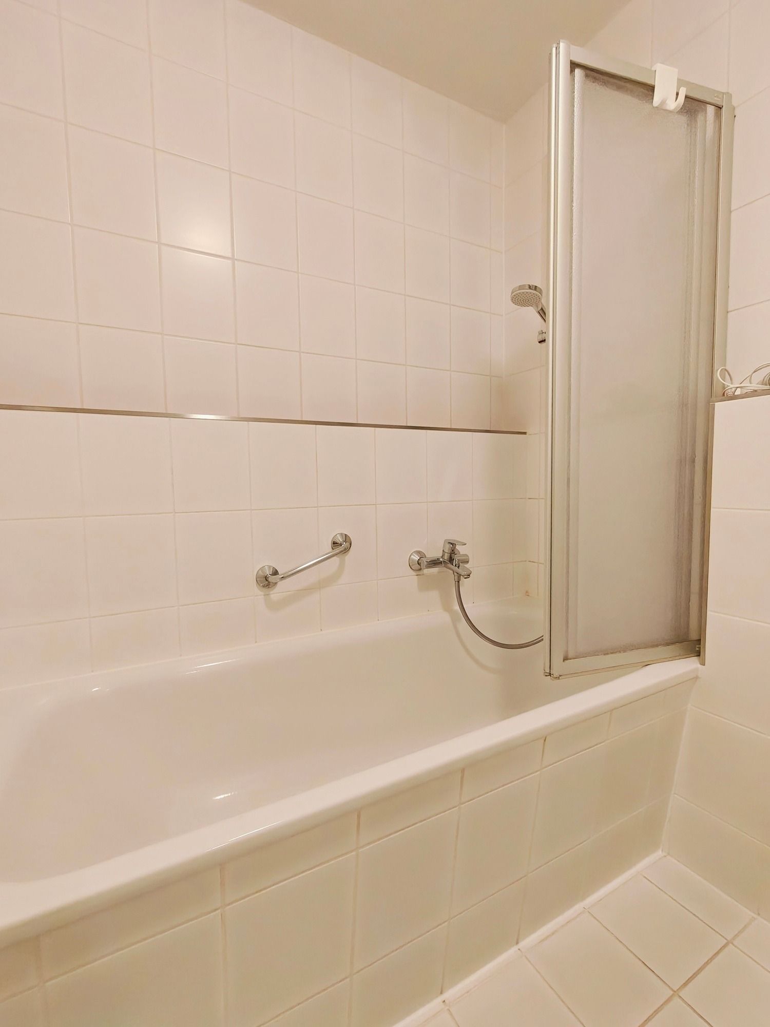 Das Badezimmer verfügt über eine Badewanne, WC sowie einem Waschtisch mit beleuchteten Spiegel.