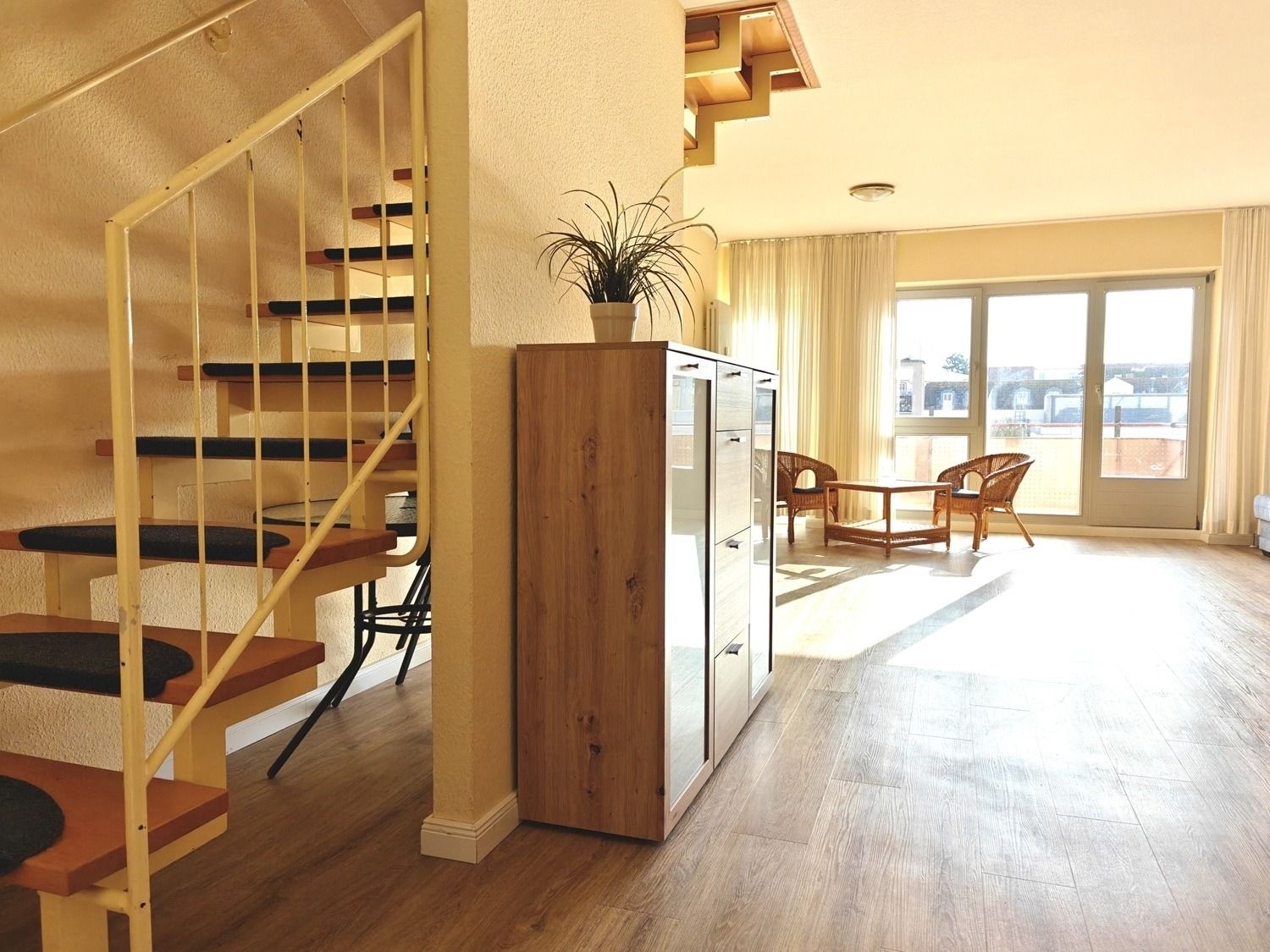 Ab der ersten Etage befinden sich weitere Ferienwohnungen in verschiedenen Größen und Einrichtungen, teilweise mit wunderschönem Meerblick. Ein Fahrstuhl bringt Sie gerne in die oberen Etagen.