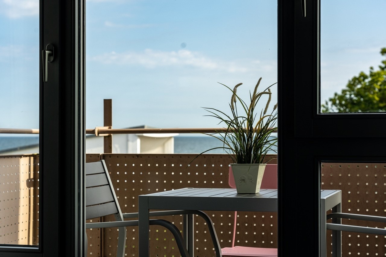 Großzügige und gemütlich eingerichtete Maisonette-Wohnung über 2-Etagen (ca. 80 qm) mit Balkon zur Meerseite und einem wunderschönen Blick auf die Ostsee.