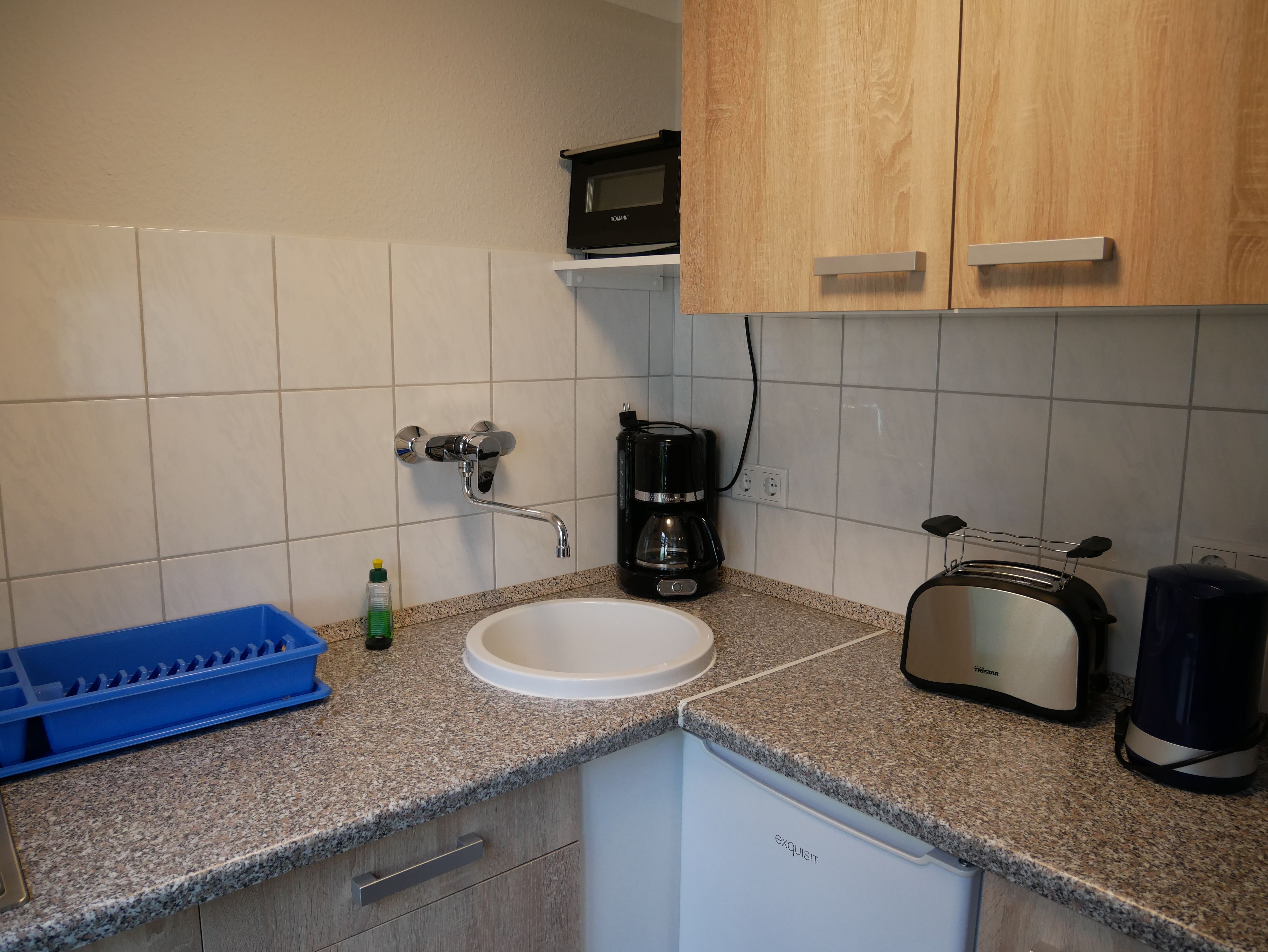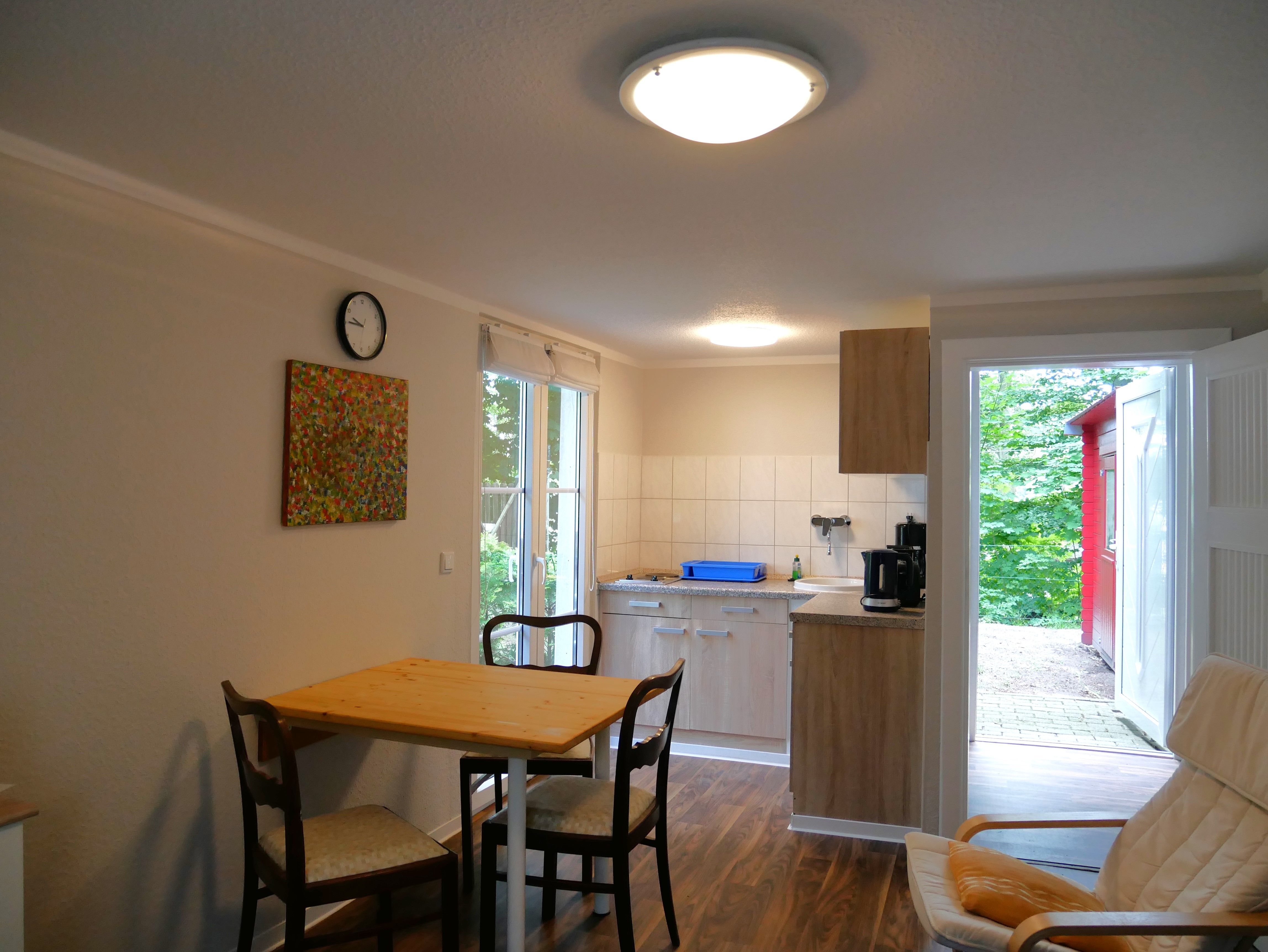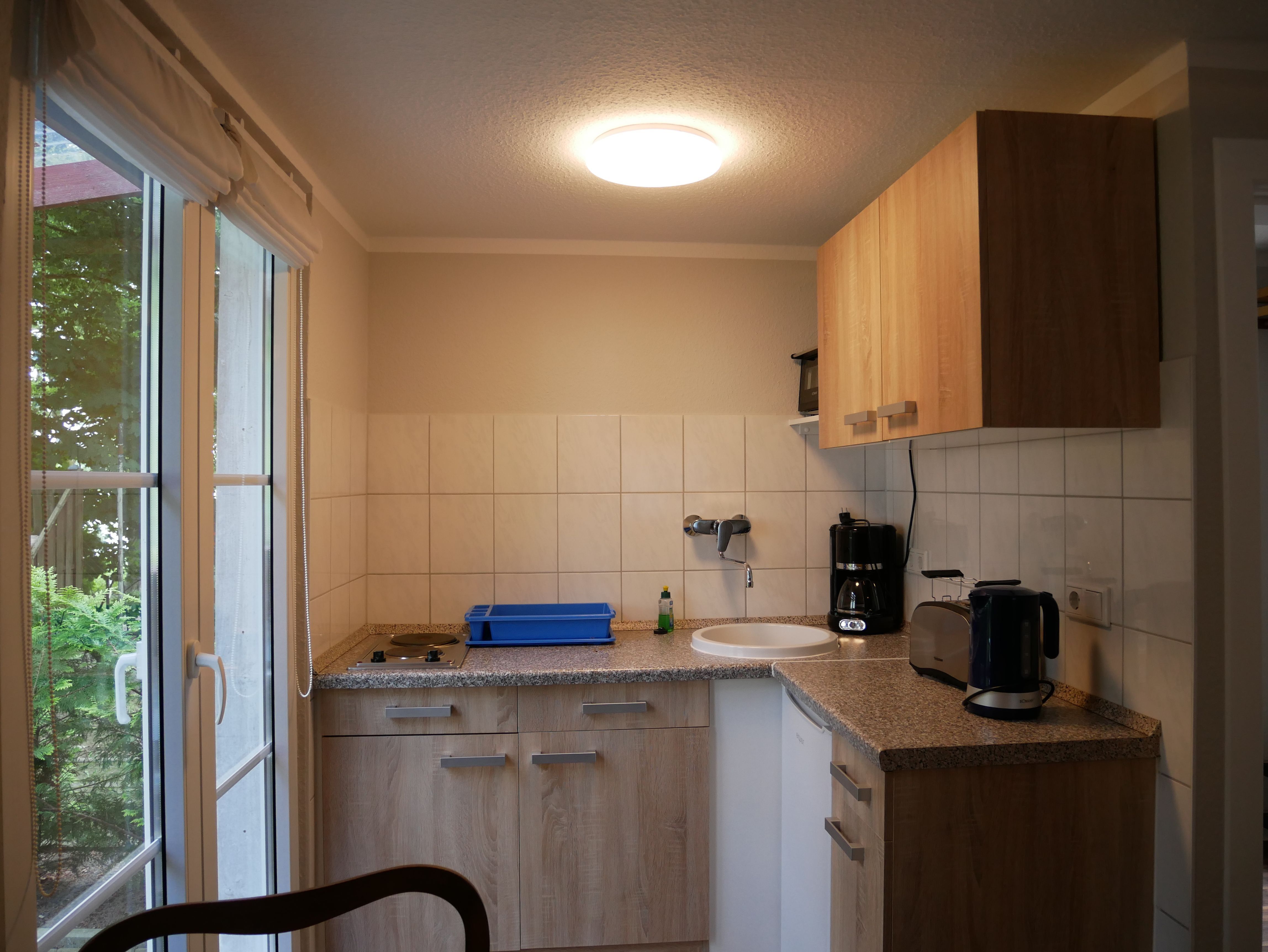 Der gemütliche 2-Raum-Bungalow verfügt über ein Wohnzimmer mit kleinem Essbereich für 3 Personen, einer Couch, Flachbild-TV und einer kleinen Küchenzeile mit 2-Platten-Herd, Kühlschrank, Spülbecken, Kaffeemaschine, Wasserkocher und Toaster. Das Schlafzimmer ist mit einem Doppelbett und einem Kleiderschrank ausgestattet. Im Badezimmer erwartete Sie Dusche/WC, Waschbecken, Spiegelschrank und ein Haartrockner. Auf der Terrasse, die direkt vor dem Bungalow liegt, kann man herrlich entspannen und den Tag ausklingen lassen.