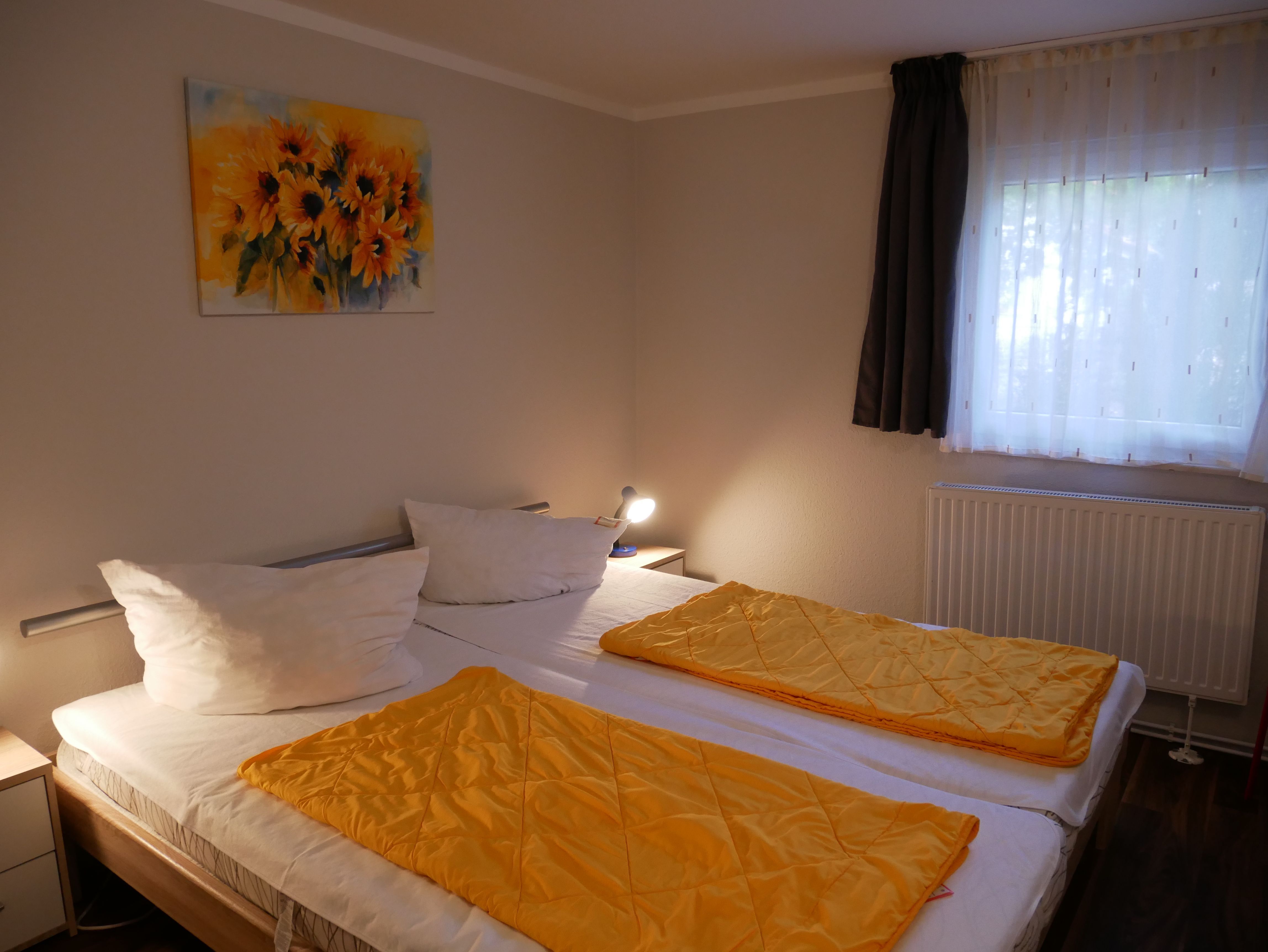Das Haus mit zwei Ferienwohnungen (EG und OG) & der Bungalow befinden sich nur 100 m vom Wolgastsee