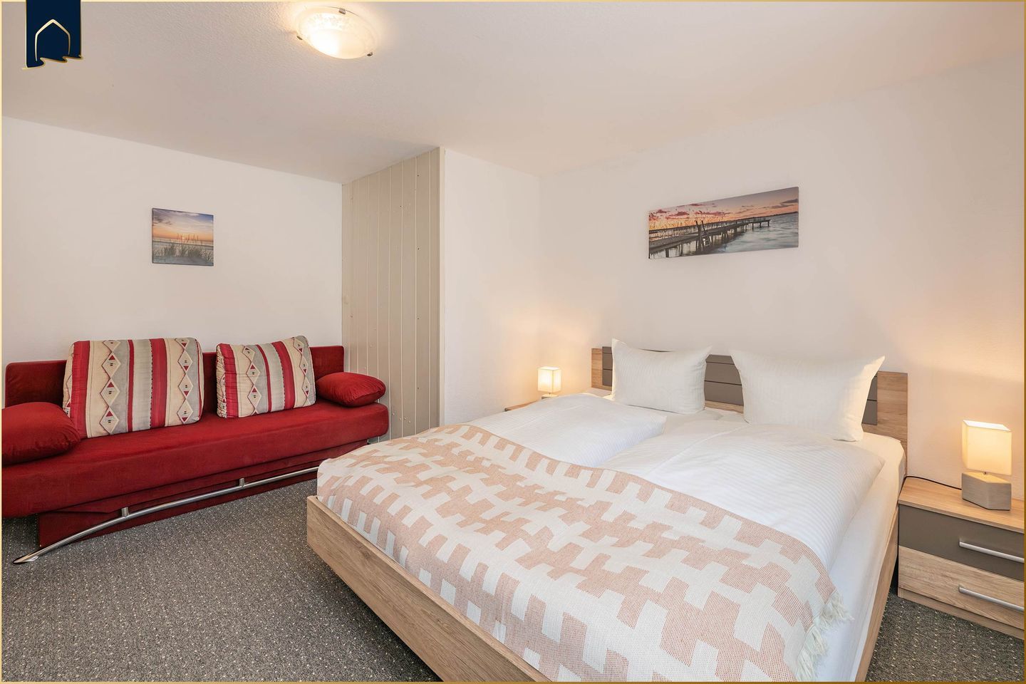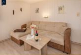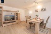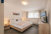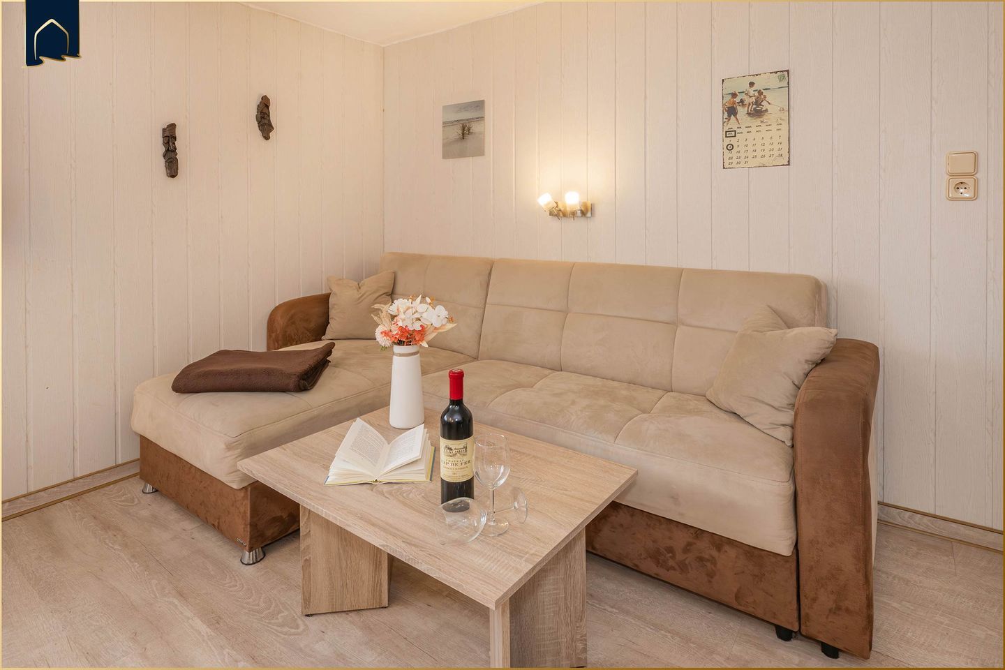 Ein Schlafzimmer, ein modernes Badezimmer mit Dusche und ein lichtdurchfluteter Wohnbereich mit bequemer Sofaecke und TV sorgen für Komfort und Entspannung. In der voll ausgestatteten Küche mit Kühlschrank, Gefrierfach, Herd, Mikrowelle, Spülmaschine, Kaffeemaschine, Toaster und Wasserkocher finden Sie alles, um Ihre Lieblingsgerichte auch im Urlaub zuzubereiten. Im Essbereich mit großem Tisch genießen Sie gemeinsame Mahlzeiten oder planen den nächsten Strandtag.