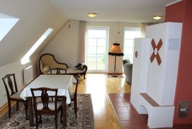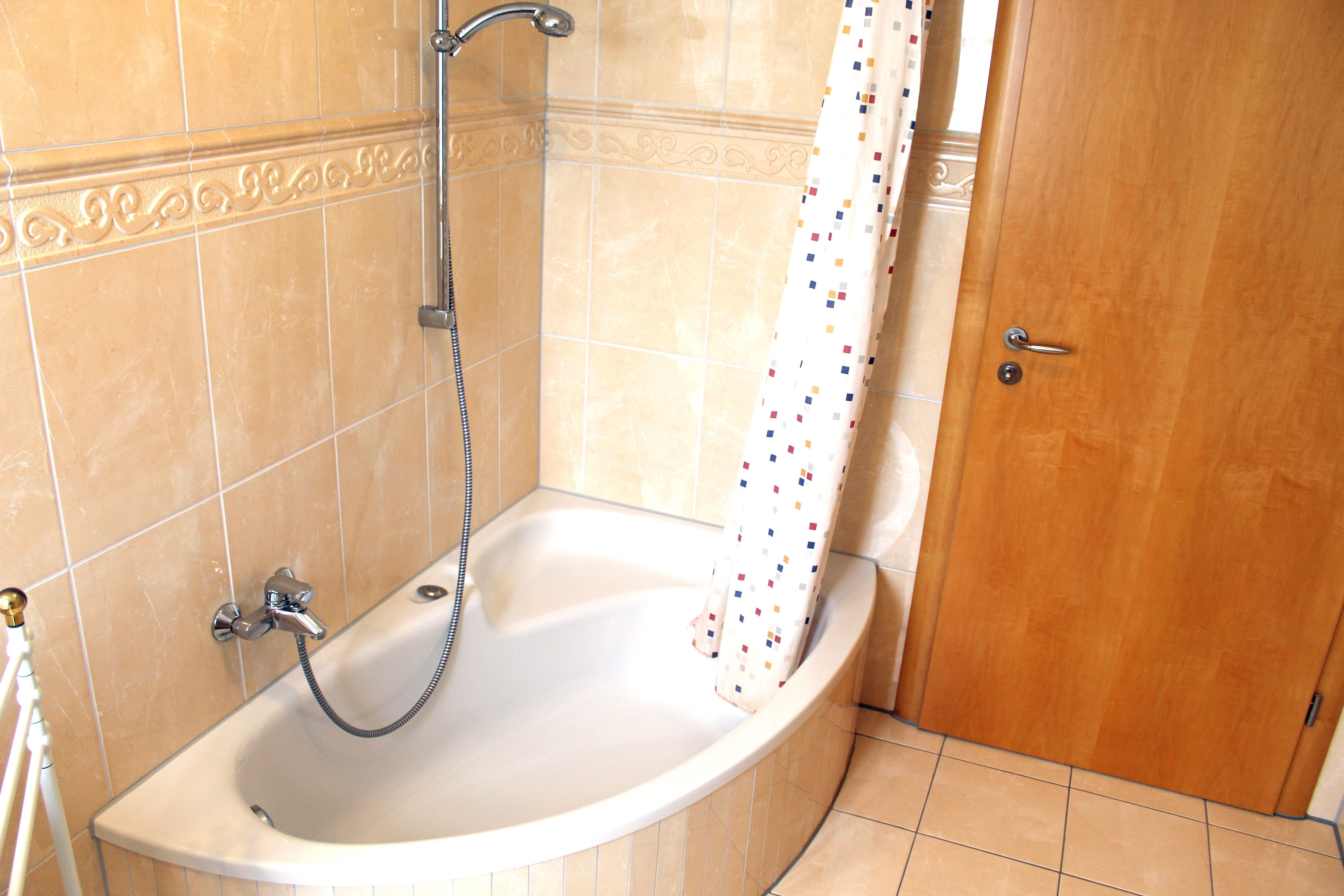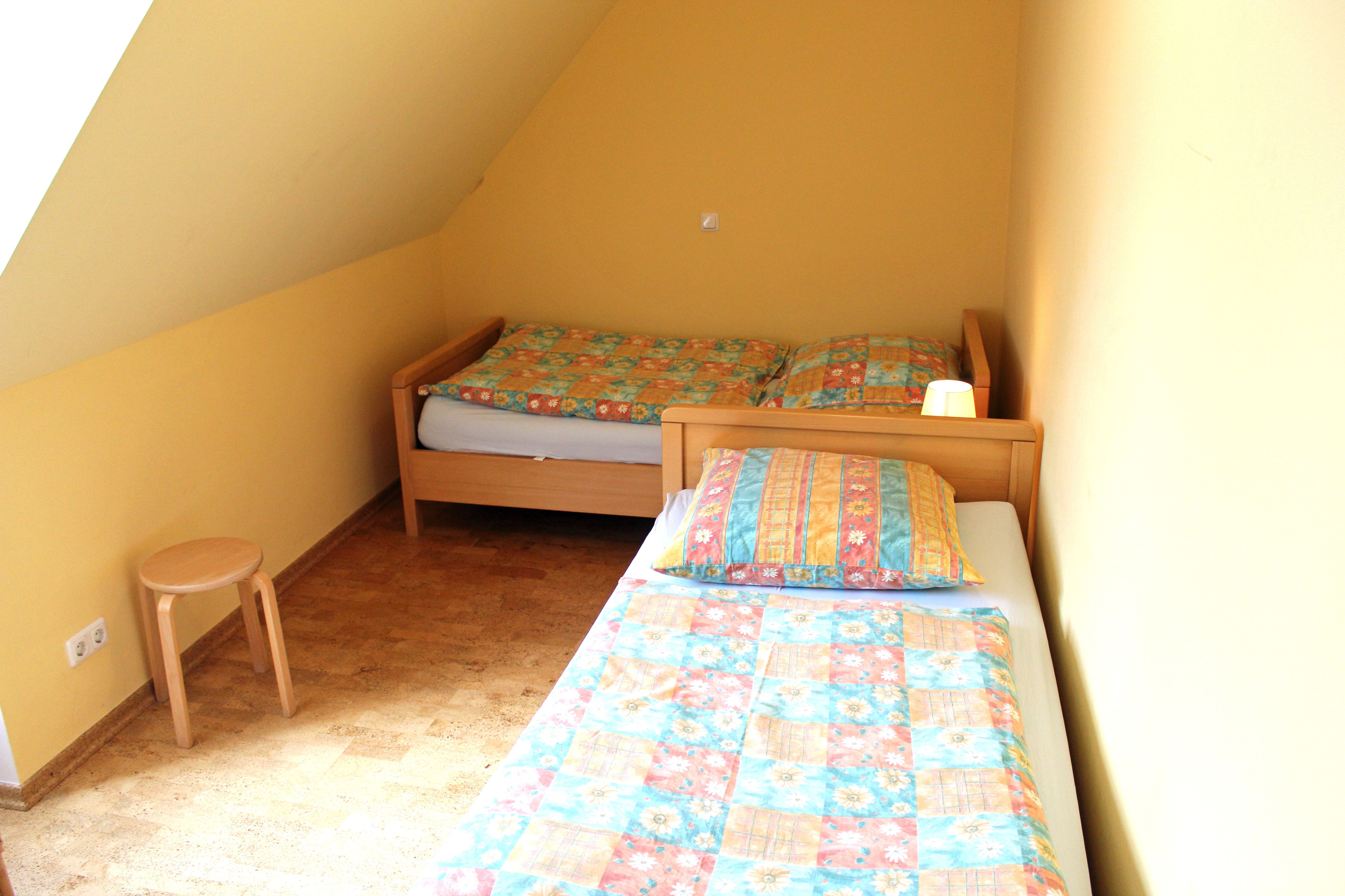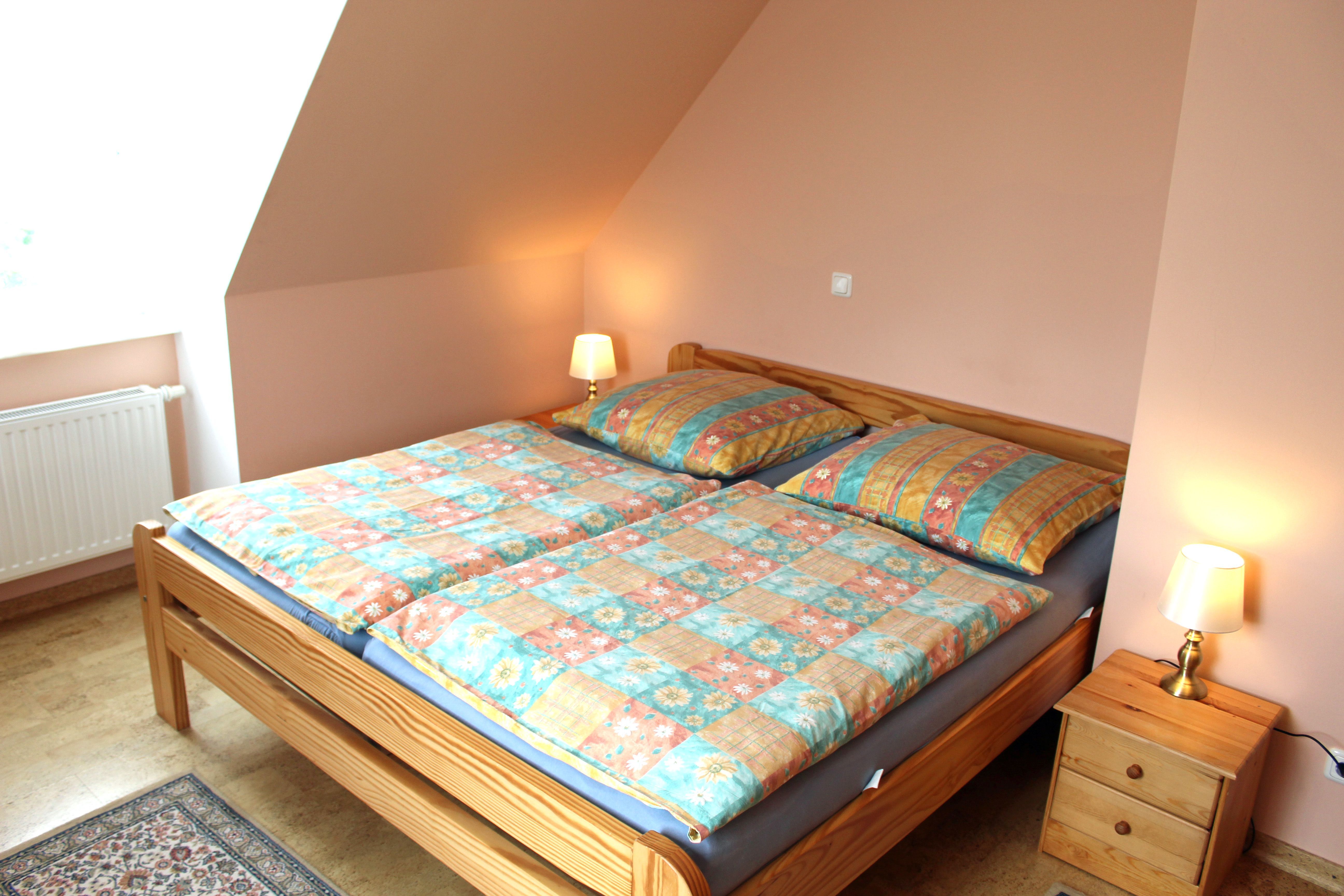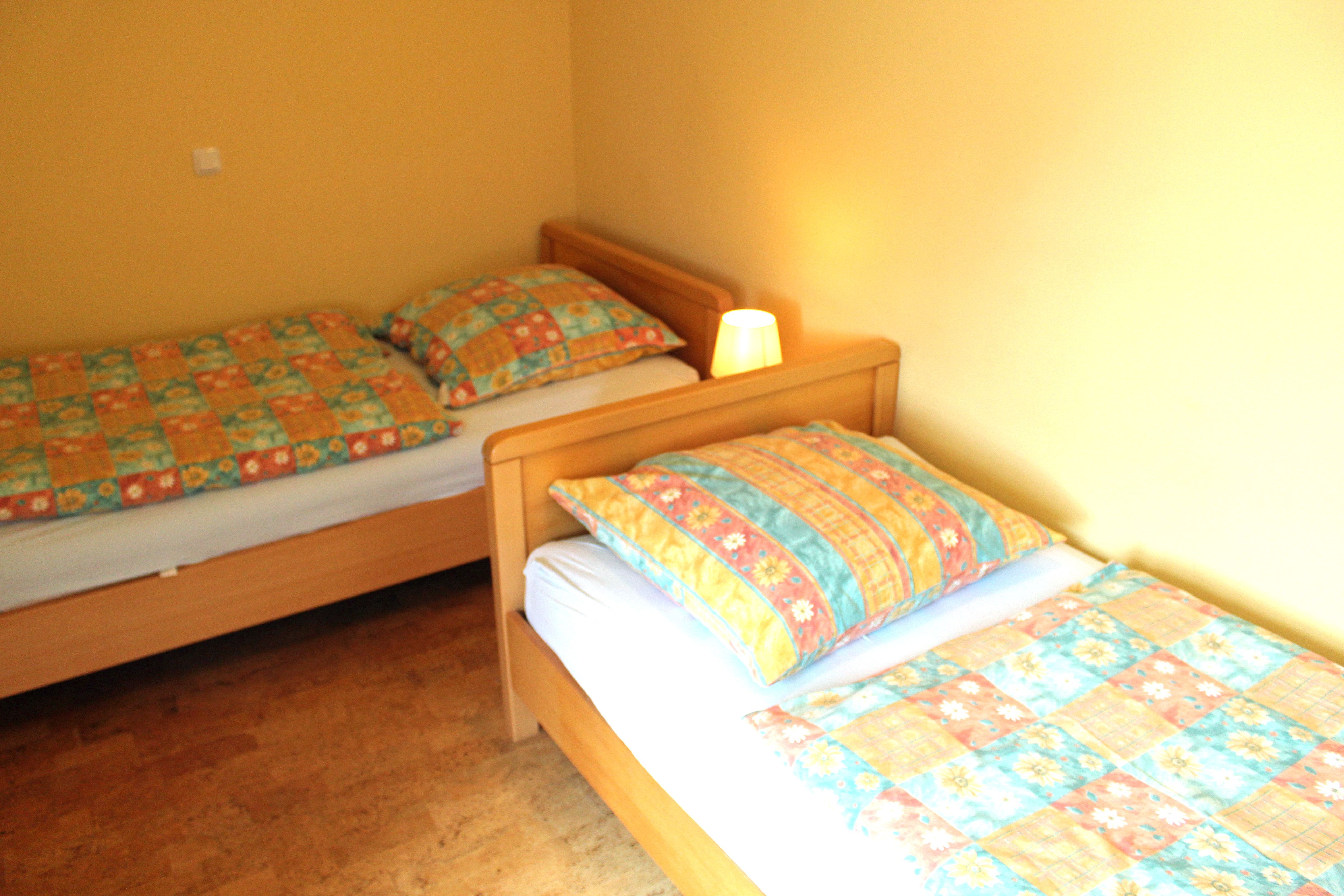 Im ersten Stock des Anwesens befindet sich die großzügige und wunderschön eingerichtete Wohnung. Sie verfügt über zwei Schlafzimmer, eines mit Doppelbett, das andere mit zwei EInzelbetten.