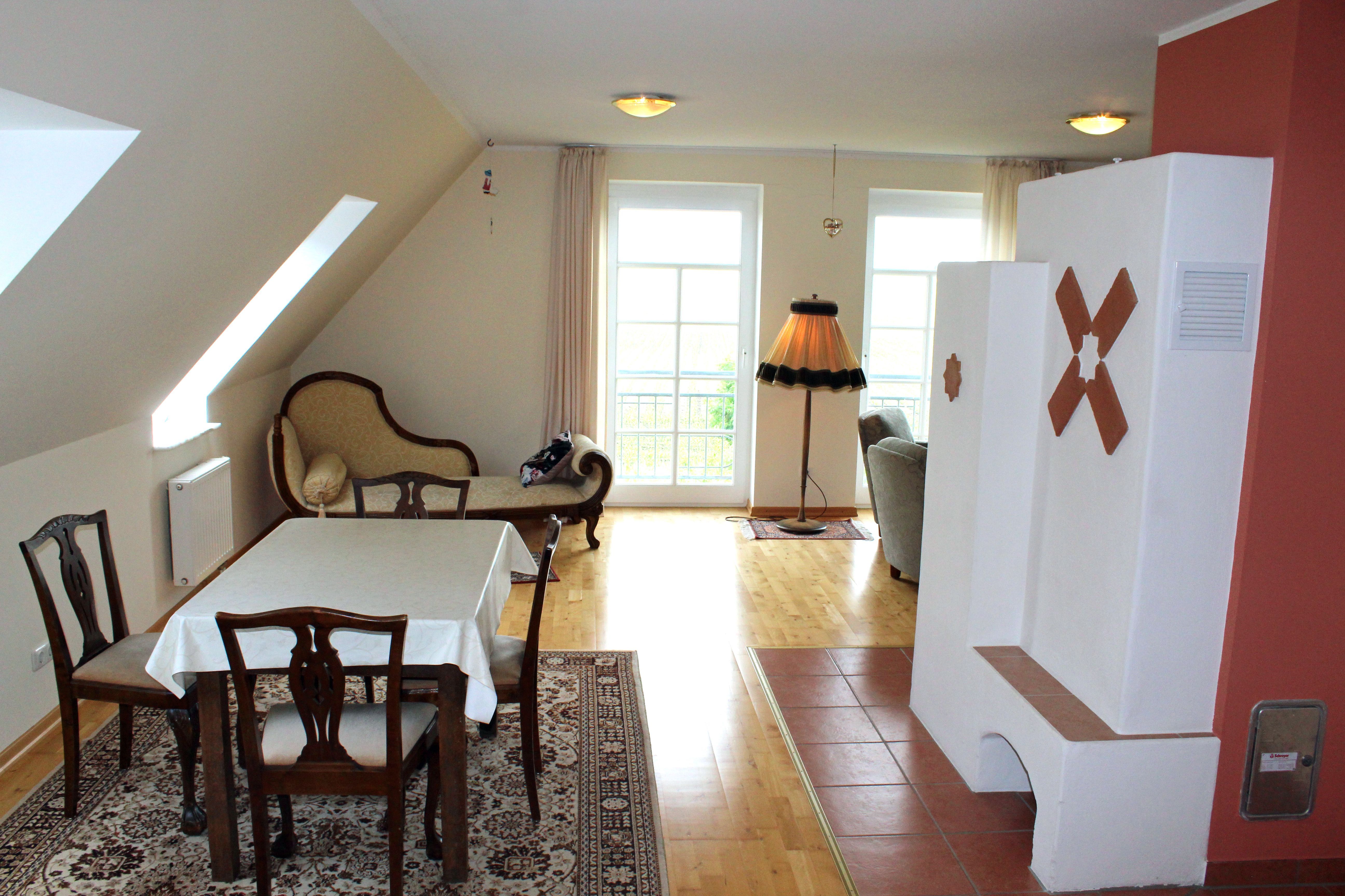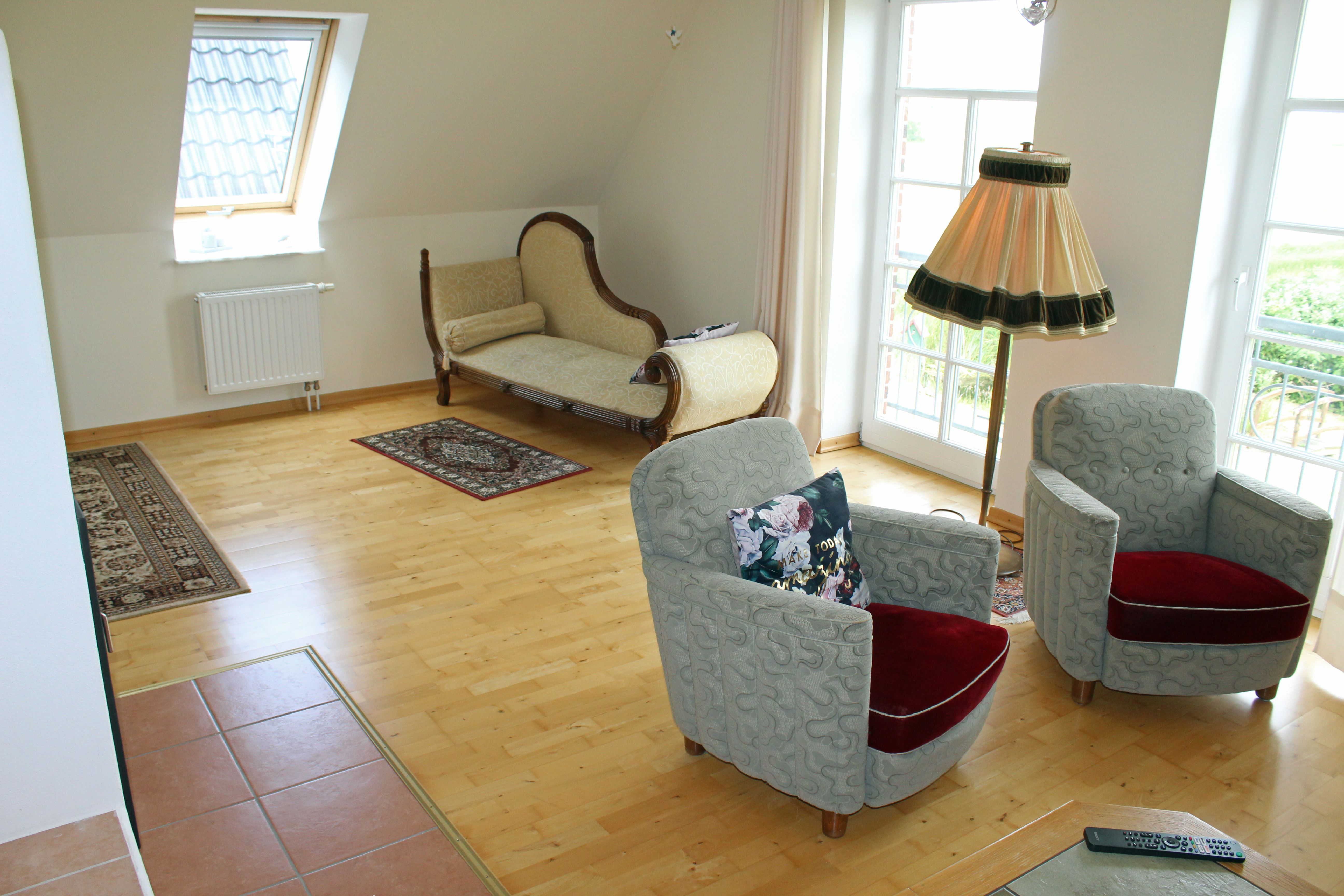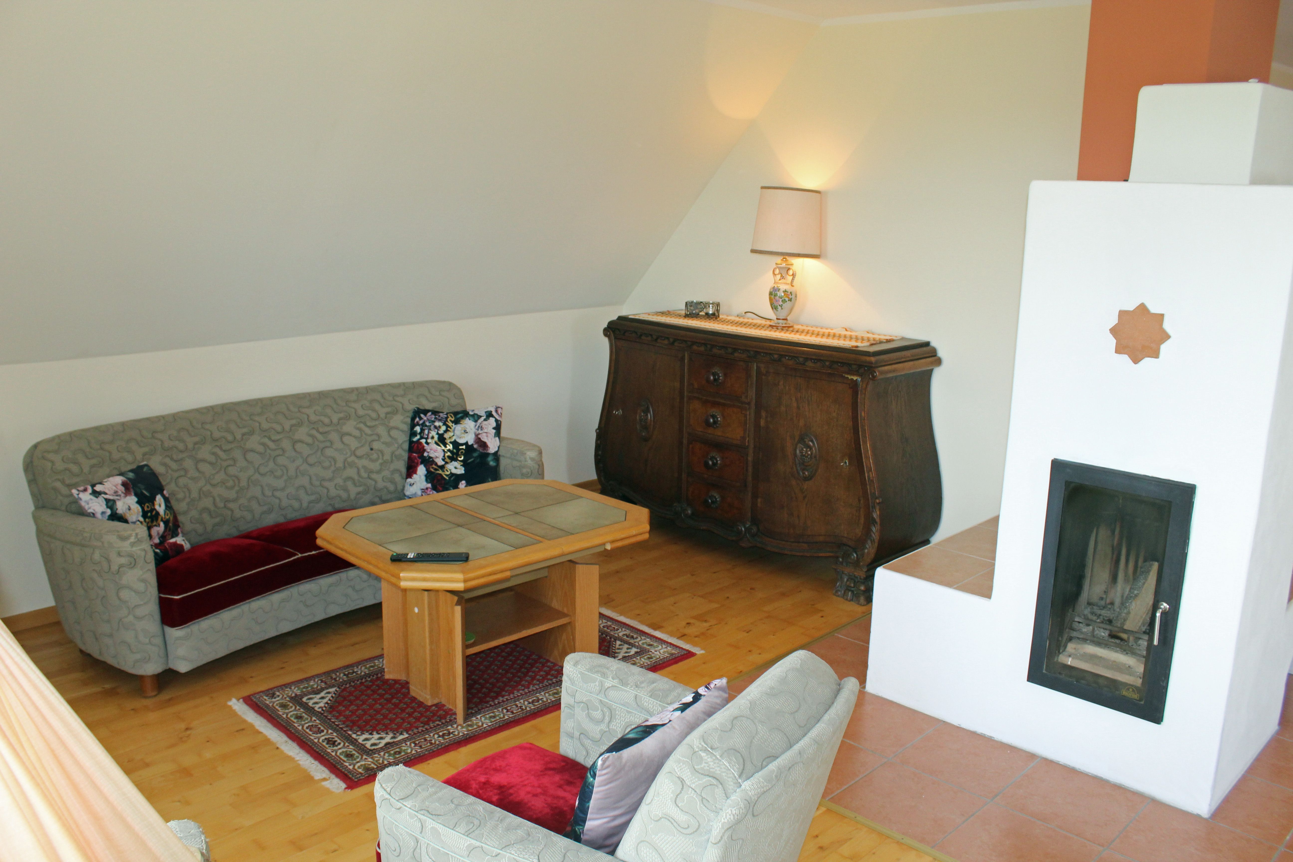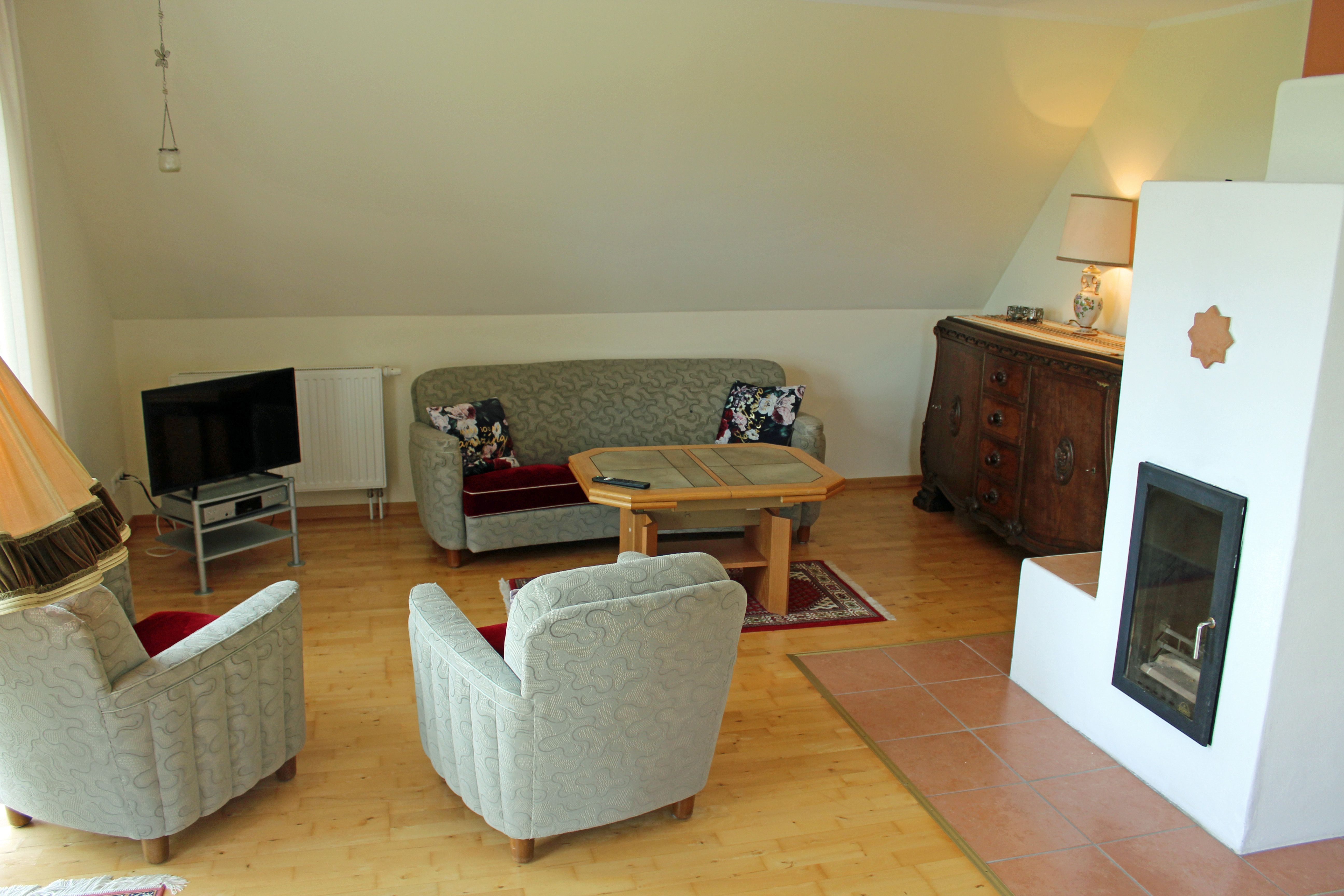 Herzstück der Wohnung ist das große Wohnzimmer mit Esstisch, Kamin und gemütlicher Sitzecke. Die Küche ist vollausgestattet inkl. Geschirrspüler. Im hellen Badezimmer wartet eine Duschwanne auf Sie.