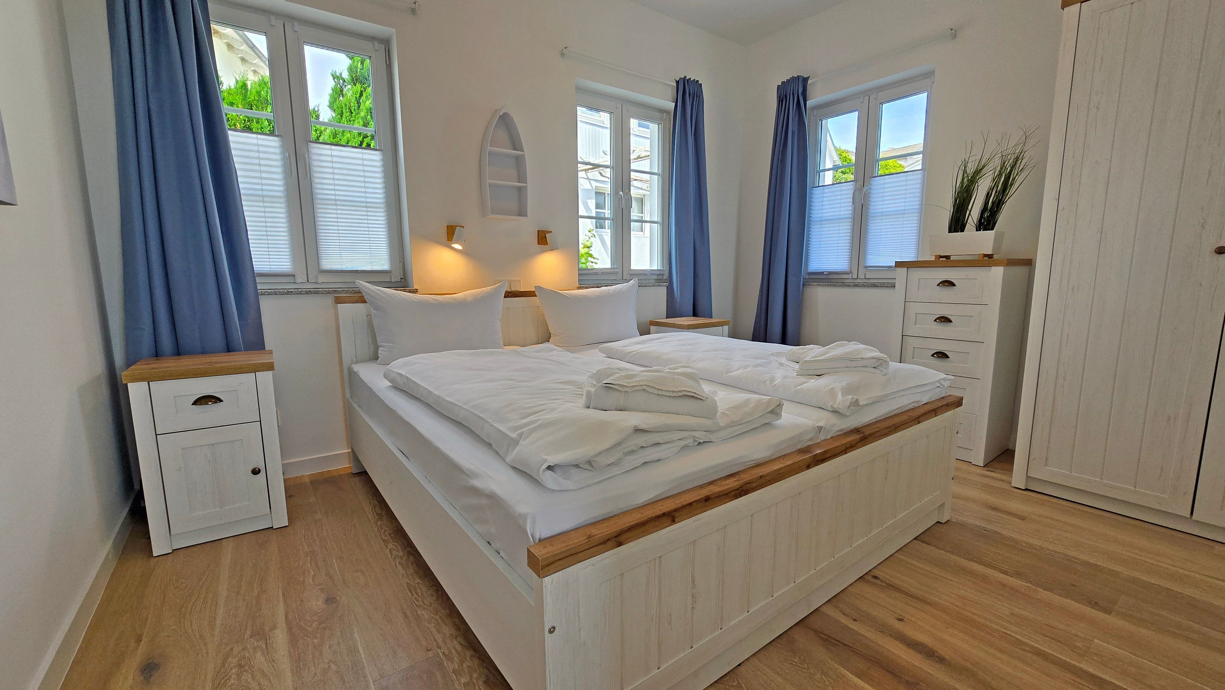 Ankommen und wohlfühlen! Wir haben die Betten für Sie bei Ankunft bereits bezogen. Im Gesamtpreis enthalten ist für jede anreisende Person ein Wäschepaket. Dies beinhaltet Bettbezug, Laken, Kopfkissenbezug, Badetuch und Handtuch. Zusätzliche Wäsche kann hinzugebucht werden.