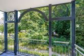 Ein weiteres Schmuckstück ist der Balkon mit traumhaften Blick ins Grüne des Kurparkes. Der überdachte Balkon ist vom Wohn-/Essbereich begehbar. Passende, gemütliche Terrassenmöbel für 4 Personen laden zu gemütlichen Stunden ein. Selbst wenn das Wetter mal nicht freundlich mitspielen sollte. - Süd-Ost-Ausrichtung!