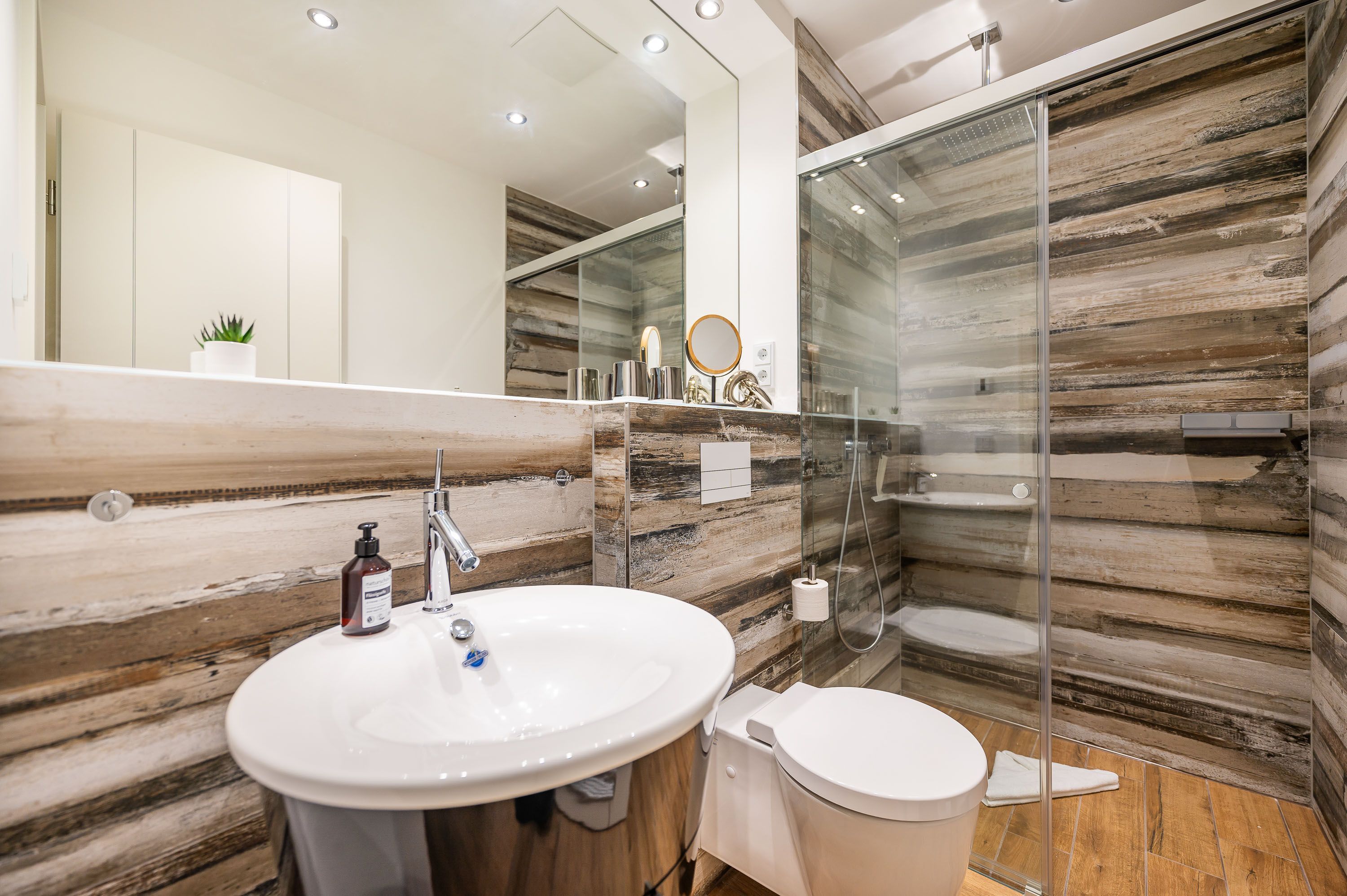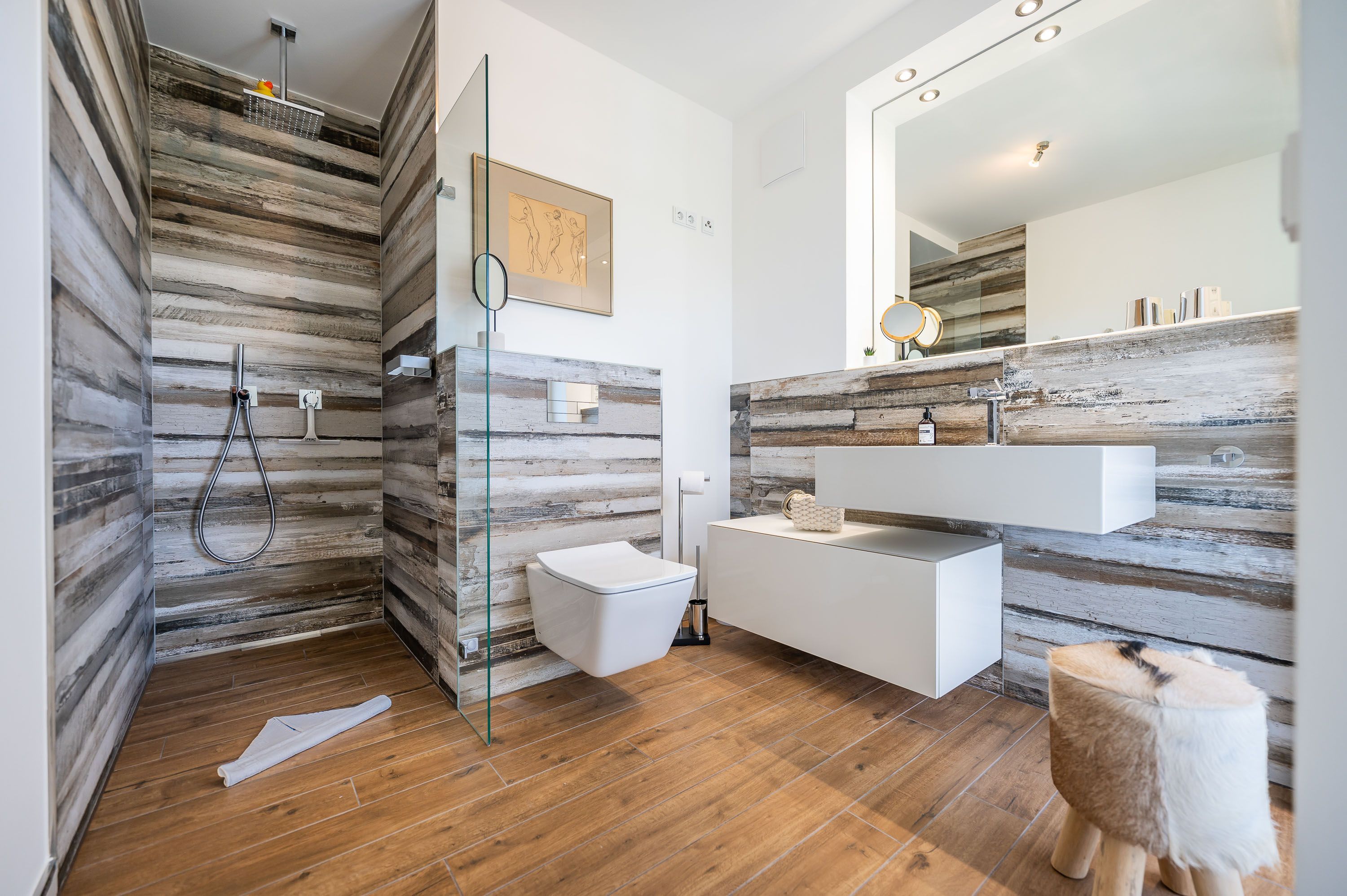 * insgesamt 2 Duschbäder mit Walkin-Dusche (Rainshower), Waschtisch, WC, Handtuchwärmer