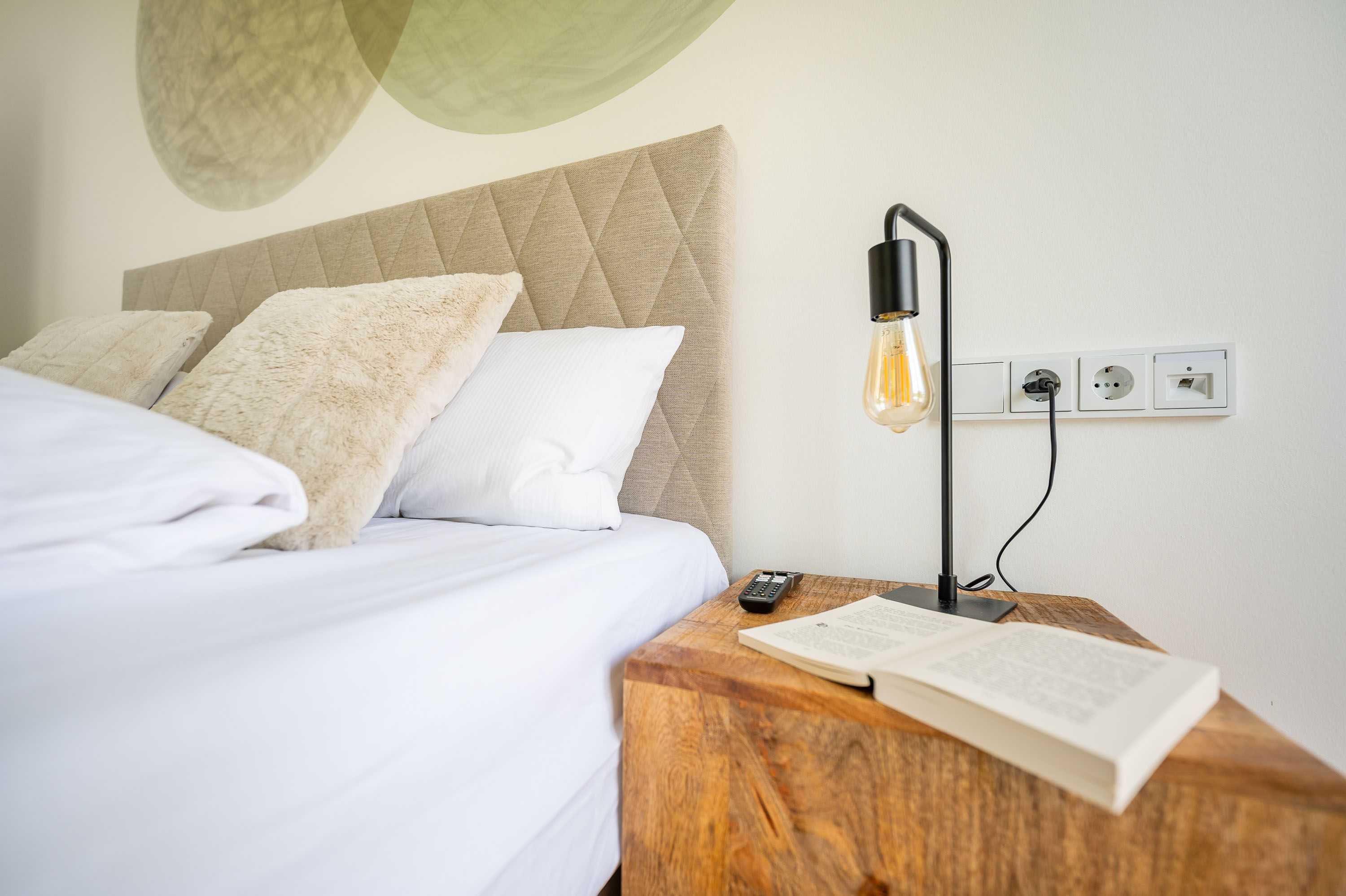 Es verfügt über zwei Schlafzimmer mit je einem gemütlichen Doppelbett (Maß 1,60 m x 2,00 m, mit Bettkasten), Flat-TV, Kleiderschrank. Das Master Schlafzimmer bietet zudem noch einen kleinen Schreibtisch und ein Bad en suite. Insgesamt gibt es zwei moderne Duschäder mit ebenerdiger Dusche (Walk-In)/WC.
