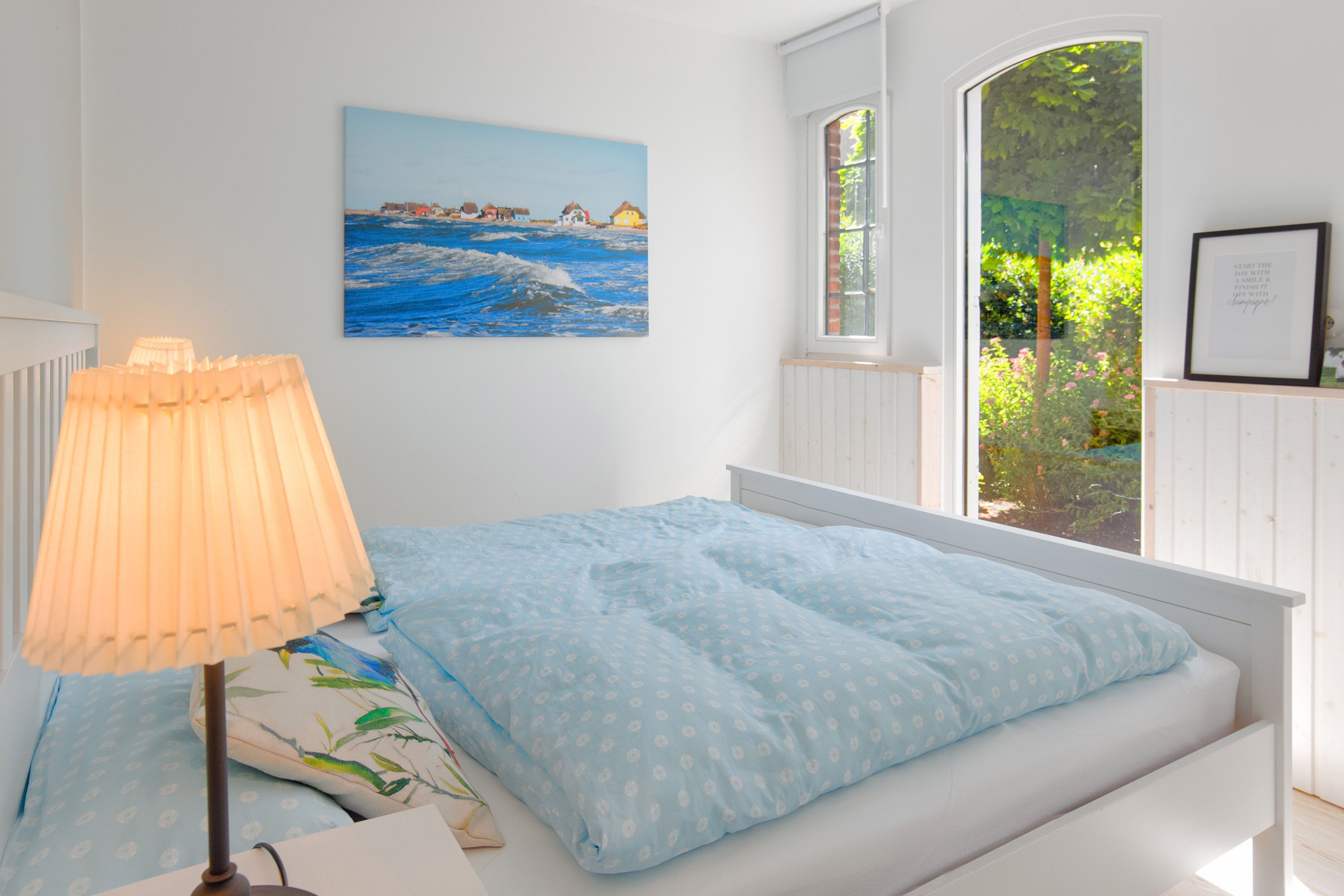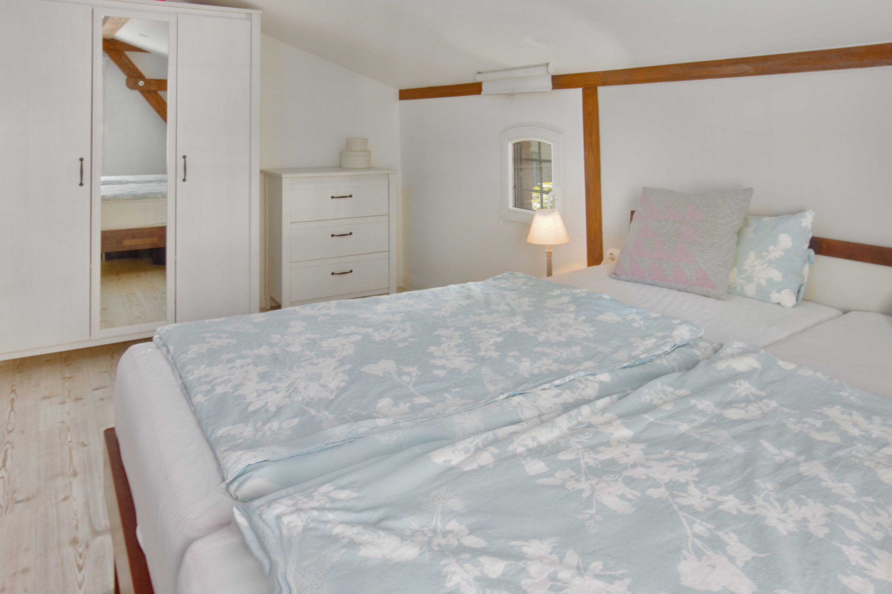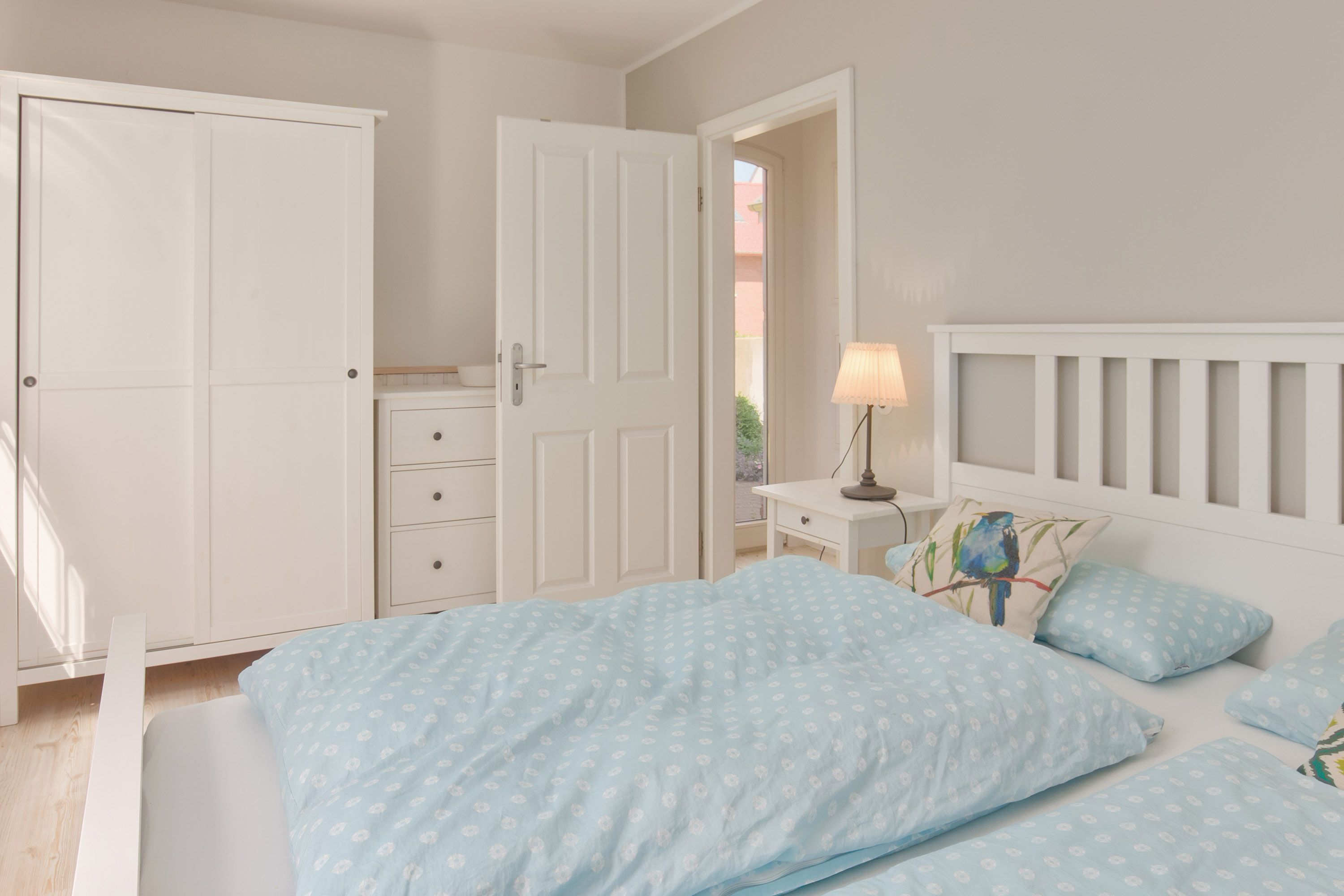 Vier Schlafzimmer mit verschiedenen Bettvariationen stehen zur Verfügung. Das 1.Schlafzimmer mit Doppelbett (180x200), das 2.Schlafzimmer ebenfalls mit Doppelbett (180x200), das 3.Schlafzimmer mit zwei Einzelbetten (90x200) als Doppelbett gestellt, und das 4.Schlafzimmer für Kinder mit einem Einzelbett (80x200), welches auf 160x200 ausgezogen werden kann. Kleiderschränke und Kommoden bieten dabei ausreichenden Stauraum. Allergiker geeignete Bettwäsche, Handtuchsets, Babyreisebett (ohne Bettzeug) und Hochstuhl können bei Bedarf gegen Gebühr geliehen werden. Für Verdunklung und nächtliche Ruhe sorgen hier blickdichte Rollos.