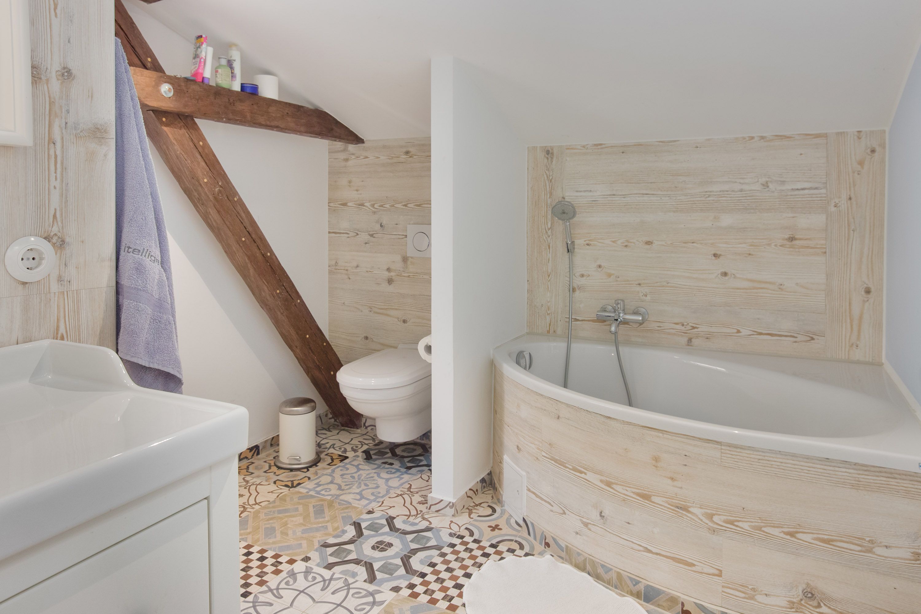 Von den Schlafzimmern erreichen Sie bequem die zwei modernen Badezimmer mit Fussbodenheizung, ebenerdigen Duschen, 1x Wanne, Handtuchwärmer, Waschbecken und WC. Eine integrierte Sauna steht zur Nutzung bereit. Hier erfrischen Sie sich ganz leicht und holen sich die Entspannung von einem ereignisreichen Urlaubstag zurück. Ein Waschtrockner gehört ebenfalls zur Ausstattung.