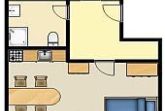 Wohn-/Schlafbereich mit Doppelbett