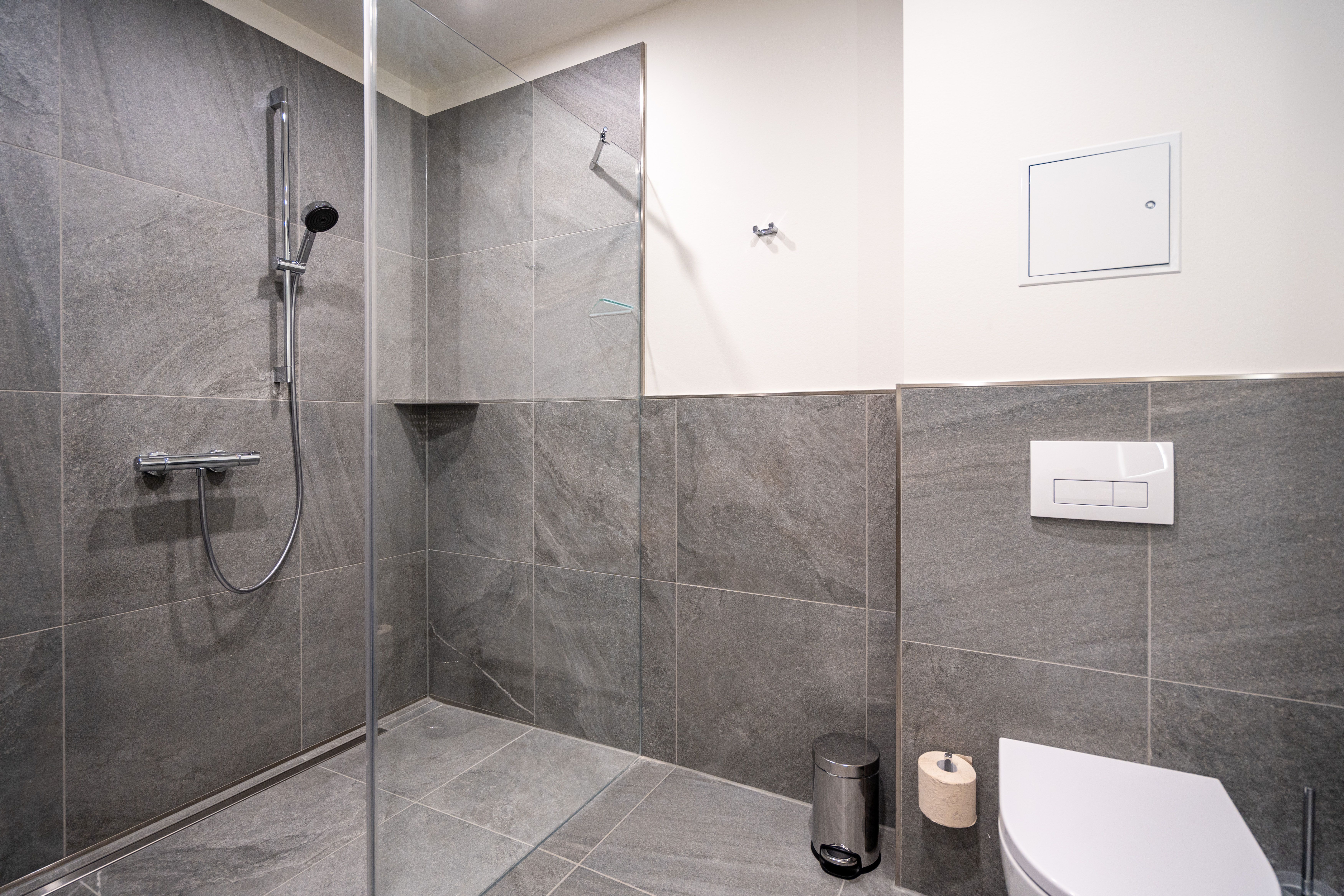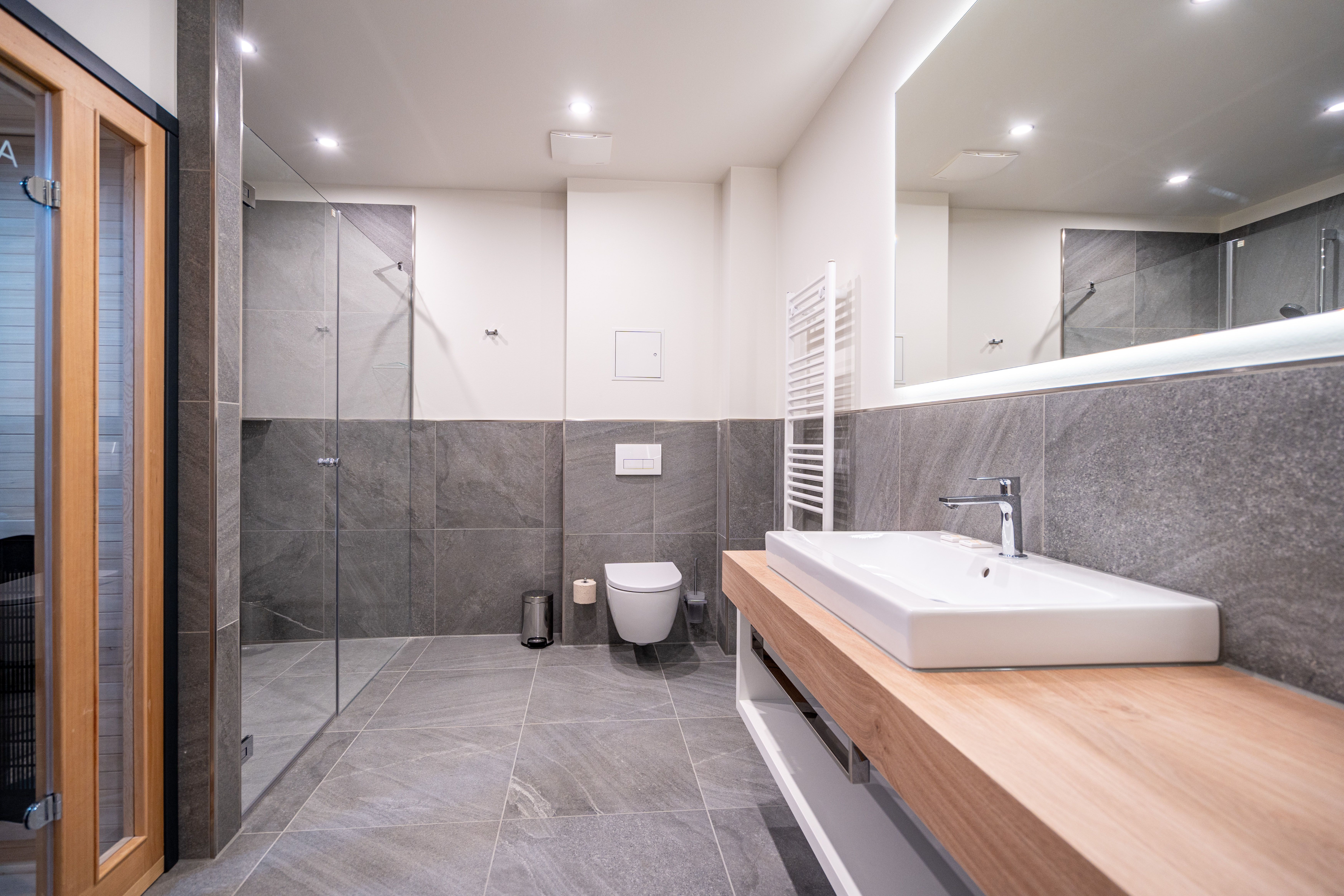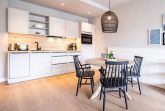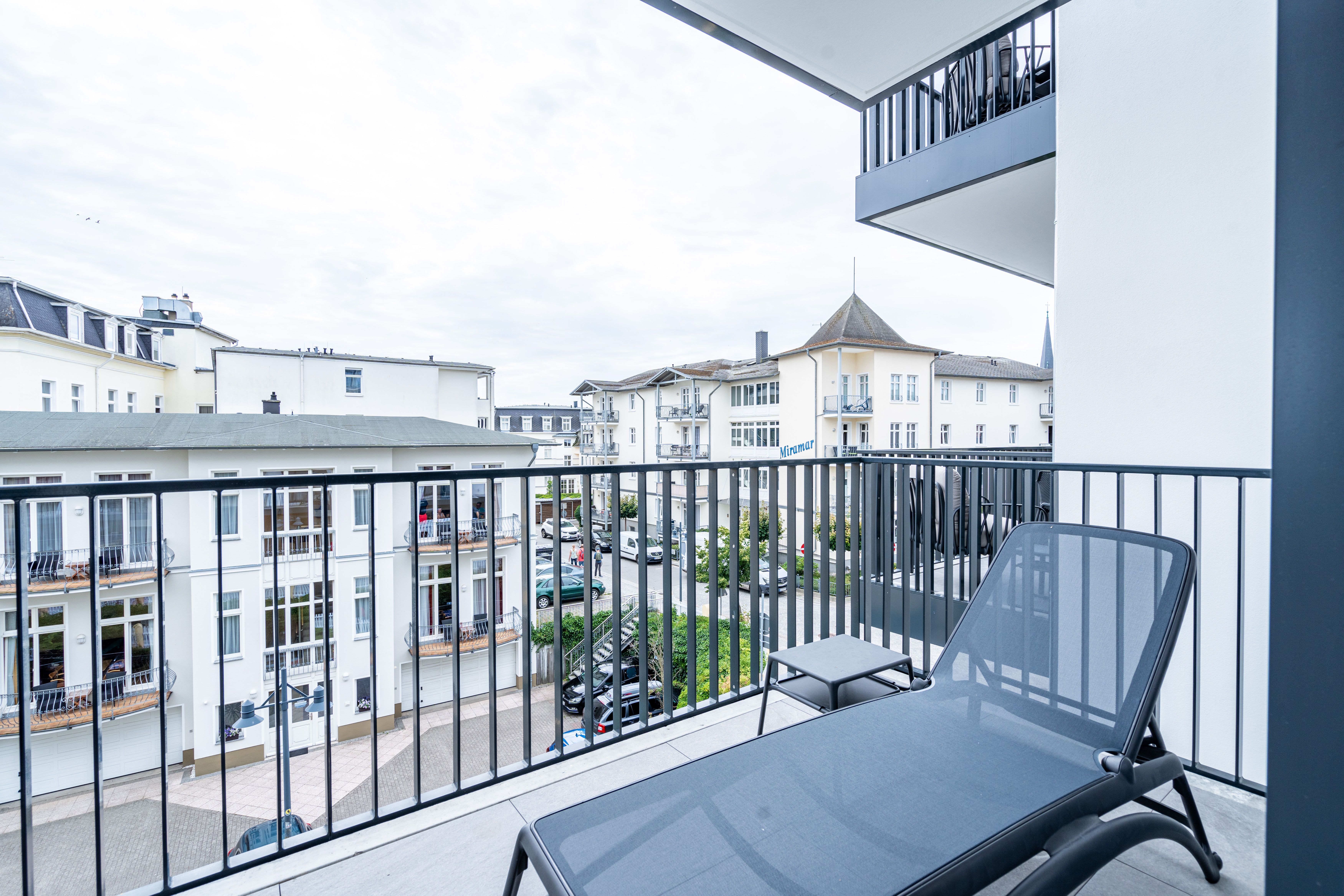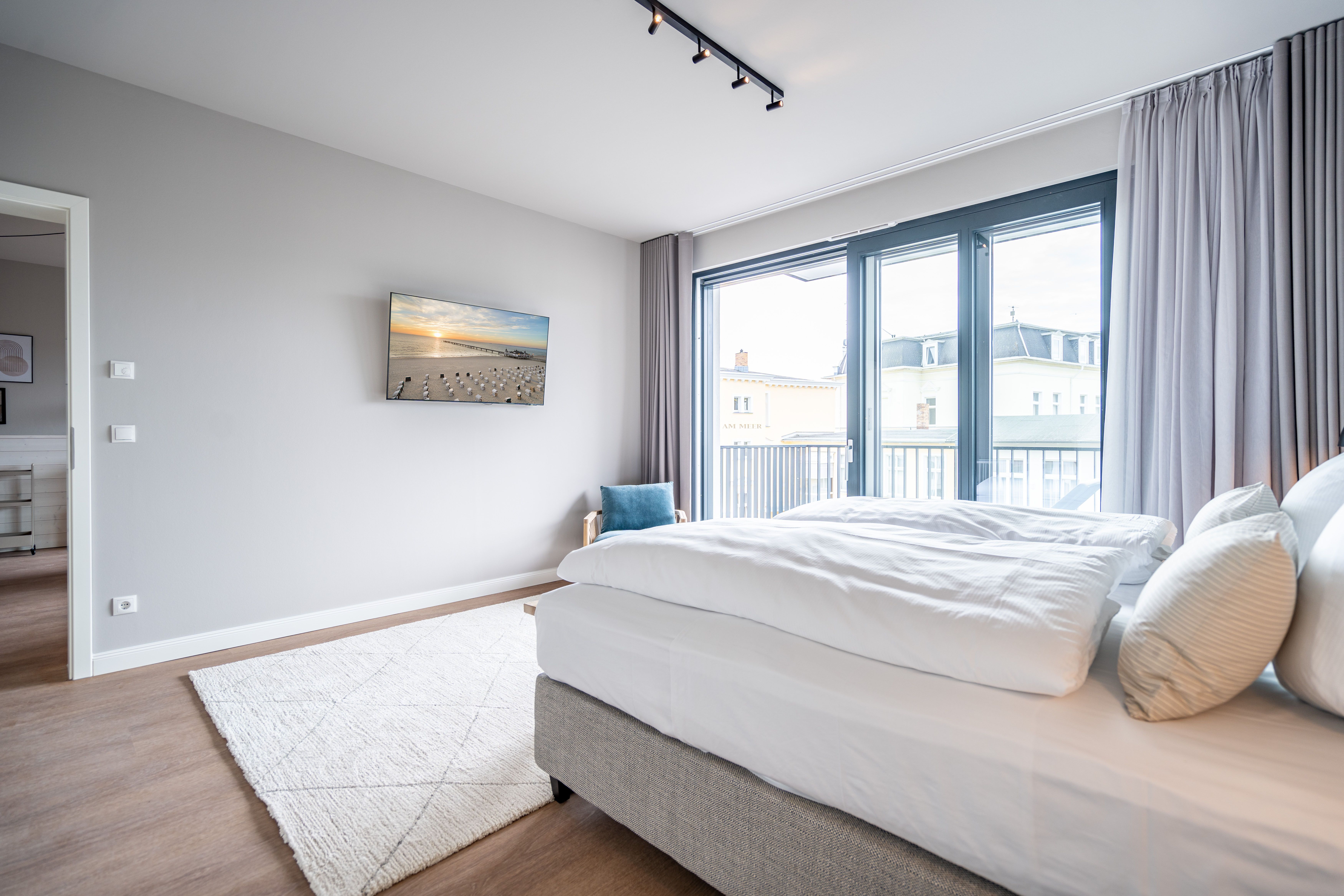 Die 2024 fertig gestellte Strandterrasse liegt direkt an der belebten Strandpromenade und bietet einen einzigartigen Ausblick auf die Grand Dame der historischen Seebrücken sowie die historische Konzertmuschel, einem beliebten Treffpunkt für Kunst und Kultur. Dahinter liegt die Ostsee ein Panorama, das zu den schönsten in den Kaiserbädern gehört. Es ist wie das Abtauchen in eine andere Zeit. In eine Zeit, in der man mit Stock, Sonnenschirm und Hut fürs Sehen und gesehen werden über die Promenade schlenderte; aber auch in eine Zeit, in der damals wie heute Zeit einmal für eine kurze Weile keine Rolle spielt. Weil man angekommen ist im Loslassen, Entspannen und Genießen. Es ist dieser besondere Geruch nach Meeresluft und Freiheit, der in Erinnerung bleibt. Dazu die Bilder, die man mitnimmt. Von langen Strandspaziergängen, vom Lachen in fröhlich schäumenden Ostseewellen, von der Zeit in einem wunderschönen Urlaubsdomizil. Denn genau das ist die Strandterrasse mit ihren 56 modernen und exklusiven Ferienappartements direkt gegenüber der Ahlbecker Seebrücke. Die Ein-, Zwei- oder Dreizimmerwohnungen zwischen 40 und 70 Quadratmeter groß sind von einer Innenarchitektin gemeinsam mit unserem Erfahrungsschatz an Gästewünschen mit viel Liebe zum Detail und ganz individuell konzipiert worden. Entspannung und Wohlfühlen stehen an erster Stelle. Alles ist aufeinander abgestimmt und sorgt für eine gemütliche Atmosphäre. Wählen Sie zwischen einem Domizil in einem hellen, sandfarbenen Designkonzept oder einem Appartement mit anthrazitfarbenen Farbakzenten. Alle Appartements verfügen gleichermaßen über eine stilvolle und komfortable Einrichtung, die passgenau angefertigt worden ist, sowie über moderne Küchen und Bäder. Jedem Schlafzimmer ist ein eigenes Bad mit Dusche zugeordnet (außer App. B4.5). Die Appartements besitzen fast alle einen Balkon viele schauen sogar zur Ostsee hinaus. Die meisten Feriendomizile haben einen Elektrokamin und Infrarotsaunen. Im Erdgeschoss befindet sich ein separater Gemeinschaftsraum für Fahrräder. Außerdem besteht die Möglichkeit, im Gemeinschaftswaschraum 2 Waschmaschinen & Trockner zu nutzen. Ergänzt wird das Angebot durch eine Gemeinschaftssauna, die täglich von 11:00 bis 22:00 Uhr nutzbar ist. In der Tiefgarage (Einfahrtshöhe 2,03 Meter) steht für jede Wohnung 1 Pkw-Stellplatz zur Verfügung. Ist alles zur Zufriedenheit untergebracht? Dann kann der Urlaub ja beginnen. Und beim Blick vom Balkon über die Ostsee treffen sich zum Sonnenaufgang das Heute und das Damals. Gelassenheit legt sich beim Gang hinunter an den Strand auf die Seele. Jetzt darf die Zeit stehenbleiben.