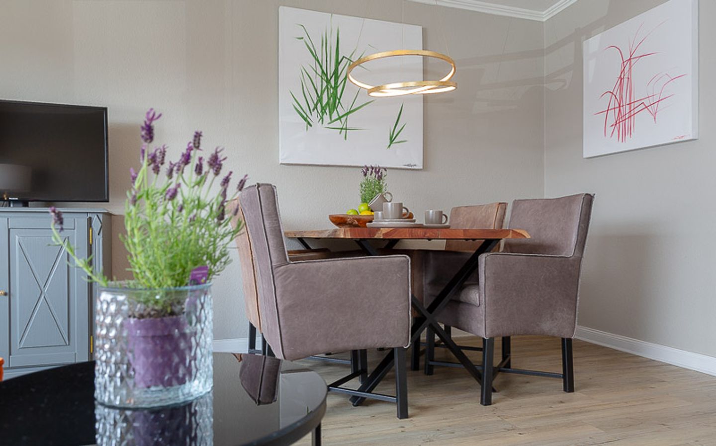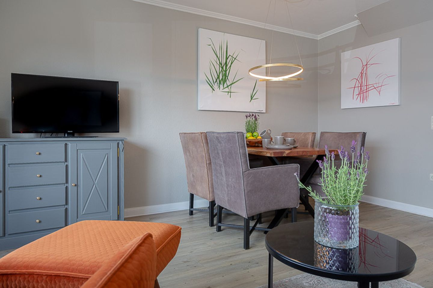 Ein echtes Highlight der Wohnung ist der schöne Balkon. Hier können Sie bei einem Glas Wein den Abend ausklingen lassen oder beim Frühstück die frische Meeresluft genießen, während Sie den Blick in die Umgebung schweifen lassen. Für die perfekte Entspannung sorgt die hauseigene Sauna, die Sie nach einem Tag in der Sonne oder nach einem Strandspaziergang der Extraklasse erfrischt.