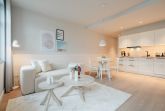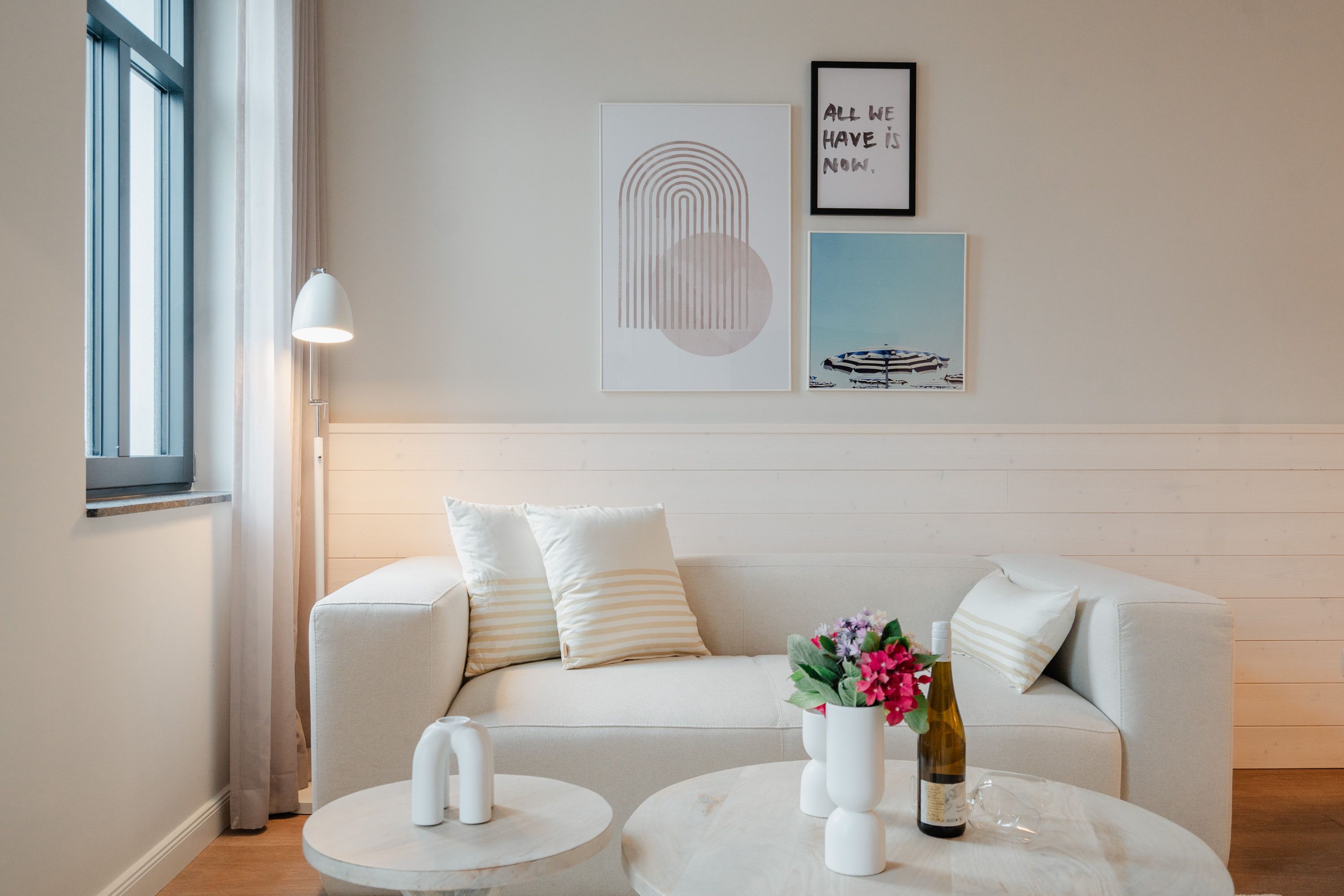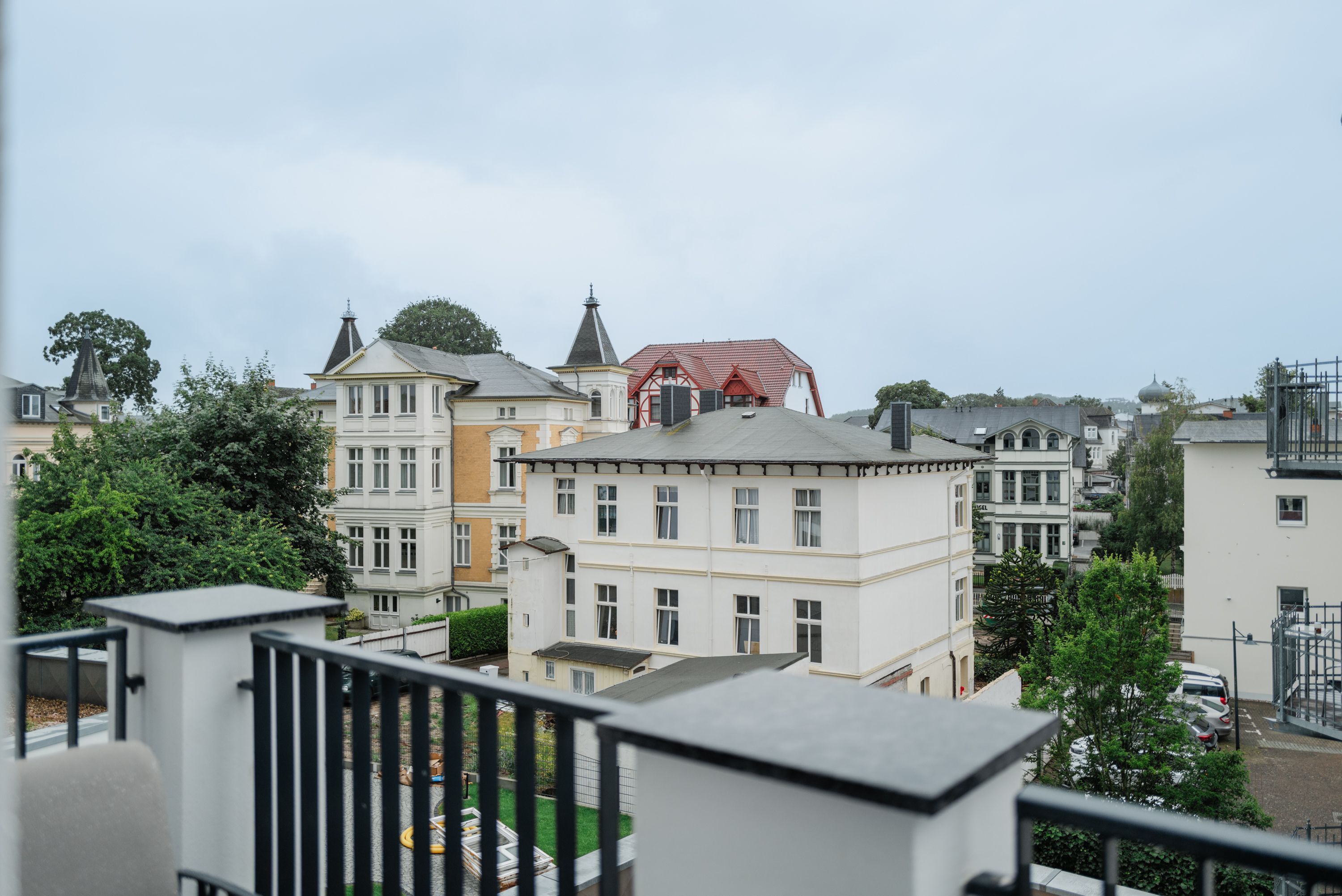 Die 2024 fertig gestellte Strandterrasse liegt direkt an der belebten Strandpromenade und bietet einen einzigartigen Ausblick auf die Grand Dame der historischen Seebrücken sowie die historische Konzertmuschel, einem beliebten Treffpunkt für Kunst und Kultur. Dahinter liegt die Ostsee ein Panorama, das zu den schönsten in den Kaiserbädern gehört. Es ist wie das Abtauchen in eine andere Zeit. In eine Zeit, in der man mit Stock, Sonnenschirm und Hut fürs Sehen und gesehen werden über die Promenade schlenderte; aber auch in eine Zeit, in der damals wie heute Zeit einmal für eine kurze Weile keine Rolle spielt. Weil man angekommen ist im Loslassen, Entspannen und Genießen. Es ist dieser besondere Geruch nach Meeresluft und Freiheit, der in Erinnerung bleibt. Dazu die Bilder, die man mitnimmt. Von langen Strandspaziergängen, vom Lachen in fröhlich schäumenden Ostseewellen, von der Zeit in einem wunderschönen Urlaubsdomizil. Denn genau das ist die Strandterrasse mit ihren 56 modernen und exklusiven Ferienappartements direkt gegenüber der Ahlbecker Seebrücke. Die Ein-, Zwei- oder Dreizimmerwohnungen zwischen 40 und 70 Quadratmeter groß sind von einer Innenarchitektin gemeinsam mit unserem Erfahrungsschatz an Gästewünschen mit viel Liebe zum Detail und ganz individuell konzipiert worden. Entspannung und Wohlfühlen stehen an erster Stelle. Alles ist aufeinander abgestimmt und sorgt für eine gemütliche Atmosphäre. Wählen Sie zwischen einem Domizil in einem hellen, sandfarbenen Designkonzept oder einem Appartement mit anthrazitfarbenen Farbakzenten. Alle Appartements verfügen gleichermaßen über eine stilvolle und komfortable Einrichtung, die passgenau angefertigt worden ist, sowie über moderne Küchen und Bäder. Jedem Schlafzimmer ist ein eigenes Bad mit Dusche zugeordnet (außer App. B4.5). Die Appartements besitzen fast alle einen Balkon viele schauen sogar zur Ostsee hinaus. Die meisten Feriendomizile haben einen Elektrokamin und Infrarotsaunen. Im Erdgeschoss befindet sich ein separater Gemeinschaftsraum für Fahrräder. Außerdem besteht die Möglichkeit, im Gemeinschaftswaschraum 2 Waschmaschinen & Trockner zu nutzen. Ergänzt wird das Angebot durch eine Gemeinschaftssauna, die täglich von 11:00 bis 22:00 Uhr nutzbar ist. In der Tiefgarage (Einfahrtshöhe 2,03 Meter) steht für jede Wohnung 1 Pkw-Stellplatz zur Verfügung. Ist alles zur Zufriedenheit untergebracht? Dann kann der Urlaub ja beginnen. Und beim Blick vom Balkon über die Ostsee treffen sich zum Sonnenaufgang das Heute und das Damals. Gelassenheit legt sich beim Gang hinunter an den Strand auf die Seele. Jetzt darf die Zeit stehenbleiben.