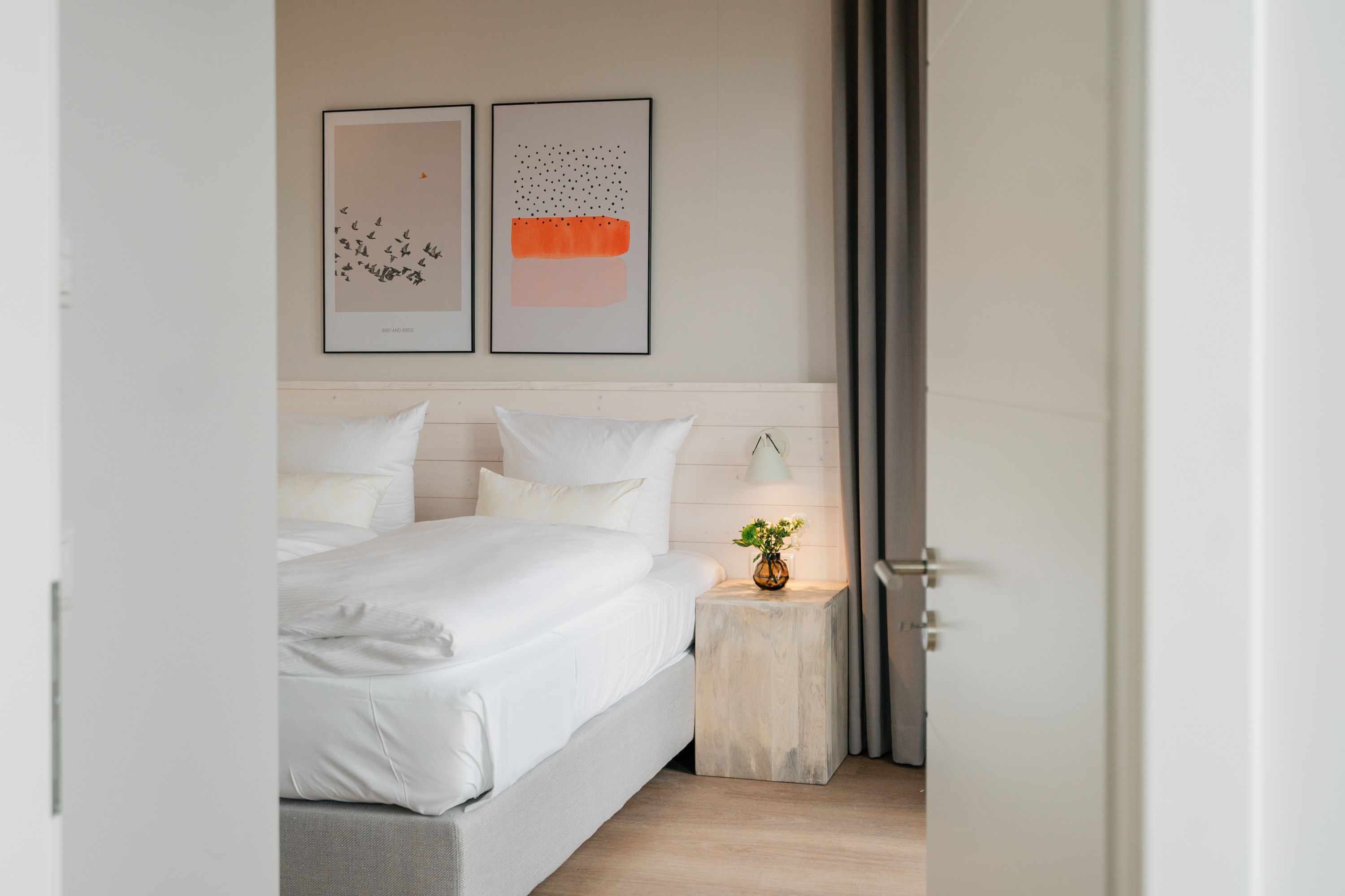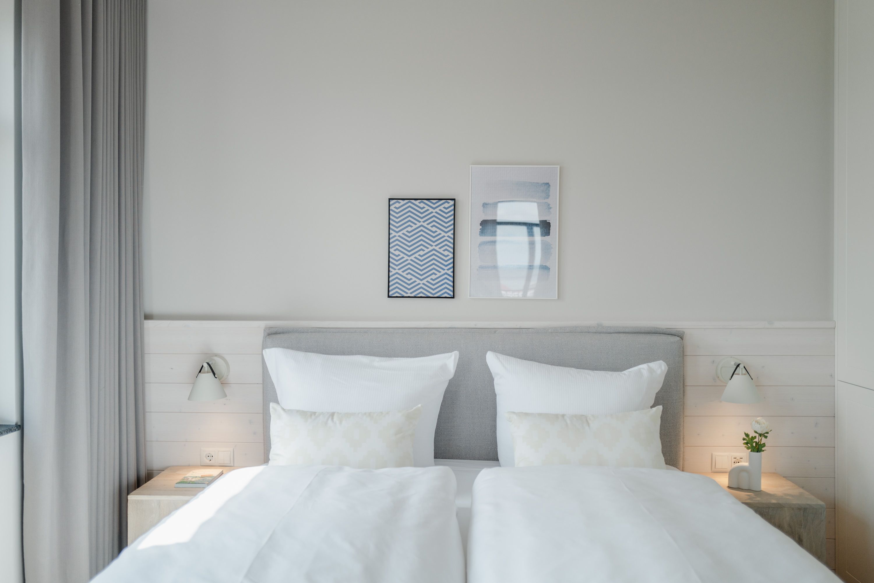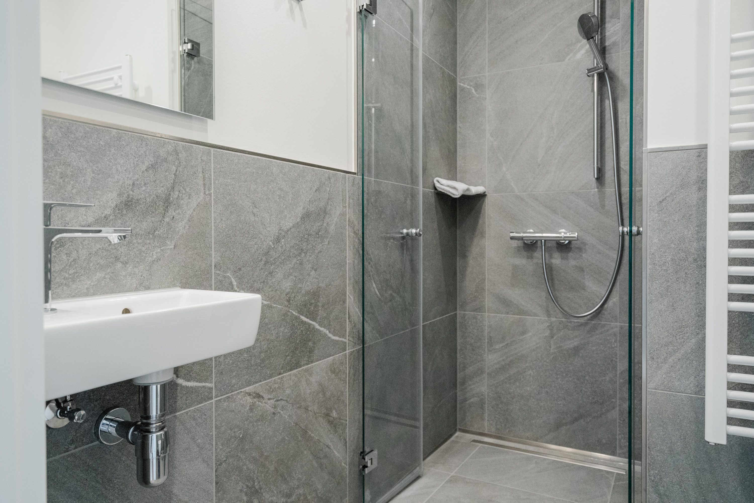 Die 2024 fertig gestellte Strandterrasse liegt direkt an der belebten Strandpromenade und bietet einen einzigartigen Ausblick auf die Grand Dame der historischen Seebrücken sowie die historische Konzertmuschel, einem beliebten Treffpunkt für Kunst und Kultur. Dahinter liegt die Ostsee ein Panorama, das zu den schönsten in den Kaiserbädern gehört. Es ist wie das Abtauchen in eine andere Zeit. In eine Zeit, in der man mit Stock, Sonnenschirm und Hut fürs Sehen und gesehen werden über die Promenade schlenderte; aber auch in eine Zeit, in der damals wie heute Zeit einmal für eine kurze Weile keine Rolle spielt. Weil man angekommen ist im Loslassen, Entspannen und Genießen. Es ist dieser besondere Geruch nach Meeresluft und Freiheit, der in Erinnerung bleibt. Dazu die Bilder, die man mitnimmt. Von langen Strandspaziergängen, vom Lachen in fröhlich schäumenden Ostseewellen, von der Zeit in einem wunderschönen Urlaubsdomizil. Denn genau das ist die Strandterrasse mit ihren 56 modernen und exklusiven Ferienappartements direkt gegenüber der Ahlbecker Seebrücke. Die Ein-, Zwei- oder Dreizimmerwohnungen zwischen 40 und 70 Quadratmeter groß sind von einer Innenarchitektin gemeinsam mit unserem Erfahrungsschatz an Gästewünschen mit viel Liebe zum Detail und ganz individuell konzipiert worden. Entspannung und Wohlfühlen stehen an erster Stelle. Alles ist aufeinander abgestimmt und sorgt für eine gemütliche Atmosphäre. Wählen Sie zwischen einem Domizil in einem hellen, sandfarbenen Designkonzept oder einem Appartement mit anthrazitfarbenen Farbakzenten. Alle Appartements verfügen gleichermaßen über eine stilvolle und komfortable Einrichtung, die passgenau angefertigt worden ist, sowie über moderne Küchen und Bäder. Jedem Schlafzimmer ist ein eigenes Bad mit Dusche zugeordnet (außer App. B4.5). Die Appartements besitzen fast alle einen Balkon viele schauen sogar zur Ostsee hinaus. Die meisten Feriendomizile haben einen Elektrokamin und Infrarotsaunen. Im Erdgeschoss befindet sich ein separater Gemeinschaftsraum für Fahrräder. Außerdem besteht die Möglichkeit, im Gemeinschaftswaschraum 2 Waschmaschinen & Trockner zu nutzen. Ergänzt wird das Angebot durch eine Gemeinschaftssauna, die täglich von 11:00 bis 22:00 Uhr nutzbar ist. In der Tiefgarage (Einfahrtshöhe 2,03 Meter) steht für jede Wohnung 1 Pkw-Stellplatz zur Verfügung. Ist alles zur Zufriedenheit untergebracht? Dann kann der Urlaub ja beginnen. Und beim Blick vom Balkon über die Ostsee treffen sich zum Sonnenaufgang das Heute und das Damals. Gelassenheit legt sich beim Gang hinunter an den Strand auf die Seele. Jetzt darf die Zeit stehenbleiben.