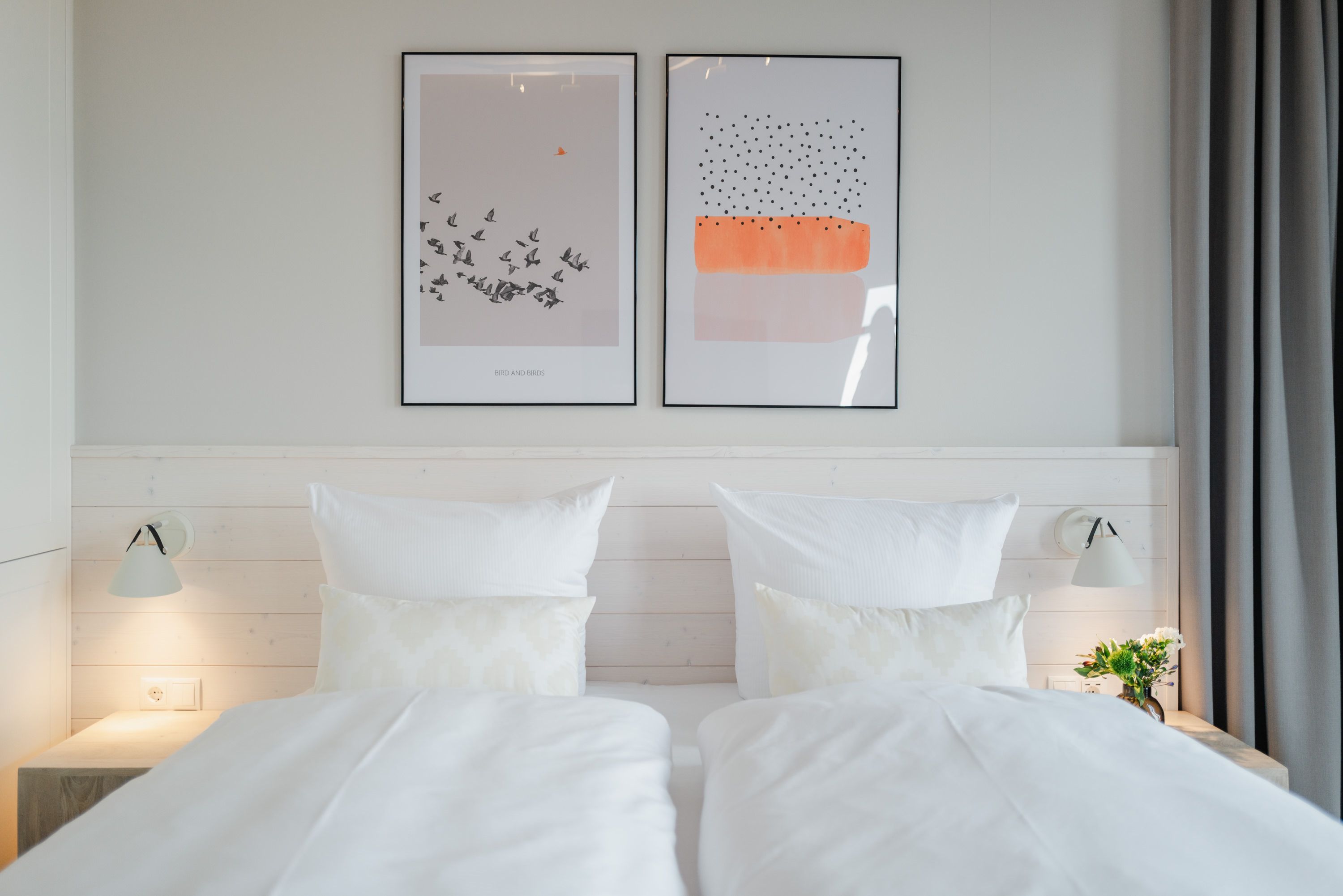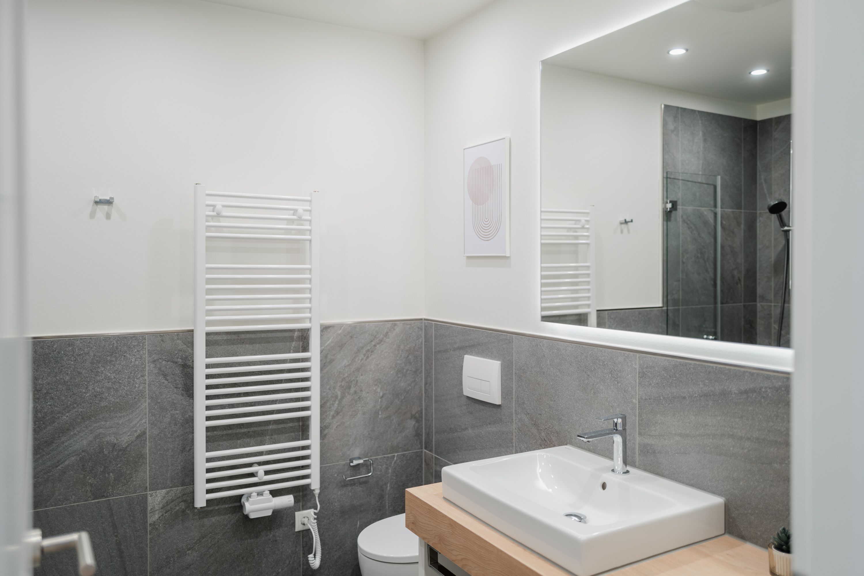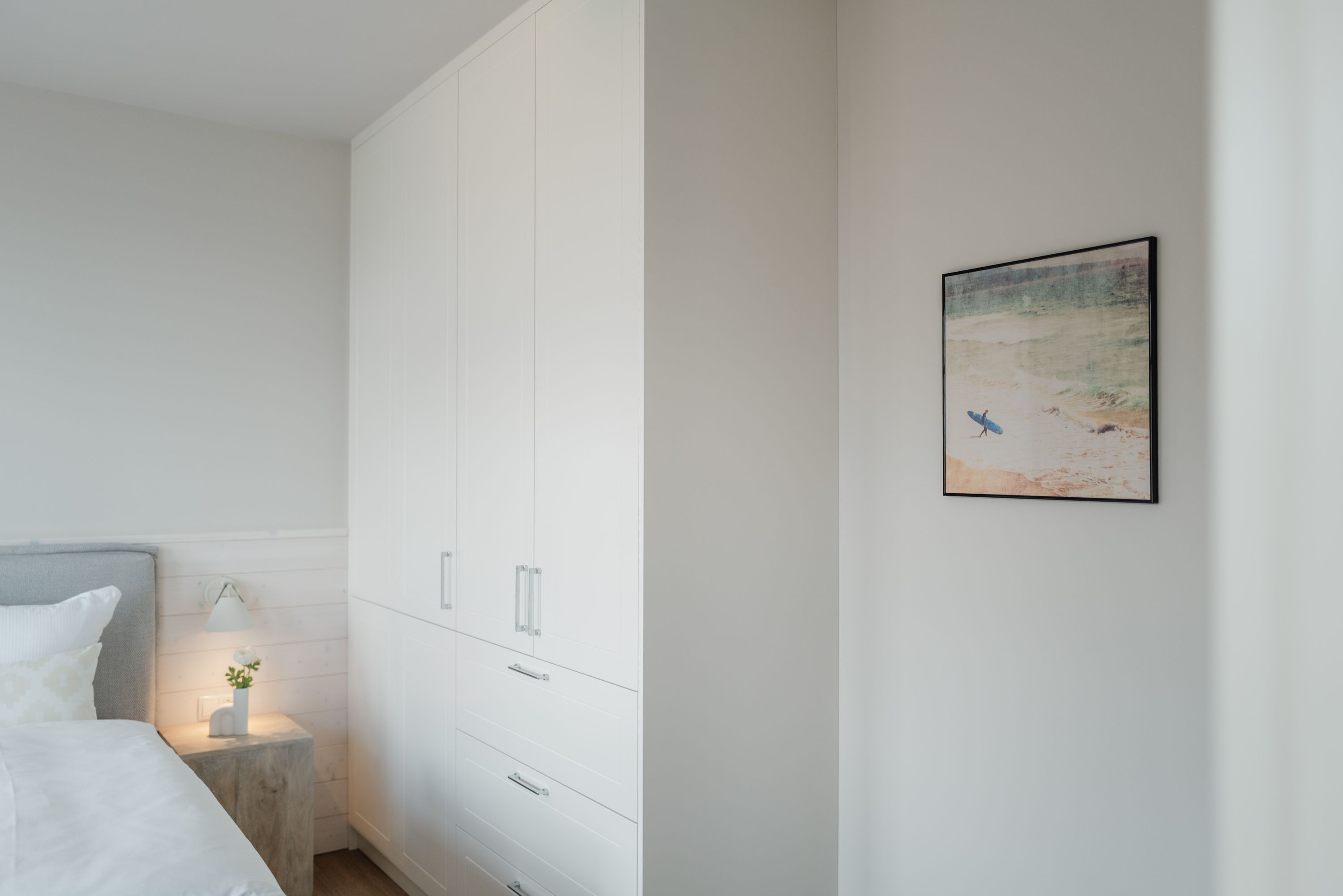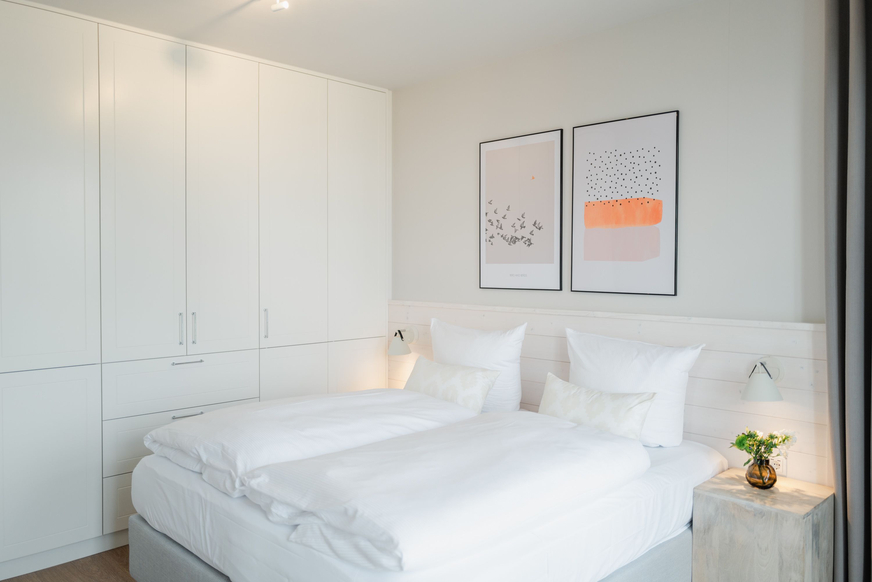 Die 2024 fertig gestellte Strandterrasse liegt direkt an der belebten Strandpromenade und bietet einen einzigartigen Ausblick auf die Grand Dame der historischen Seebrücken sowie die historische Konzertmuschel, einem beliebten Treffpunkt für Kunst und Kultur. Dahinter liegt die Ostsee ein Panorama, das zu den schönsten in den Kaiserbädern gehört. Es ist wie das Abtauchen in eine andere Zeit. In eine Zeit, in der man mit Stock, Sonnenschirm und Hut fürs Sehen und gesehen werden über die Promenade schlenderte; aber auch in eine Zeit, in der damals wie heute Zeit einmal für eine kurze Weile keine Rolle spielt. Weil man angekommen ist im Loslassen, Entspannen und Genießen. Es ist dieser besondere Geruch nach Meeresluft und Freiheit, der in Erinnerung bleibt. Dazu die Bilder, die man mitnimmt. Von langen Strandspaziergängen, vom Lachen in fröhlich schäumenden Ostseewellen, von der Zeit in einem wunderschönen Urlaubsdomizil. Denn genau das ist die Strandterrasse mit ihren 56 modernen und exklusiven Ferienappartements direkt gegenüber der Ahlbecker Seebrücke. Die Ein-, Zwei- oder Dreizimmerwohnungen zwischen 40 und 70 Quadratmeter groß sind von einer Innenarchitektin gemeinsam mit unserem Erfahrungsschatz an Gästewünschen mit viel Liebe zum Detail und ganz individuell konzipiert worden. Entspannung und Wohlfühlen stehen an erster Stelle. Alles ist aufeinander abgestimmt und sorgt für eine gemütliche Atmosphäre. Wählen Sie zwischen einem Domizil in einem hellen, sandfarbenen Designkonzept oder einem Appartement mit anthrazitfarbenen Farbakzenten. Alle Appartements verfügen gleichermaßen über eine stilvolle und komfortable Einrichtung, die passgenau angefertigt worden ist, sowie über moderne Küchen und Bäder. Jedem Schlafzimmer ist ein eigenes Bad mit Dusche zugeordnet (außer App. B4.5). Die Appartements besitzen fast alle einen Balkon viele schauen sogar zur Ostsee hinaus. Die meisten Feriendomizile haben einen Elektrokamin und Infrarotsaunen. Im Erdgeschoss befindet sich ein separater Gemeinschaftsraum für Fahrräder. Außerdem besteht die Möglichkeit, im Gemeinschaftswaschraum 2 Waschmaschinen & Trockner zu nutzen. Ergänzt wird das Angebot durch eine Gemeinschaftssauna, die täglich von 11:00 bis 22:00 Uhr nutzbar ist. In der Tiefgarage (Einfahrtshöhe 2,03 Meter) steht für jede Wohnung 1 Pkw-Stellplatz zur Verfügung. Ist alles zur Zufriedenheit untergebracht? Dann kann der Urlaub ja beginnen. Und beim Blick vom Balkon über die Ostsee treffen sich zum Sonnenaufgang das Heute und das Damals. Gelassenheit legt sich beim Gang hinunter an den Strand auf die Seele. Jetzt darf die Zeit stehenbleiben.
