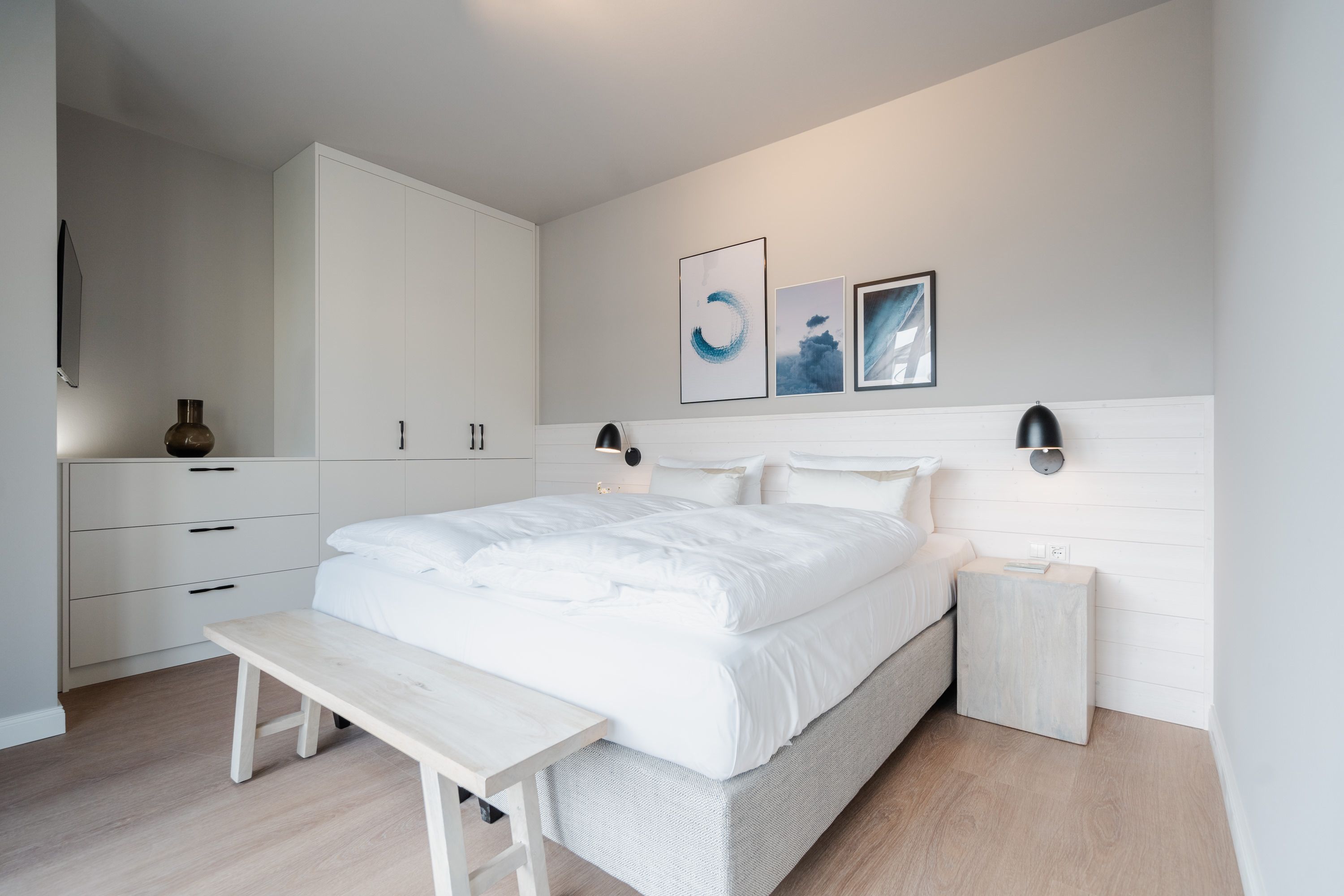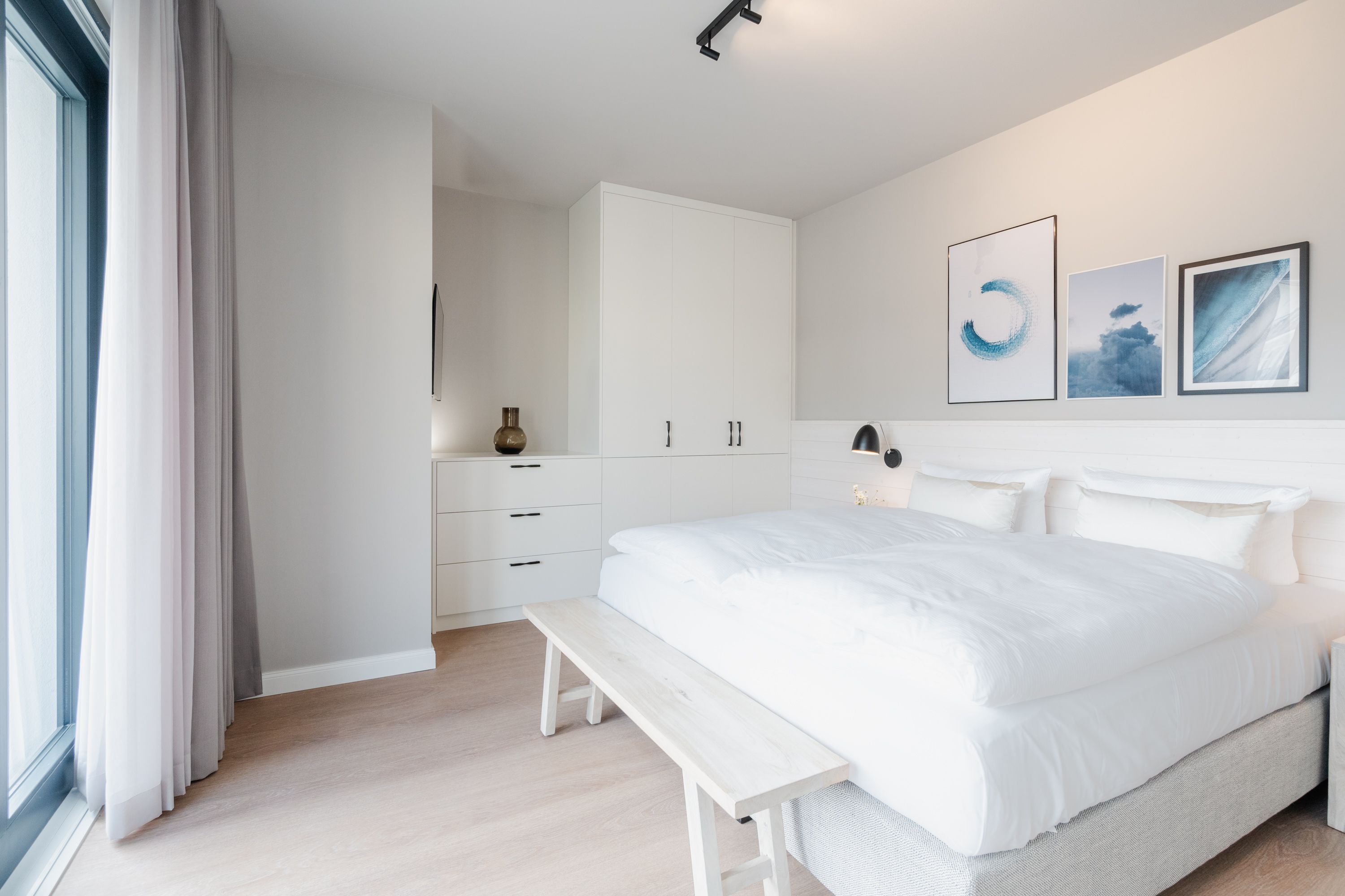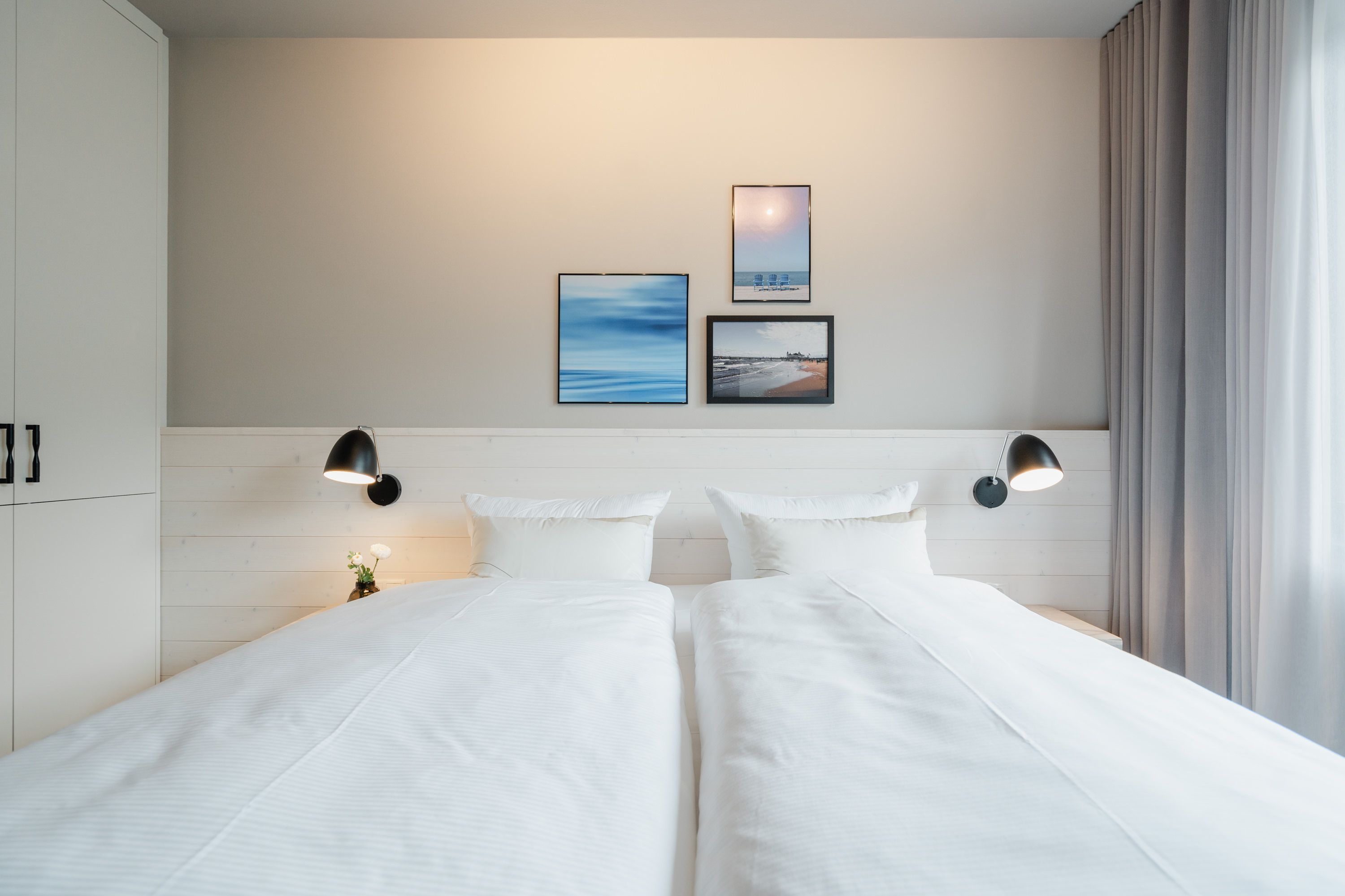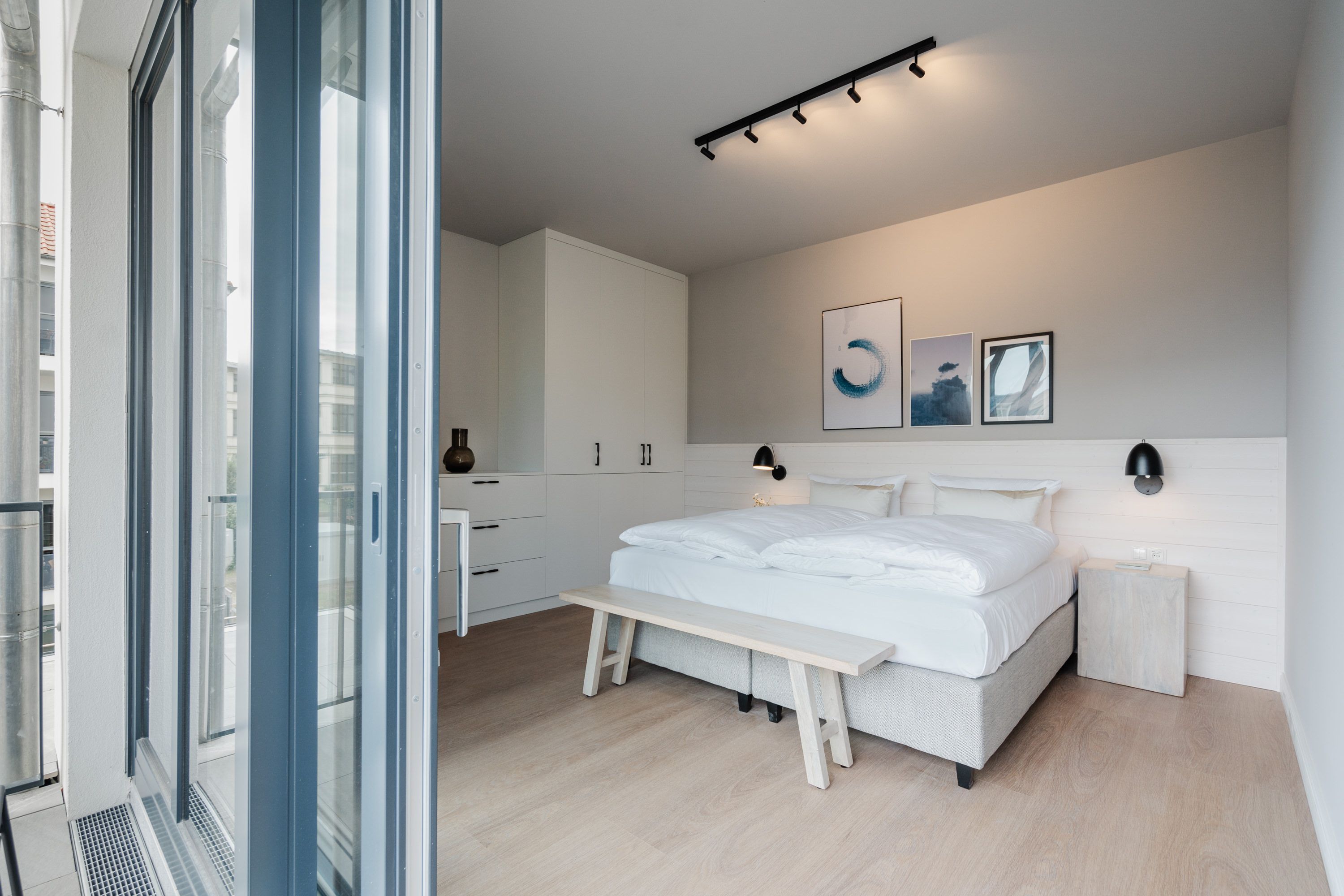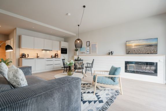 Die 2024 fertig gestellte Strandterrasse liegt direkt an der belebten Strandpromenade und bietet einen einzigartigen Ausblick auf die Grand Dame der historischen Seebrücken sowie die historische Konzertmuschel, einem beliebten Treffpunkt für Kunst und Kultur. Dahinter liegt die Ostsee ein Panorama, das zu den schönsten in den Kaiserbädern gehört. Es ist wie das Abtauchen in eine andere Zeit. In eine Zeit, in der man mit Stock, Sonnenschirm und Hut fürs Sehen und gesehen werden über die Promenade schlenderte; aber auch in eine Zeit, in der damals wie heute Zeit einmal für eine kurze Weile keine Rolle spielt. Weil man angekommen ist im Loslassen, Entspannen und Genießen. Es ist dieser besondere Geruch nach Meeresluft und Freiheit, der in Erinnerung bleibt. Dazu die Bilder, die man mitnimmt. Von langen Strandspaziergängen, vom Lachen in fröhlich schäumenden Ostseewellen, von der Zeit in einem wunderschönen Urlaubsdomizil. Denn genau das ist die Strandterrasse mit ihren 56 modernen und exklusiven Ferienappartements direkt gegenüber der Ahlbecker Seebrücke. Die Ein-, Zwei- oder Dreizimmerwohnungen zwischen 40 und 70 Quadratmeter groß sind von einer Innenarchitektin gemeinsam mit unserem Erfahrungsschatz an Gästewünschen mit viel Liebe zum Detail und ganz individuell konzipiert worden. Entspannung und Wohlfühlen stehen an erster Stelle. Alles ist aufeinander abgestimmt und sorgt für eine gemütliche Atmosphäre. Wählen Sie zwischen einem Domizil in einem hellen, sandfarbenen Designkonzept oder einem Appartement mit anthrazitfarbenen Farbakzenten. Alle Appartements verfügen gleichermaßen über eine stilvolle und komfortable Einrichtung, die passgenau angefertigt worden ist, sowie über moderne Küchen und Bäder. Jedem Schlafzimmer ist ein eigenes Bad mit Dusche zugeordnet (außer App. B4.5). Die Appartements besitzen fast alle einen Balkon viele schauen sogar zur Ostsee hinaus. Die meisten Feriendomizile haben einen Elektrokamin und Infrarotsaunen. Im Erdgeschoss befindet sich ein separater Gemeinschaftsraum für Fahrräder. Außerdem besteht die Möglichkeit, im Gemeinschaftswaschraum 2 Waschmaschinen & Trockner zu nutzen. Ergänzt wird das Angebot durch eine Gemeinschaftssauna, die täglich von 11:00 bis 22:00 Uhr nutzbar ist. In der Tiefgarage (Einfahrtshöhe 2,03 Meter) steht für jede Wohnung 1 Pkw-Stellplatz zur Verfügung. Ist alles zur Zufriedenheit untergebracht? Dann kann der Urlaub ja beginnen. Und beim Blick vom Balkon über die Ostsee treffen sich zum Sonnenaufgang das Heute und das Damals. Gelassenheit legt sich beim Gang hinunter an den Strand auf die Seele. Jetzt darf die Zeit stehenbleiben.