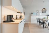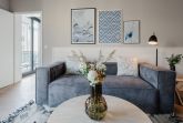 Die 2024 fertig gestellte Strandterrasse liegt direkt an der belebten Strandpromenade und bietet einen einzigartigen Ausblick auf die Grand Dame der historischen Seebrücken sowie die historische Konzertmuschel, einem beliebten Treffpunkt für Kunst und Kultur. Dahinter liegt die Ostsee ein Panorama, das zu den schönsten in den Kaiserbädern gehört. Es ist wie das Abtauchen in eine andere Zeit. In eine Zeit, in der man mit Stock, Sonnenschirm und Hut fürs „Sehen und gesehen werden“ über die Promenade schlenderte; aber auch in eine Zeit, in der damals wie heute Zeit einmal für eine kurze Weile keine Rolle spielt. Weil man angekommen ist im Loslassen, Entspannen und Genießen. Es ist dieser besondere Geruch nach Meeresluft und Freiheit, der in Erinnerung bleibt. Dazu die Bilder, die man mitnimmt. Von langen Strandspaziergängen, vom Lachen in fröhlich schäumenden Ostseewellen, von der Zeit in einem wunderschönen Urlaubsdomizil. Denn genau das ist die Strandterrasse mit ihren 56 modernen und exklusiven Ferienappartements direkt gegenüber der Ahlbecker Seebrücke. Die Ein-, Zwei- oder Dreizimmerwohnungen zwischen 40 und 70 Quadratmeter groß sind von einer Innenarchitektin gemeinsam mit unserem Erfahrungsschatz an Gästewünschen mit viel Liebe zum Detail und ganz individuell konzipiert worden. Entspannung und Wohlfühlen stehen an erster Stelle. Alles ist aufeinander abgestimmt und sorgt für eine gemütliche Atmosphäre. Wählen Sie zwischen einem Domizil in einem hellen, sandfarbenen Designkonzept oder einem Appartement mit anthrazitfarbenen Farbakzenten. Alle Appartements verfügen gleichermaßen über eine stilvolle und komfortable Einrichtung, die passgenau angefertigt worden ist, sowie über moderne Küchen und Bäder. Jedem Schlafzimmer ist ein eigenes Bad mit Dusche zugeordnet (außer App. B4.5). Die Appartements besitzen fast alle einen Balkon viele schauen sogar zur Ostsee hinaus. Die meisten Feriendomizile haben einen Elektrokamin und Infrarotsaunen. Im Erdgeschoss befindet sich ein separater Gemeinschaftsraum für Fahrräder. Außerdem besteht die Möglichkeit, im Gemeinschaftswaschraum 2 Waschmaschinen & Trockner zu nutzen. Ergänzt wird das Angebot durch eine Gemeinschaftssauna, die täglich von 11:00 bis 22:00 Uhr nutzbar ist. In der Tiefgarage (Einfahrtshöhe 2,03 Meter) steht für jede Wohnung 1 Pkw-Stellplatz zur Verfügung. Ist alles zur Zufriedenheit untergebracht? Dann kann der Urlaub ja beginnen. Und beim Blick vom Balkon über die Ostsee treffen sich zum Sonnenaufgang das Heute und das Damals. Gelassenheit legt sich beim Gang hinunter an den Strand auf die Seele. Jetzt darf die Zeit stehenbleiben.