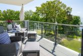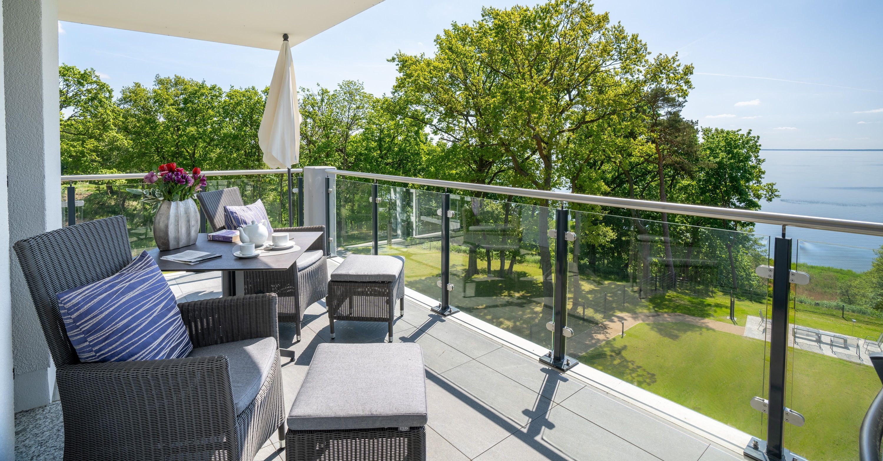 Freuen Sie sich auf den atemberaubenden Meerblick auf das Stettiner Haff vom 18 m² großen, überdachten Sonnenbalkon, der schnell Ihr Lieblingsplatz in diesem Ferienapartment wird.