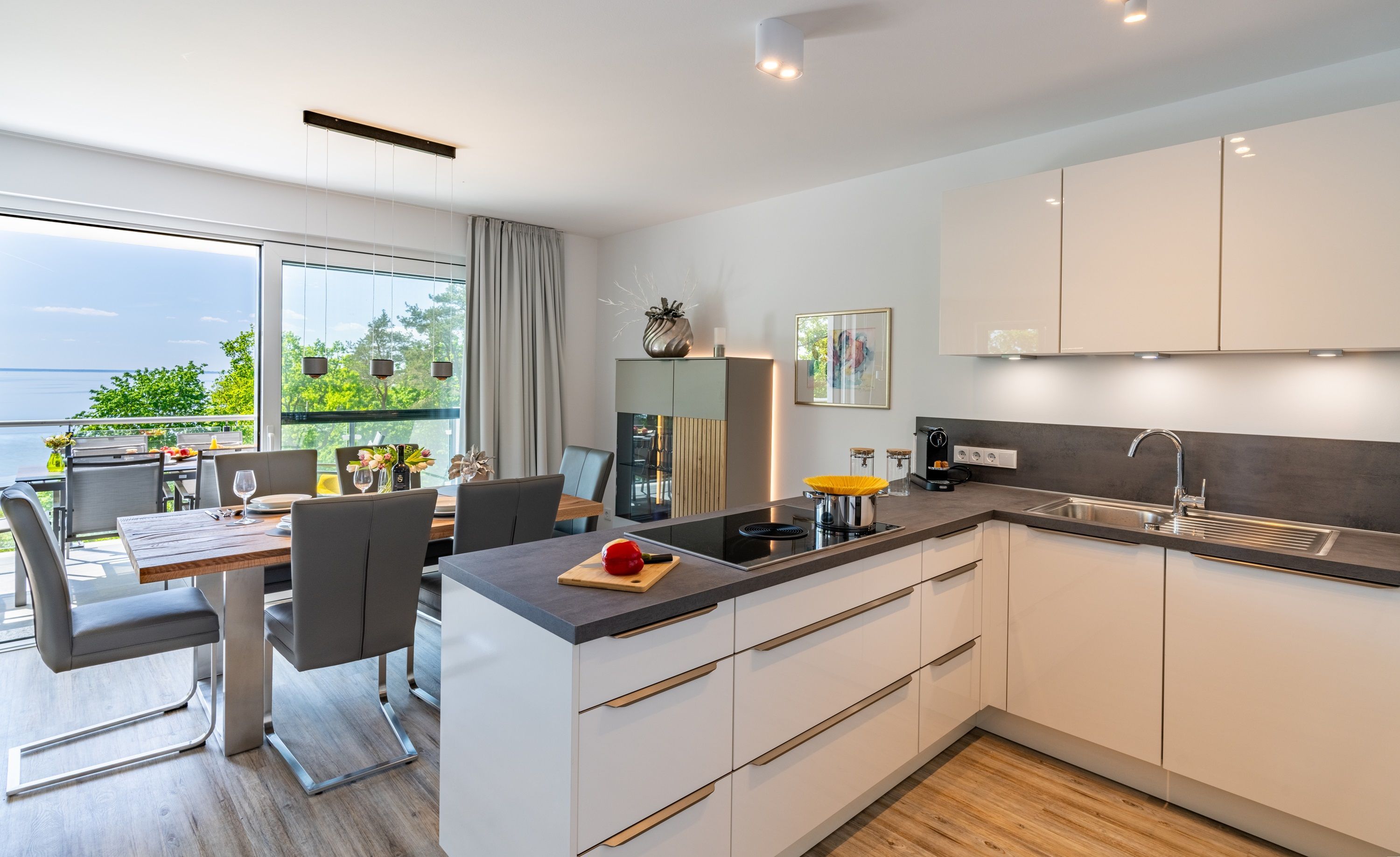 Das Induktionskochfeld mit Bora-Abzug ermöglicht Ihnen beim Kochen einen ungestörten Blick auf das Wasser einfach fantastisch!