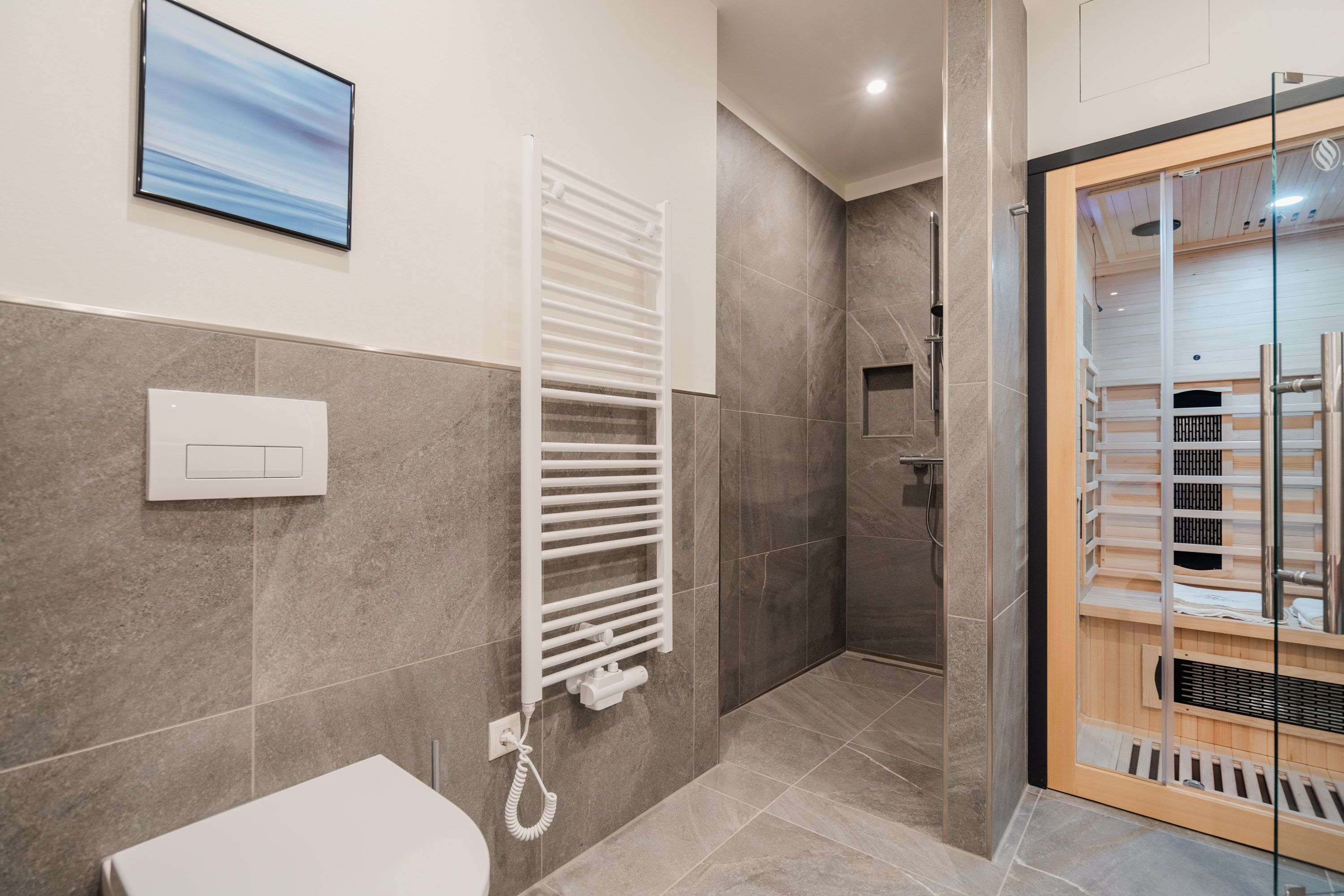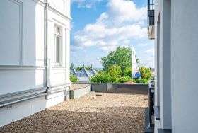 Die 2024 fertig gestellte Strandterrasse liegt direkt an der belebten Strandpromenade und bietet einen einzigartigen Ausblick auf die Grand Dame der historischen Seebrücken sowie die historische Konzertmuschel, einem beliebten Treffpunkt für Kunst und Kultur. Dahinter liegt die Ostsee ein Panorama, das zu den schönsten in den Kaiserbädern gehört. Es ist wie das Abtauchen in eine andere Zeit. In eine Zeit, in der man mit Stock, Sonnenschirm und Hut fürs „Sehen und gesehen werden“ über die Promenade schlenderte; aber auch in eine Zeit, in der damals wie heute Zeit einmal für eine kurze Weile keine Rolle spielt. Weil man angekommen ist im Loslassen, Entspannen und Genießen. Es ist dieser besondere Geruch nach Meeresluft und Freiheit, der in Erinnerung bleibt. Dazu die Bilder, die man mitnimmt. Von langen Strandspaziergängen, vom Lachen in fröhlich schäumenden Ostseewellen, von der Zeit in einem wunderschönen Urlaubsdomizil. Denn genau das ist die Strandterrasse mit ihren 56 modernen und exklusiven Ferienappartements direkt gegenüber der Ahlbecker Seebrücke. Die Ein-, Zwei- oder Dreizimmerwohnungen zwischen 40 und 70 Quadratmeter groß sind von einer Innenarchitektin gemeinsam mit unserem Erfahrungsschatz an Gästewünschen mit viel Liebe zum Detail und ganz individuell konzipiert worden. Entspannung und Wohlfühlen stehen an erster Stelle. Alles ist aufeinander abgestimmt und sorgt für eine gemütliche Atmosphäre. Wählen Sie zwischen einem Domizil in einem hellen, sandfarbenen Designkonzept oder einem Appartement mit anthrazitfarbenen Farbakzenten. Alle Appartements verfügen gleichermaßen über eine stilvolle und komfortable Einrichtung, die passgenau angefertigt worden ist, sowie über moderne Küchen und Bäder. Jedem Schlafzimmer ist ein eigenes Bad mit Dusche zugeordnet (außer App. B4.5). Die Appartements besitzen fast alle einen Balkon viele schauen sogar zur Ostsee hinaus. Die meisten Feriendomizile haben einen Elektrokamin und Infrarotsaunen. Im Erdgeschoss befindet sich ein separater Gemeinschaftsraum für Fahrräder. Außerdem besteht die Möglichkeit, im Gemeinschaftswaschraum 2 Waschmaschinen & Trockner zu nutzen. Ergänzt wird das Angebot durch eine Gemeinschaftssauna, die täglich von 11:00 bis 22:00 Uhr nutzbar ist. In der Tiefgarage (Einfahrtshöhe 2,03 Meter) steht für jede Wohnung 1 Pkw-Stellplatz zur Verfügung. Ist alles zur Zufriedenheit untergebracht? Dann kann der Urlaub ja beginnen. Und beim Blick vom Balkon über die Ostsee treffen sich zum Sonnenaufgang das Heute und das Damals. Gelassenheit legt sich beim Gang hinunter an den Strand auf die Seele. Jetzt darf die Zeit stehenbleiben.