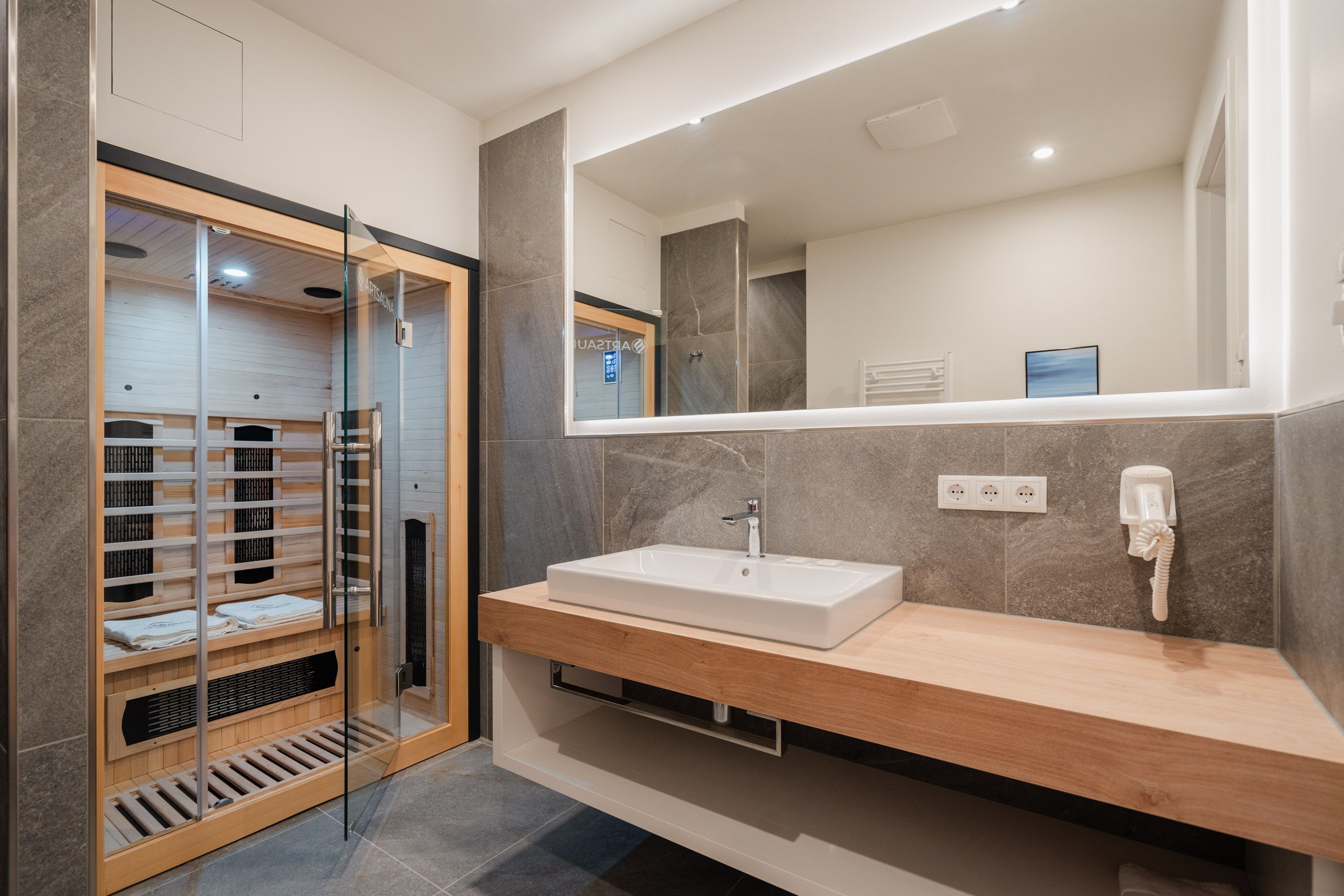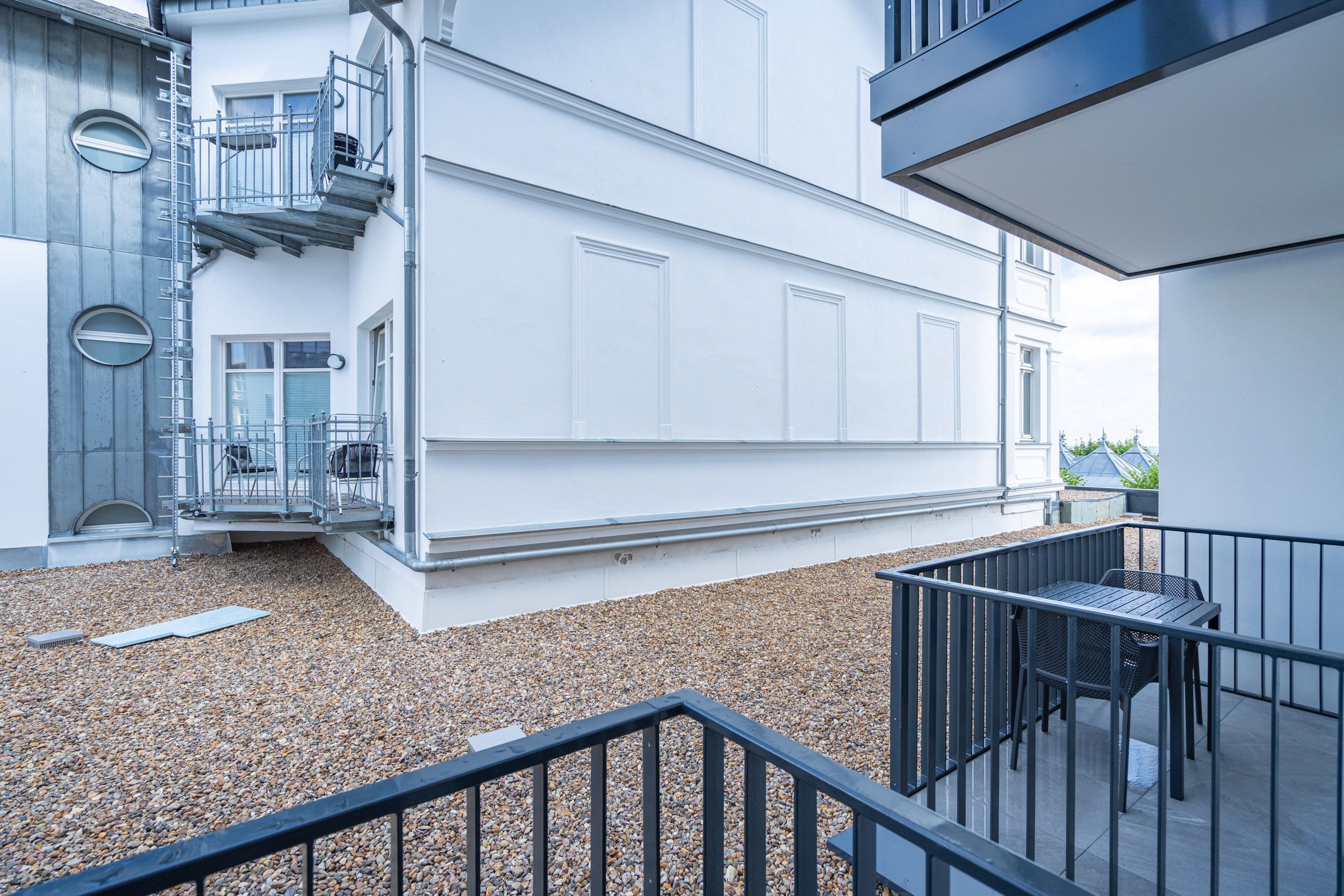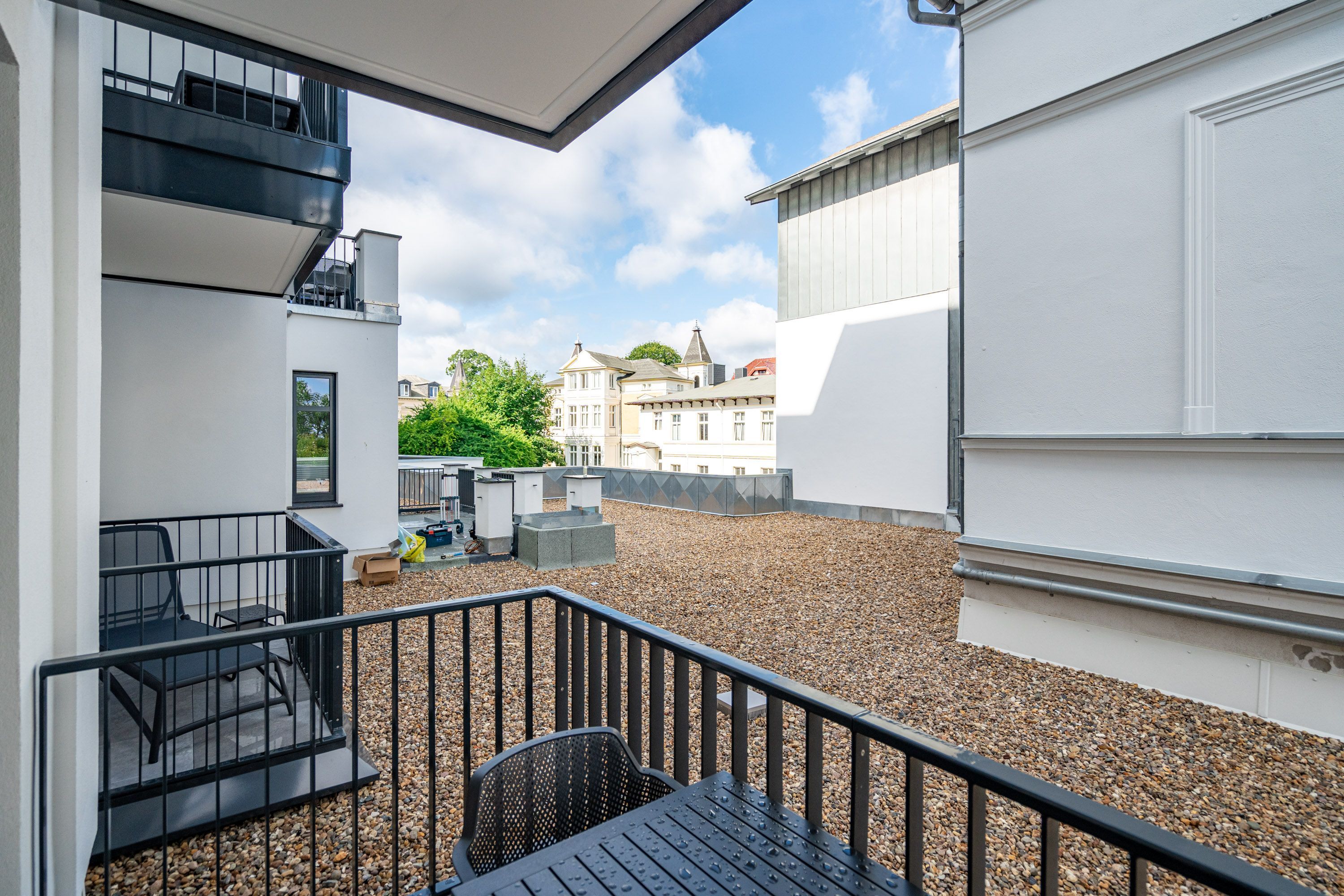 Die 2024 fertig gestellte Strandterrasse liegt direkt an der belebten Strandpromenade und bietet einen einzigartigen Ausblick auf die Grand Dame der historischen Seebrücken sowie die historische Konzertmuschel, einem beliebten Treffpunkt für Kunst und Kultur. Dahinter liegt die Ostsee ein Panorama, das zu den schönsten in den Kaiserbädern gehört. Es ist wie das Abtauchen in eine andere Zeit. In eine Zeit, in der man mit Stock, Sonnenschirm und Hut fürs Sehen und gesehen werden über die Promenade schlenderte; aber auch in eine Zeit, in der damals wie heute Zeit einmal für eine kurze Weile keine Rolle spielt. Weil man angekommen ist im Loslassen, Entspannen und Genießen. Es ist dieser besondere Geruch nach Meeresluft und Freiheit, der in Erinnerung bleibt. Dazu die Bilder, die man mitnimmt. Von langen Strandspaziergängen, vom Lachen in fröhlich schäumenden Ostseewellen, von der Zeit in einem wunderschönen Urlaubsdomizil. Denn genau das ist die Strandterrasse mit ihren 56 modernen und exklusiven Ferienappartements direkt gegenüber der Ahlbecker Seebrücke. Die Ein-, Zwei- oder Dreizimmerwohnungen zwischen 40 und 70 Quadratmeter groß sind von einer Innenarchitektin gemeinsam mit unserem Erfahrungsschatz an Gästewünschen mit viel Liebe zum Detail und ganz individuell konzipiert worden. Entspannung und Wohlfühlen stehen an erster Stelle. Alles ist aufeinander abgestimmt und sorgt für eine gemütliche Atmosphäre. Wählen Sie zwischen einem Domizil in einem hellen, sandfarbenen Designkonzept oder einem Appartement mit anthrazitfarbenen Farbakzenten. Alle Appartements verfügen gleichermaßen über eine stilvolle und komfortable Einrichtung, die passgenau angefertigt worden ist, sowie über moderne Küchen und Bäder. Jedem Schlafzimmer ist ein eigenes Bad mit Dusche zugeordnet (außer App. B4.5). Die Appartements besitzen fast alle einen Balkon viele schauen sogar zur Ostsee hinaus. Die meisten Feriendomizile haben einen Elektrokamin und Infrarotsaunen. Im Erdgeschoss befindet sich ein separater Gemeinschaftsraum für Fahrräder. Außerdem besteht die Möglichkeit, im Gemeinschaftswaschraum 2 Waschmaschinen & Trockner zu nutzen. Ergänzt wird das Angebot durch eine Gemeinschaftssauna, die täglich von 11:00 bis 22:00 Uhr nutzbar ist. In der Tiefgarage (Einfahrtshöhe 2,03 Meter) steht für jede Wohnung 1 Pkw-Stellplatz zur Verfügung. Ist alles zur Zufriedenheit untergebracht? Dann kann der Urlaub ja beginnen. Und beim Blick vom Balkon über die Ostsee treffen sich zum Sonnenaufgang das Heute und das Damals. Gelassenheit legt sich beim Gang hinunter an den Strand auf die Seele. Jetzt darf die Zeit stehenbleiben.