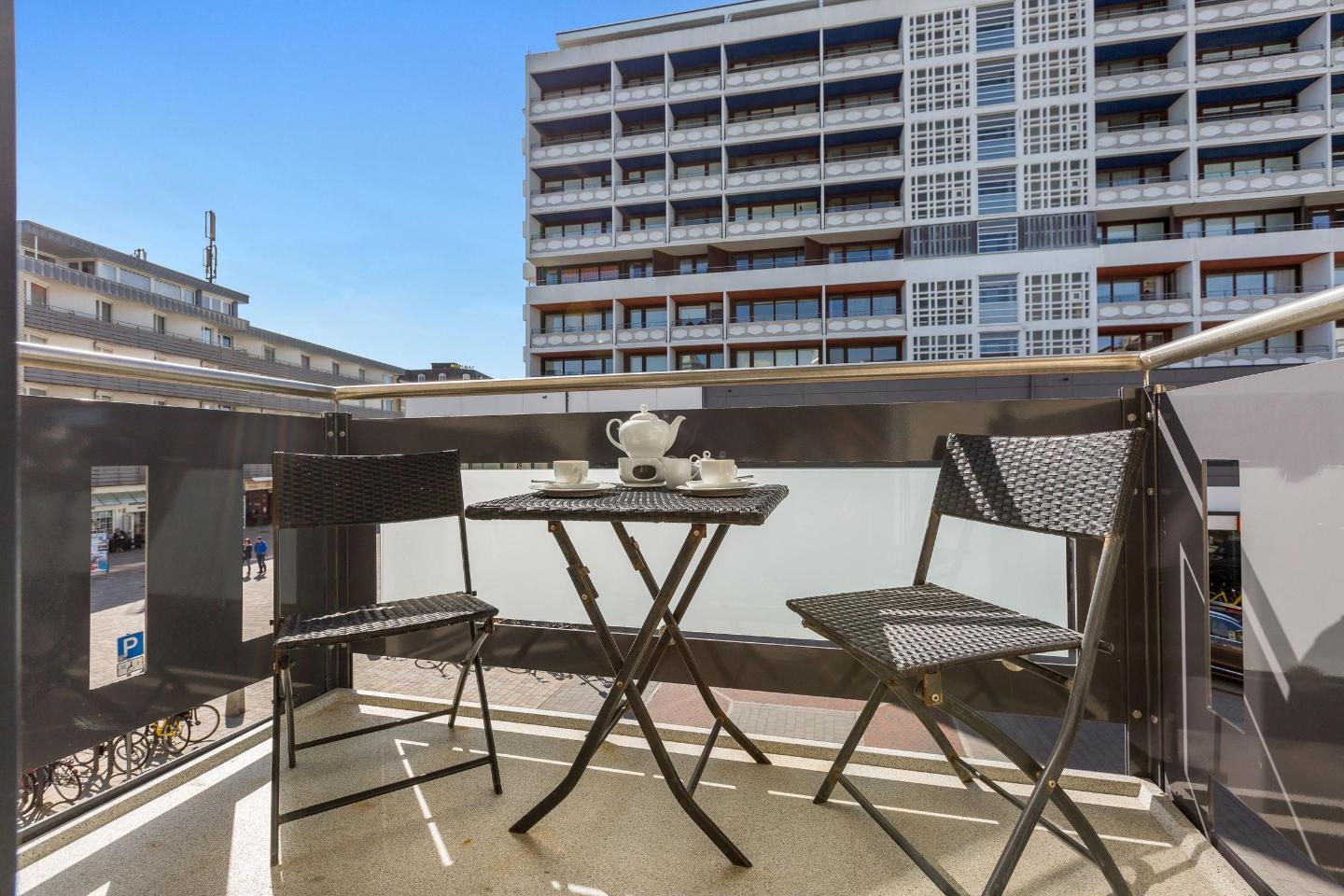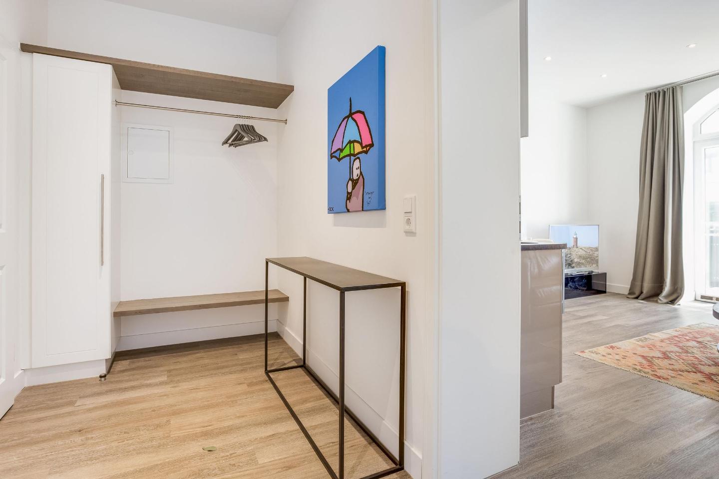 Direkt in der Fußgängerzone Friedrichstraße gelegen, profitieren Sie von der Nähe zu zahlreichen Geschäften und Restaurants und erreichen den Strand in nur etwa 150 Metern. Nach einem erlebnisreichen Tag bietet der gemeinschaftliche Wellnessbereich mit Sauna einen Ort der Erholung und des Wohlbefindens, während ein gemeinschaftlicher Waschraum mit Waschmaschine und Trockner zusätzlichen Komfort gewährleistet.