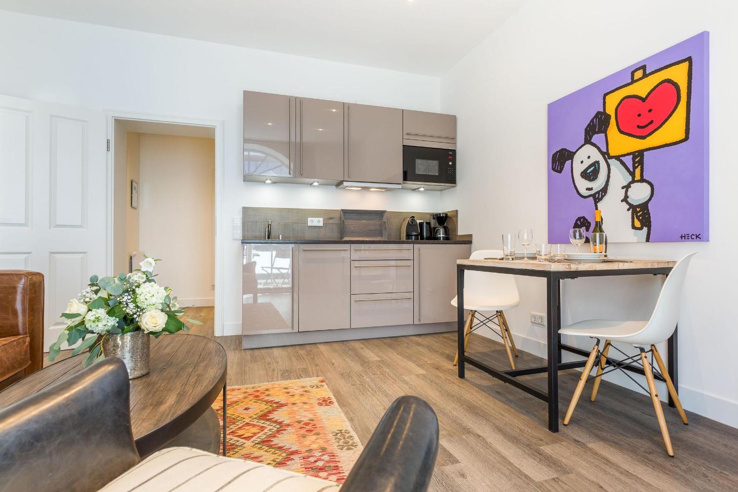Willkommen in der Art your Life - Residenz Seeburg – einem einzigartigen Rückzugsort im Herzen von Westerland auf Sylt, der Kunst, Design und modernen Komfort in einer harmonischen Atmosphäre vereint. Die Residenz bietet elf exklusive Ferienwohnungen, die auf einer Ebene angeordnet sind und Größen zwischen 35 m² und 101 m² für 2 bis 4 Gäste umfassen. Jede Wohnung ist in Zusammenarbeit mit der renommierten Kunstgalerie Mensing einem bestimmten Künstler gewidmet und begeistert mit ihrem individuellen Retro-Look, ergänzt durch exquisites Mobiliar aus Frankreich, Belgien und England. Die Apartments strahlen eine einladende Wohlfühlatmosphäre aus, die Kunstliebhaber, Paare und auch Hundeliebhaber in den Wohnungen 1 bis 4 willkommen heißt.