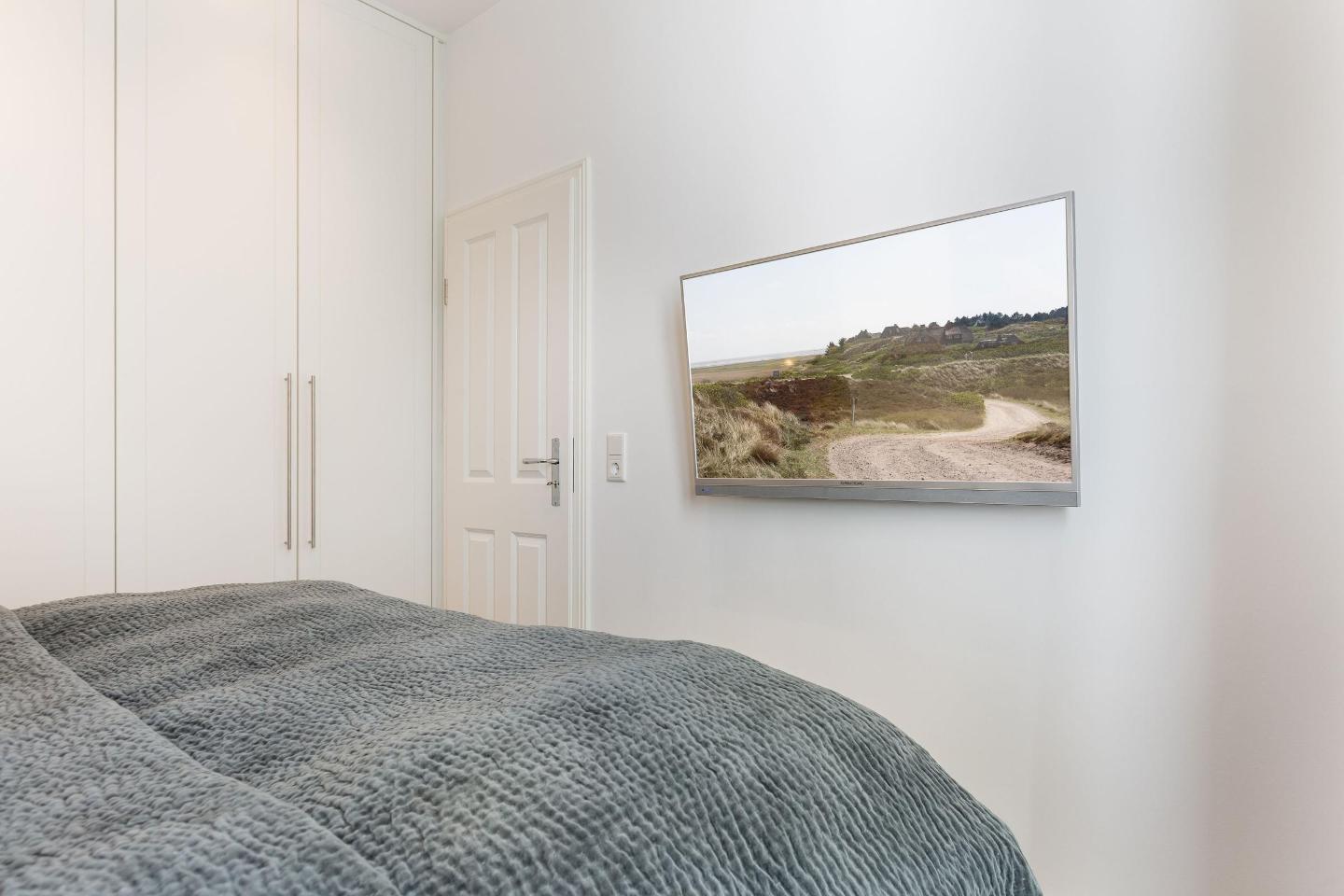 Das Schlafzimmer ist mit einem komfortablen Doppelbett (2x 90x200 cm), einem Einbauschrank und einem zusätzlichen TV ausgestattet, ideal für erholsame Nächte. Das Badezimmer bietet eine Duschbrause in der Badewanne, WC, Fön und einen Handtuchwärmer und fügt sich harmonisch in das elegante Ambiente der Wohnung ein.