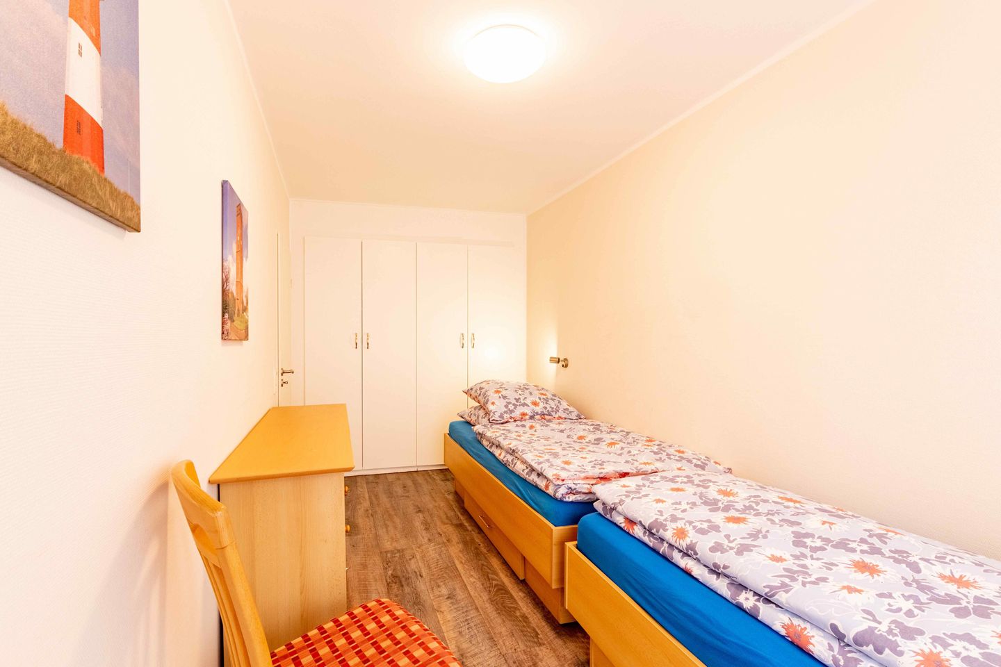 Die Betten sind bei Ihrer Anreise selbstverständlich bezogen. Eine weitere Schlafmöglichkeit bietet das Schlafsofa im Wohnzimmer mit Lattenrost. Damit finden bis zu 4 Gäste in der Wohnung Platz.