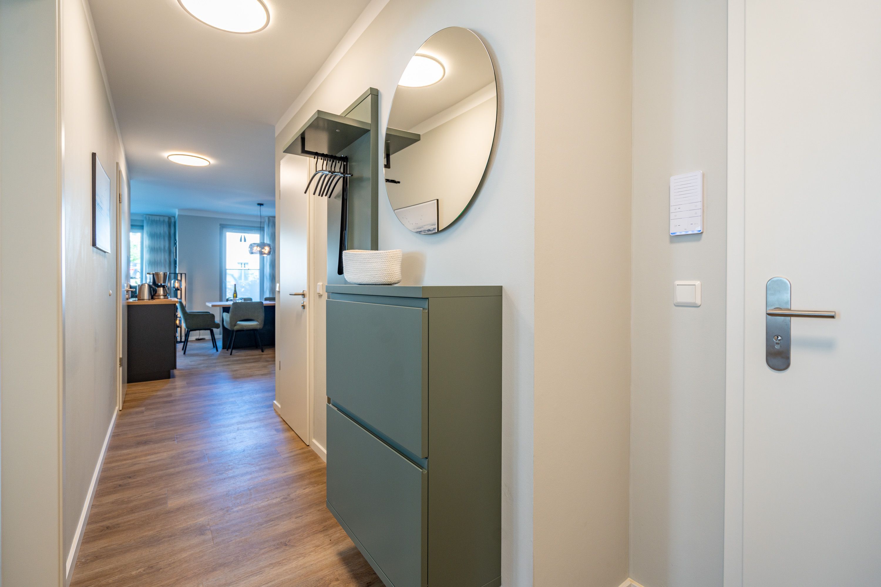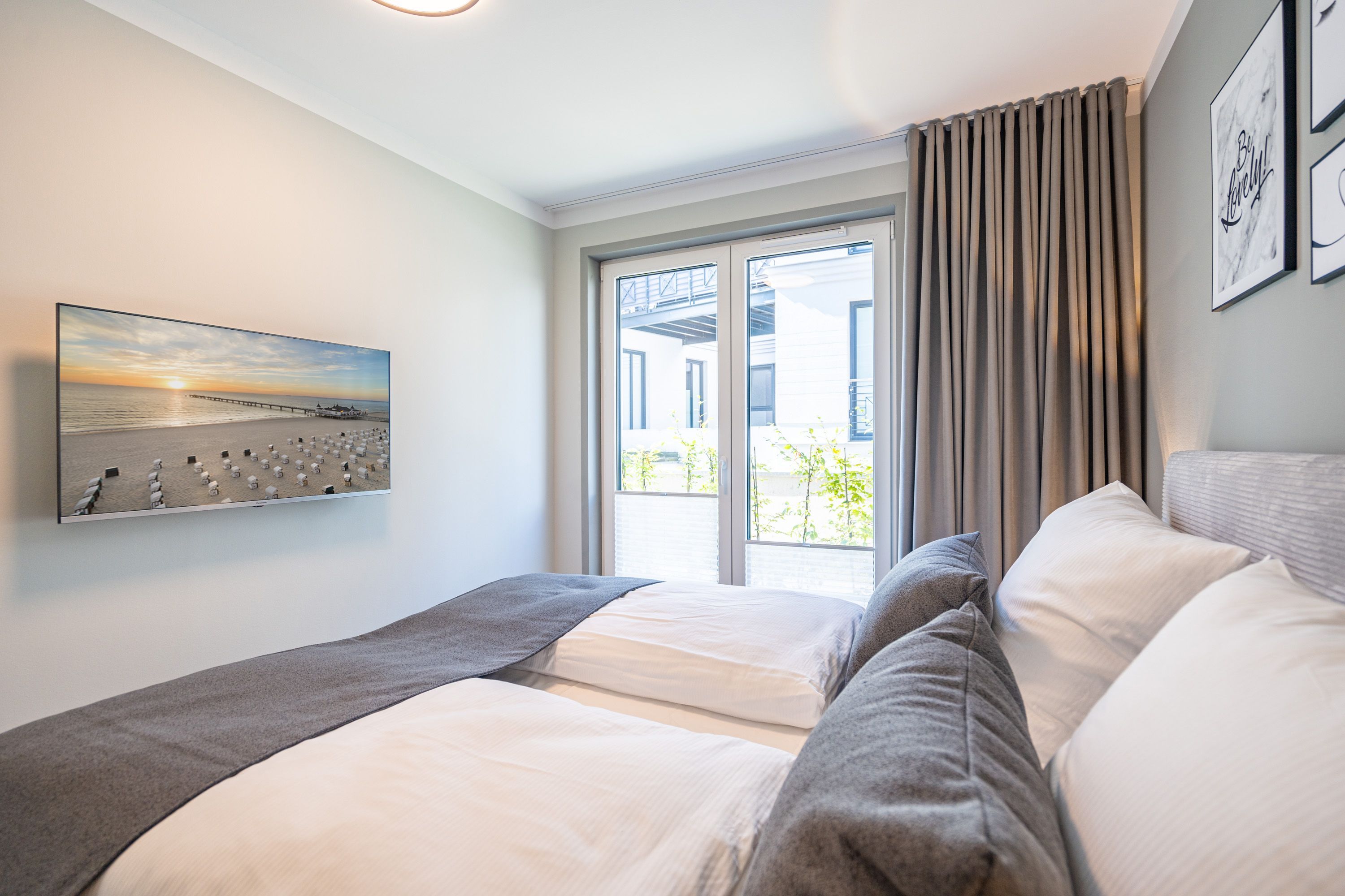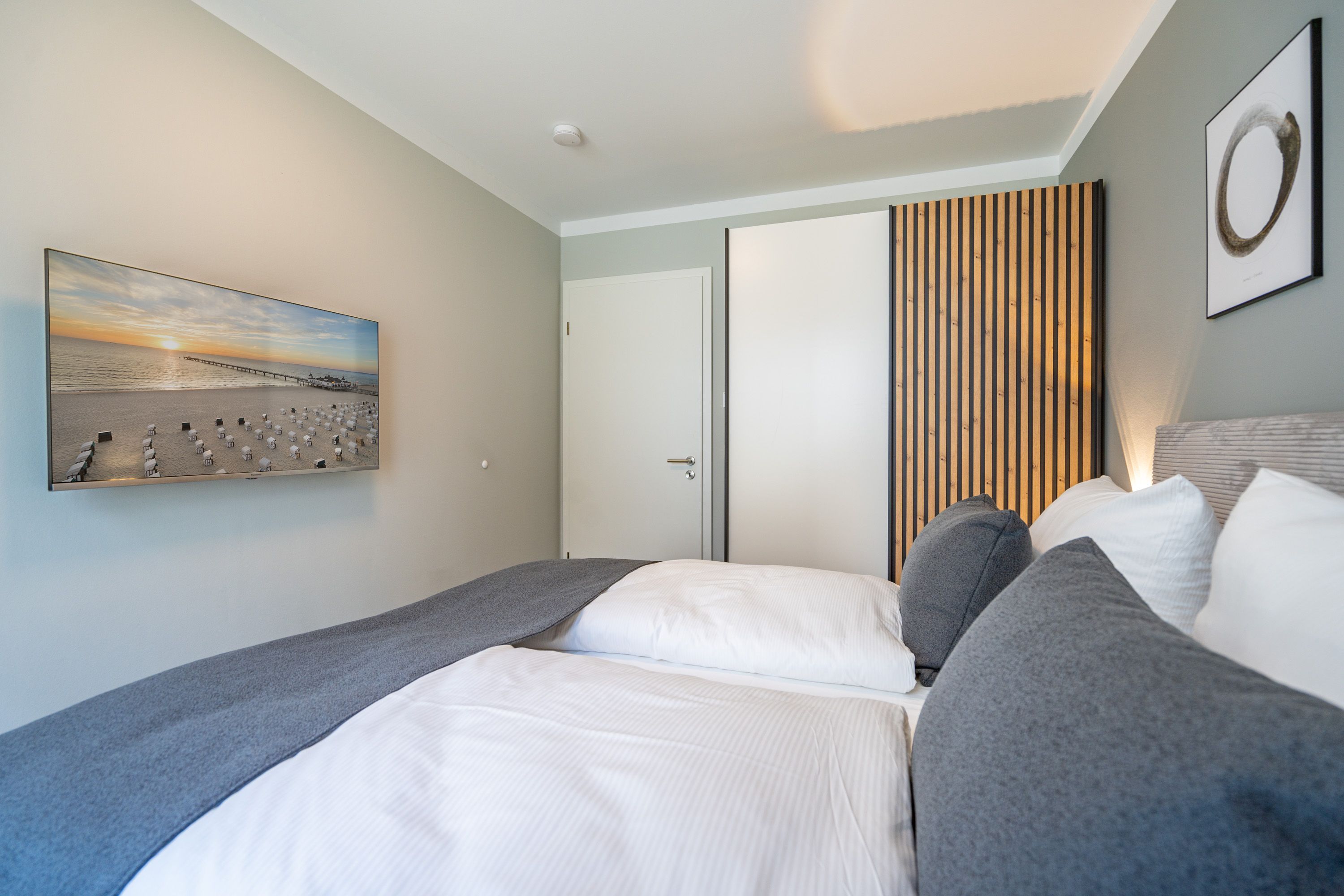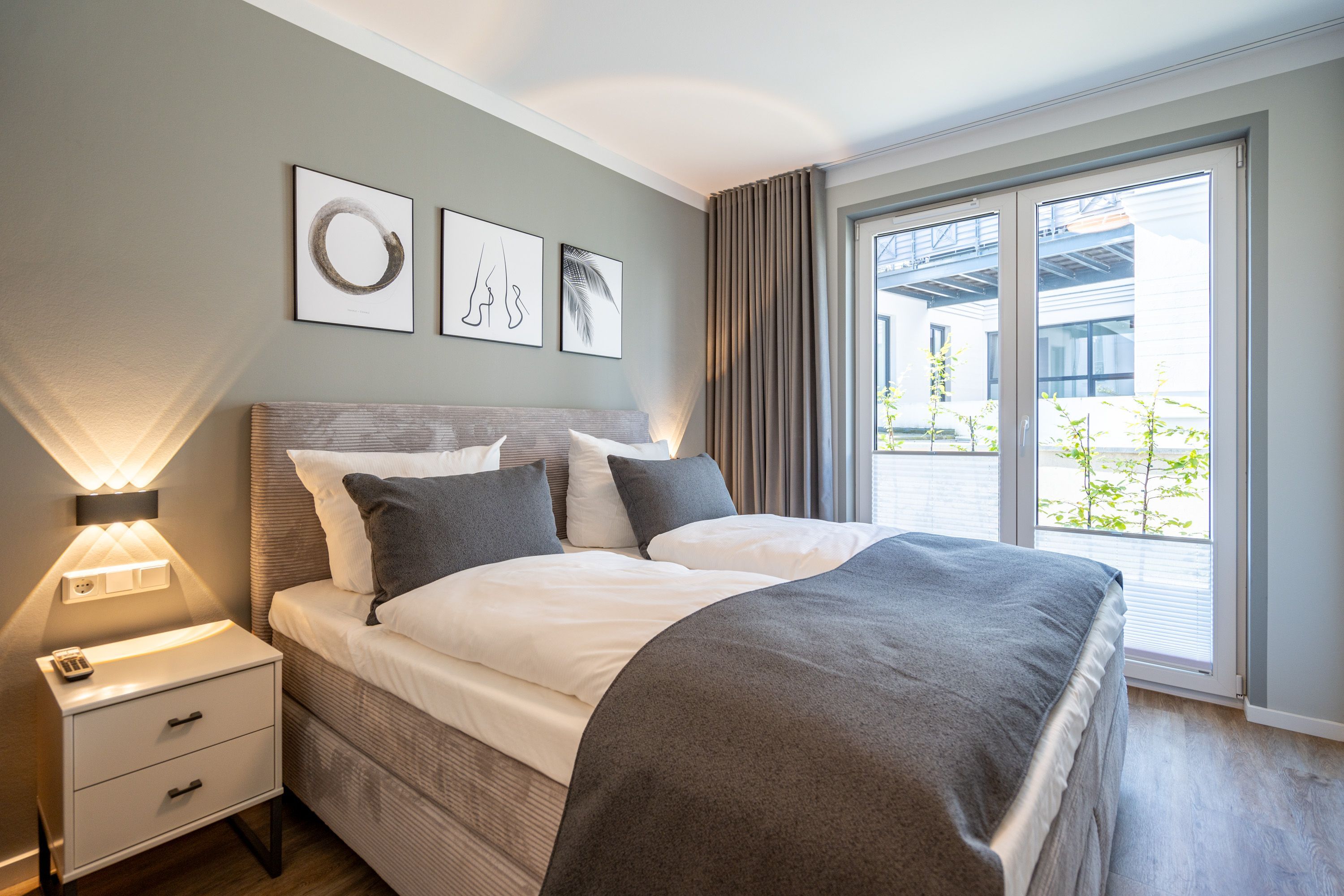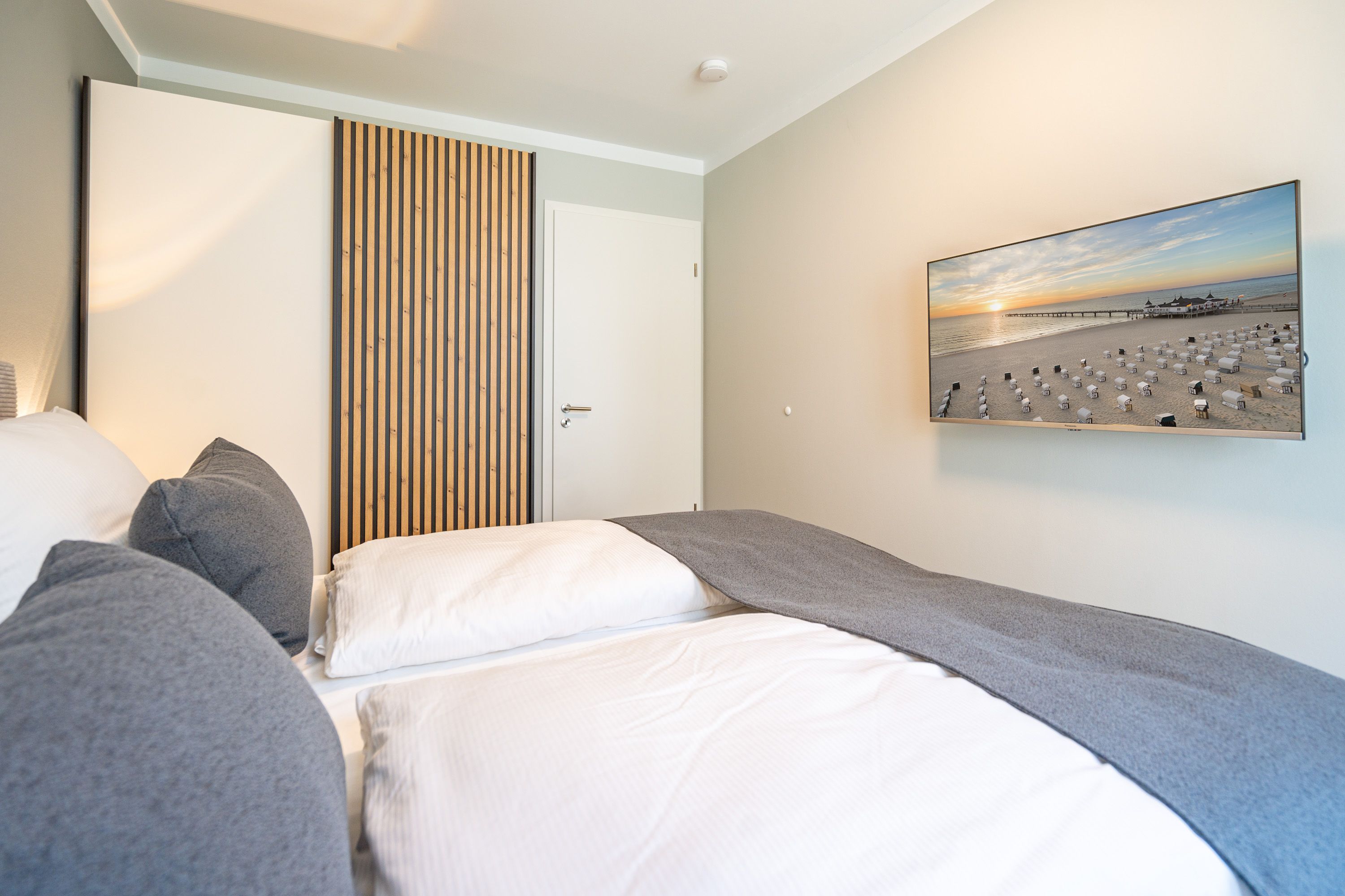 Herzlich willkommen in unserem 3-Raum-Appartement N° 1 im Erdgeschoss des Quartier 6! Auf 72 Quadratmetern bietet dieses gemütliche Domizil Platz für bis zu 4 Personen. Der offene Wohnbereich lädt mit einer voll ausgestatteten Küchenzeile, einem Essplatz für 4 Personen und einer gemütlichen Sitzgruppe zum Verweilen ein. Ein Flat-TV mit 50 Zoll und ein Gas-Kamin mit Fernbedienung sorgen für entspannte Abende. Von hier aus haben Sie direkten Zugang zur Nord-West-Terrasse, die mit Gartenmöbeln und einem Strandkorb ausgestattet ist. Die beiden Schlafzimmer sind mit komfortablen Boxspringdoppelbetten (1,80 m x 2,00 m), Kleiderschränken und weiteren Flat-TVs ausgestattet und garantieren erholsamen Schlaf. Für Ihr Wohlbefinden sorgen zudem zwei moderne Duschbäder, eines davon mit einer Finnischen Sauna ideal für entspannte Stunden nach einem ereignisreichen Tag. Zu Ihrer Unterkunft gehört ein PKW-Stellplatz in der Tiefgarage sowie ein eigener Abstellraum für Fahrräder. Selbstverständlich steht Ihnen kostenfreies WLAN zur Verfügung, sodass Sie auch im Urlaub stets verbunden bleiben können. Wir freuen uns darauf, Sie in unserem Appartement willkommen zu heißen!
