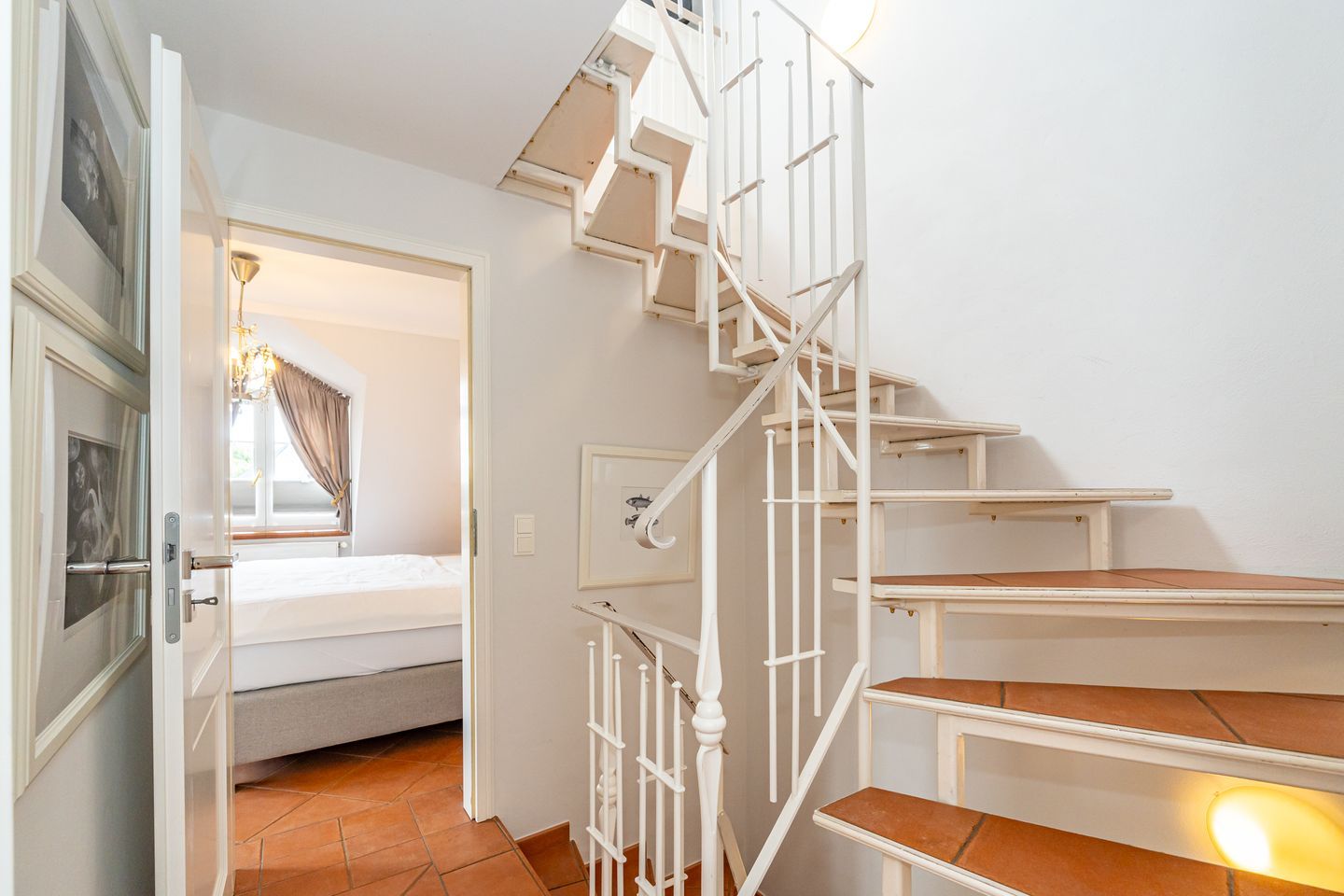 Das ferienhausteil Nordlicht begrüßt Sie auf 70qm² über 3 Ebenen verteilt. Im Erdgeschoss gelangen Sie durch die Haustür in einen kleinen Flur, von dort aus geht das Gäste WC und der Wohn- und Essbereich mit offener Küche ab. Die Küchenzeile verfügt über ein Cerankochfeld mit 4-Platten, Backofen, Spülmaschine, Mikrowelle, Kaffeemaschine und Waschtrockner. Im Wohnbereich erwartet Sie eine Esstischgruppe, Sofa und ein TV. Von dort aus haben Sie auch direkten Zugang zur möblierten Terrasse. Über eine Treppe gelangen Sie in das 1 OG. Hier befindet sich ein Schlafzimmer mit bequemen Boxspringbett, Einbaukleiderschrank und TV. Ebenfalls auf dieser Ebene befindet sich das Badezimmer mit Dusche und Badewanne. Über eine weitere Treppe gelangen Sie in das Dachgeschoss, wo sich das zweite Schlafzimmer mit Boxspringbett und TV befindet. Das zweite Schlafzimmer ist offen zum Treppenhaus gestaltet. Alle TV Geräte verfügen über einen zusätzlichen DVD Player. Am Ferienhaus steht Ihnen ein PKW Stellplatz zur Verfügung.