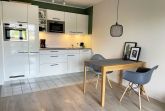 eine moderne Küchenzeile mit Geschirrspüler, Kühlschrank