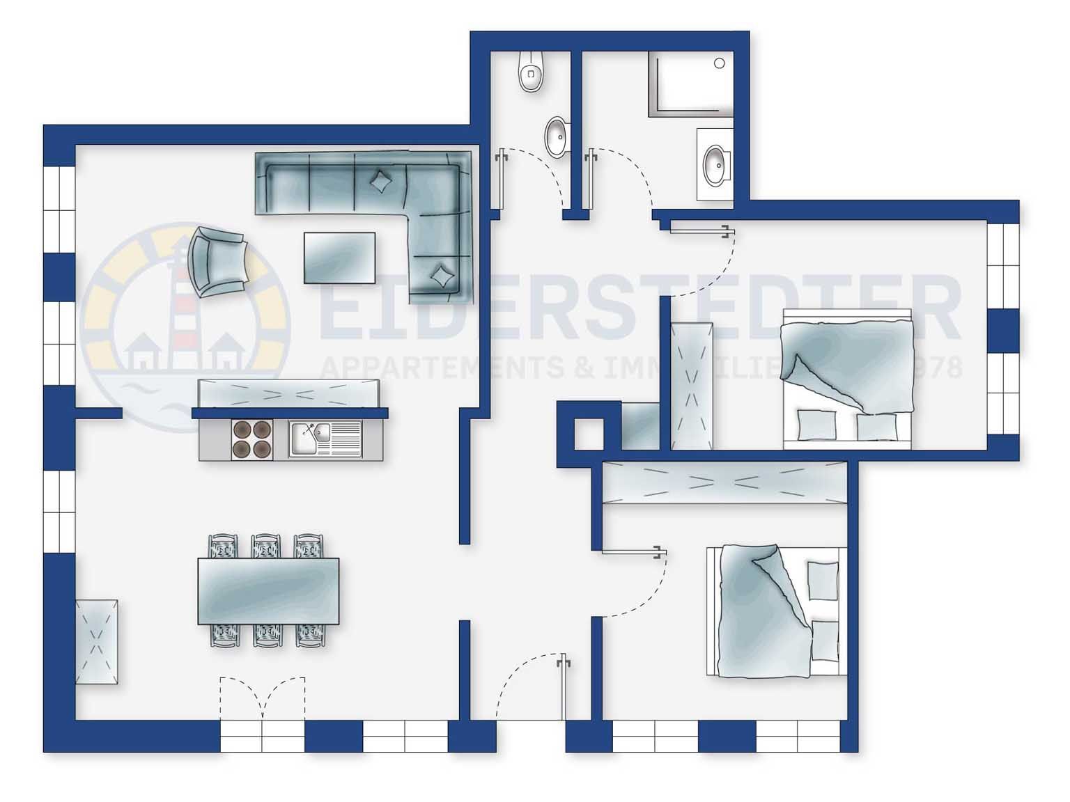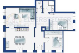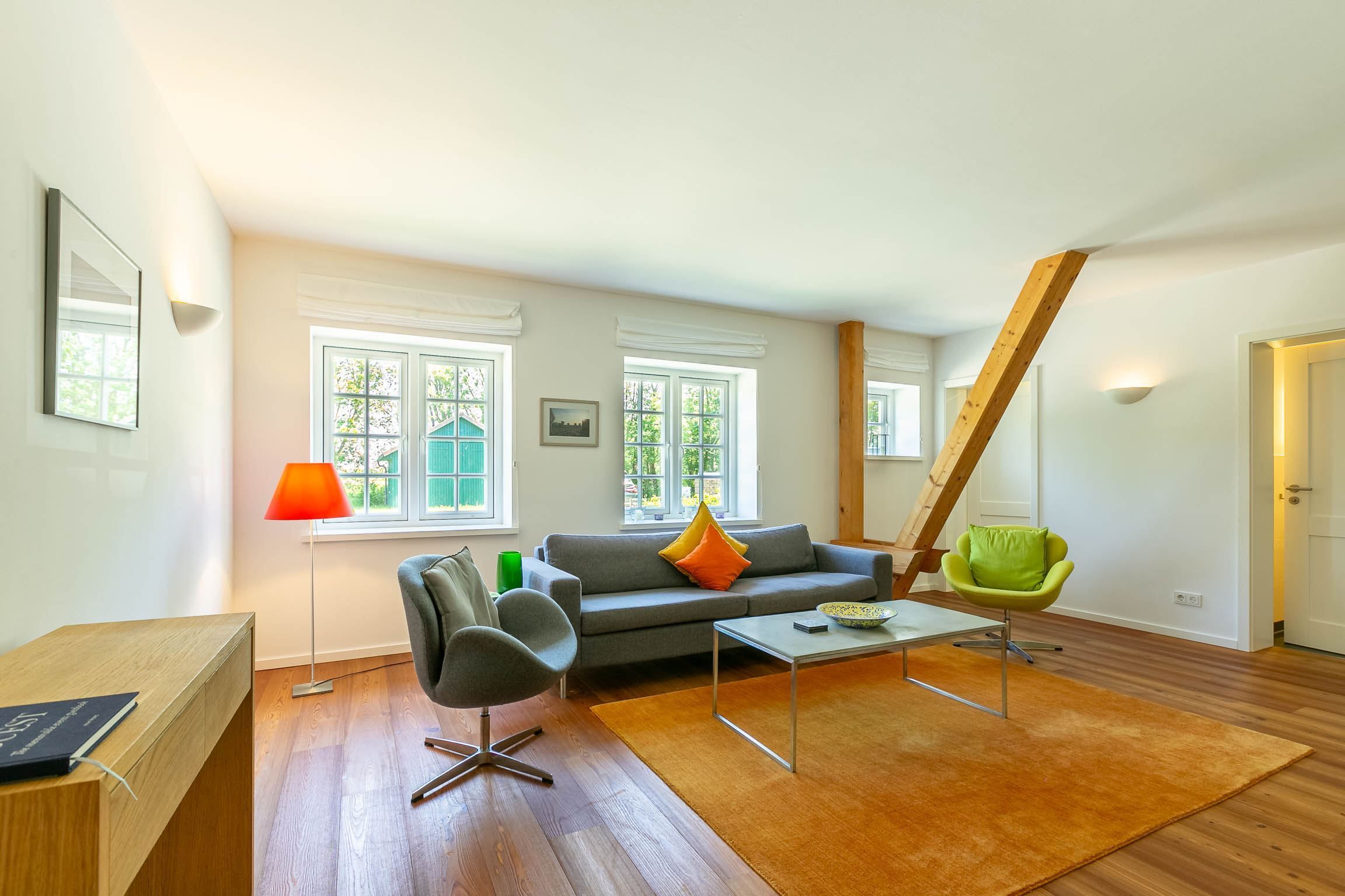 Exklusives Feriendomizil im restaurierten Reetdachhaus Old Barn mit 6 Zimmern und ca. 193 m² auf 1 Ebene (EG) für bis zu 8 Personen.In einmalig schöner, naturnaher Lage hinter dem Deich im Tümlauer Koog. Das ideale Domizil für einen höchst komfortablen Urlaub am Meer, Erholung garantiert. Dieses Domizil besteht aus den beiden separaten Wohnungen Suite Lena (ID 348) und Suite Anna (ID 349).