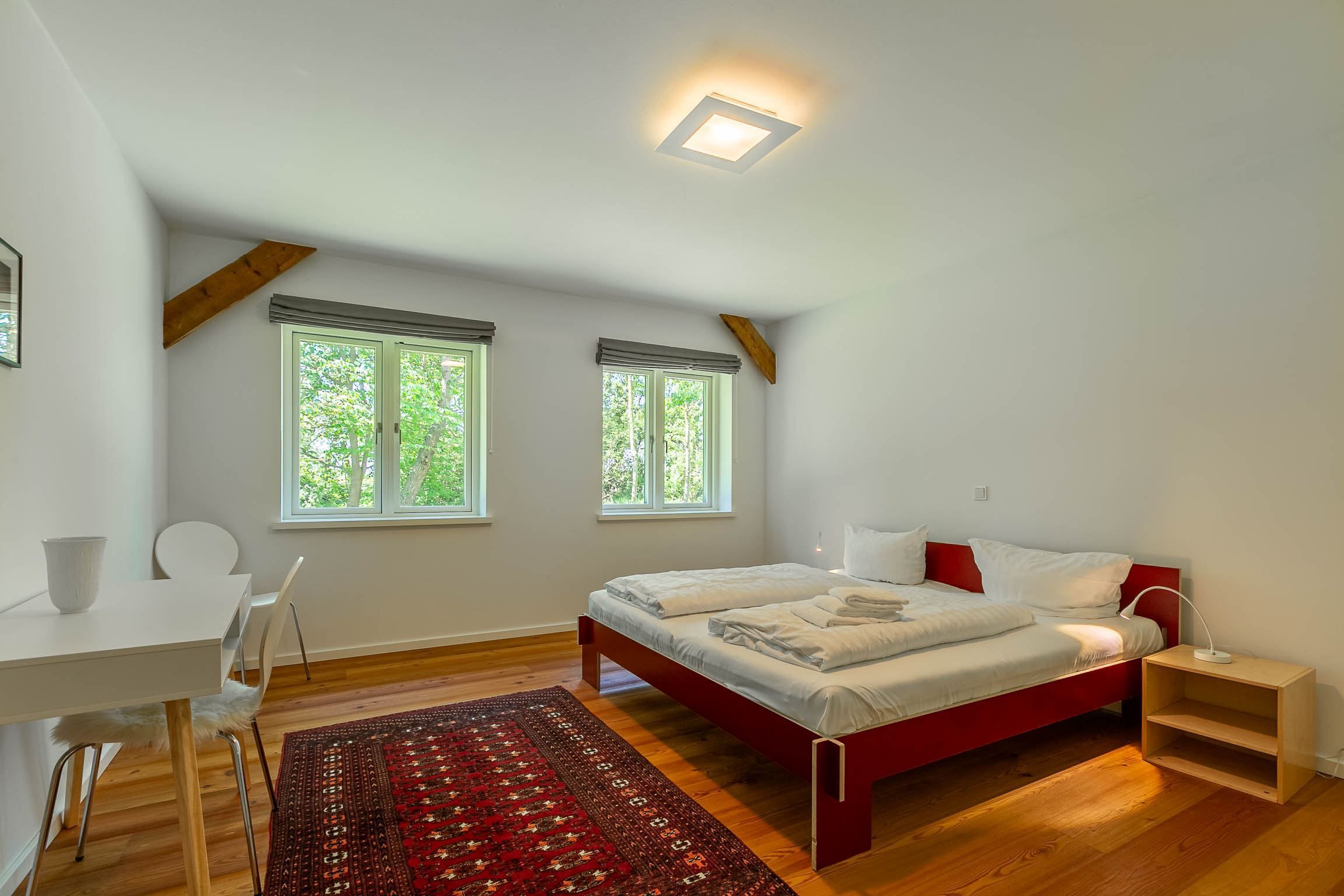 1. Schlafzimmer (ID 348) mit Doppelbett (2x 90x200cm), Kleiderschrank und Stuhl.