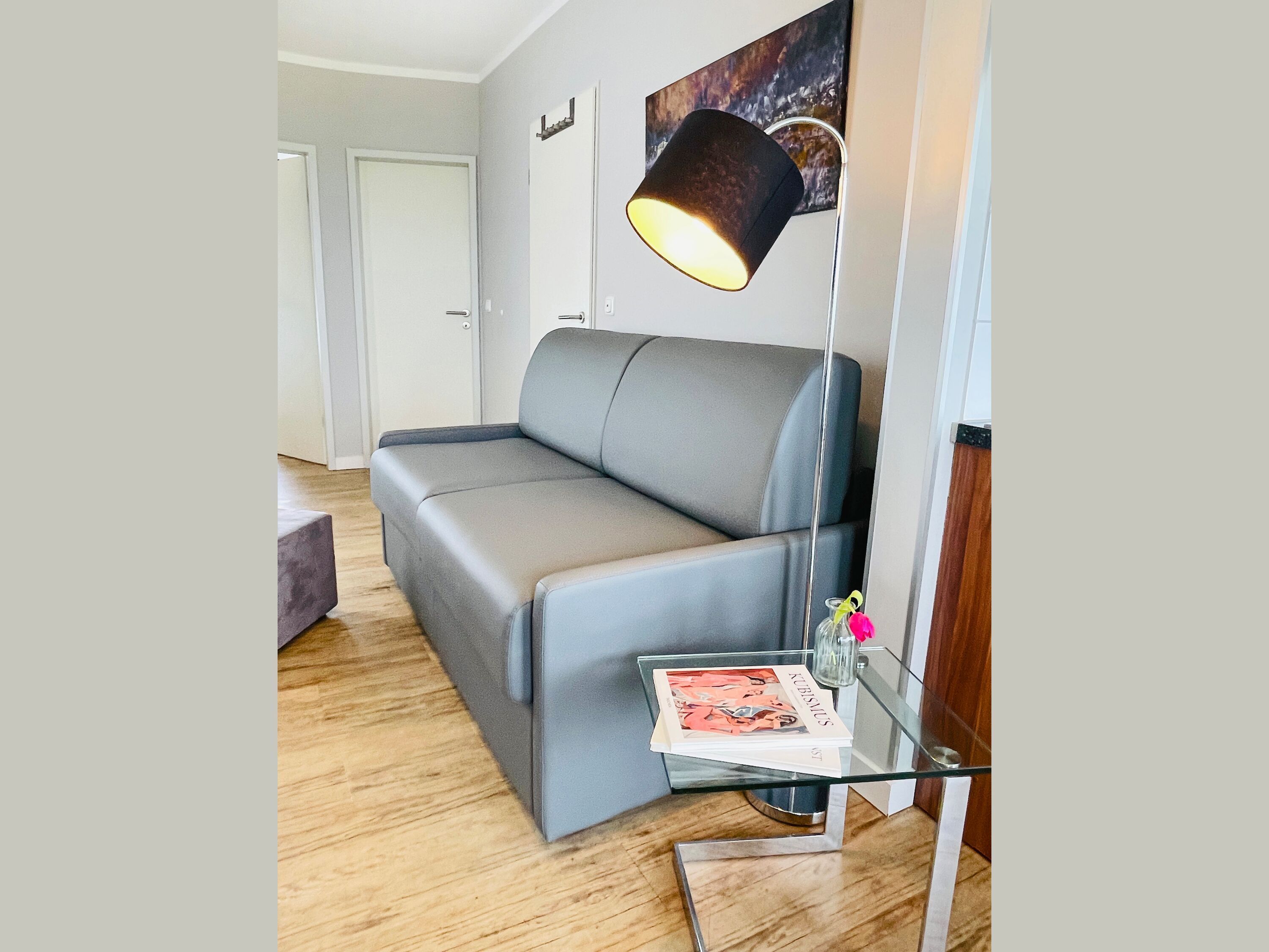 Die Padua im Gutshof Teichhof lässt Luxus und Erholung aufeinandertreffen. Diese einladende Wohnung bietet Platz für maximal 2 Erwachsene und 2 Kinder und einen atemberaubenden Meerblick, der Ihre Sinne verzaubern wird. Das Highlight dieser Wohnung ist die eigene private Sauna, ein Ort der Entspannung nach einem erlebnisreichen Tag. Tauchen Sie ein und lassen Sie den Alltag hinter sich, während Sie sich in wohliger Wärme verwöhnen lassen. Treten Sie ein in das Schlafzimmer, das mit einem komfortablen Doppelbett ausgestattet ist, und genießen Sie erholsame Nächte in einem ruhigen Ambiente. Das angrenzende Badezimmer verfügt über eine erfrischende Dusche, die Ihnen belebende Momente schenkt. Die offene Wohnküche lädt zum gemeinsamen Kochen und Verweilen ein, während modernste Ausstattung wie eine Mikrowelle und eine Spülmaschine Ihren Aufenthalt so angenehm wie möglich gestalten. Beginnen Sie Ihren Tag mit einer Tasse Kaffee, die Sie mit der bereitgestellten Filterkaffeemaschine zubereiten können. Bei schönem Wetter lädt der Garten zum Entspannen ein. Der Strand liegt direkt vor der Tür und lädt zu erfrischenden Badegängen und entspannten Stunden am Meer ein. Fahrradabstellmöglichkeiten und Parkplätze stehen auf dem Gelände zur Verfügung, während die Lage des Gutshofs Ihnen ermöglicht, die idyllische Natur vom Teichhof aus zu erkunden. Der Check-in erfolgt bequem eigenständig. Entdecken Sie auch den Streichel-Zoo mit Schafen und die Wiese mit Ponys auf dem Gelände des Teichhofs für unvergessliche Momente mit Ihren Liebsten. Die Padua bietet die perfekte Kombination aus Erholung und der Nähe zu vielfältigen Aktivitäten und Annehmlichkeiten für einen unvergesslichen Aufenthalt. Gönnen Sie sich diesen einzigartigen Urlaubstraum und erleben Sie pure Entspannung am Meer.