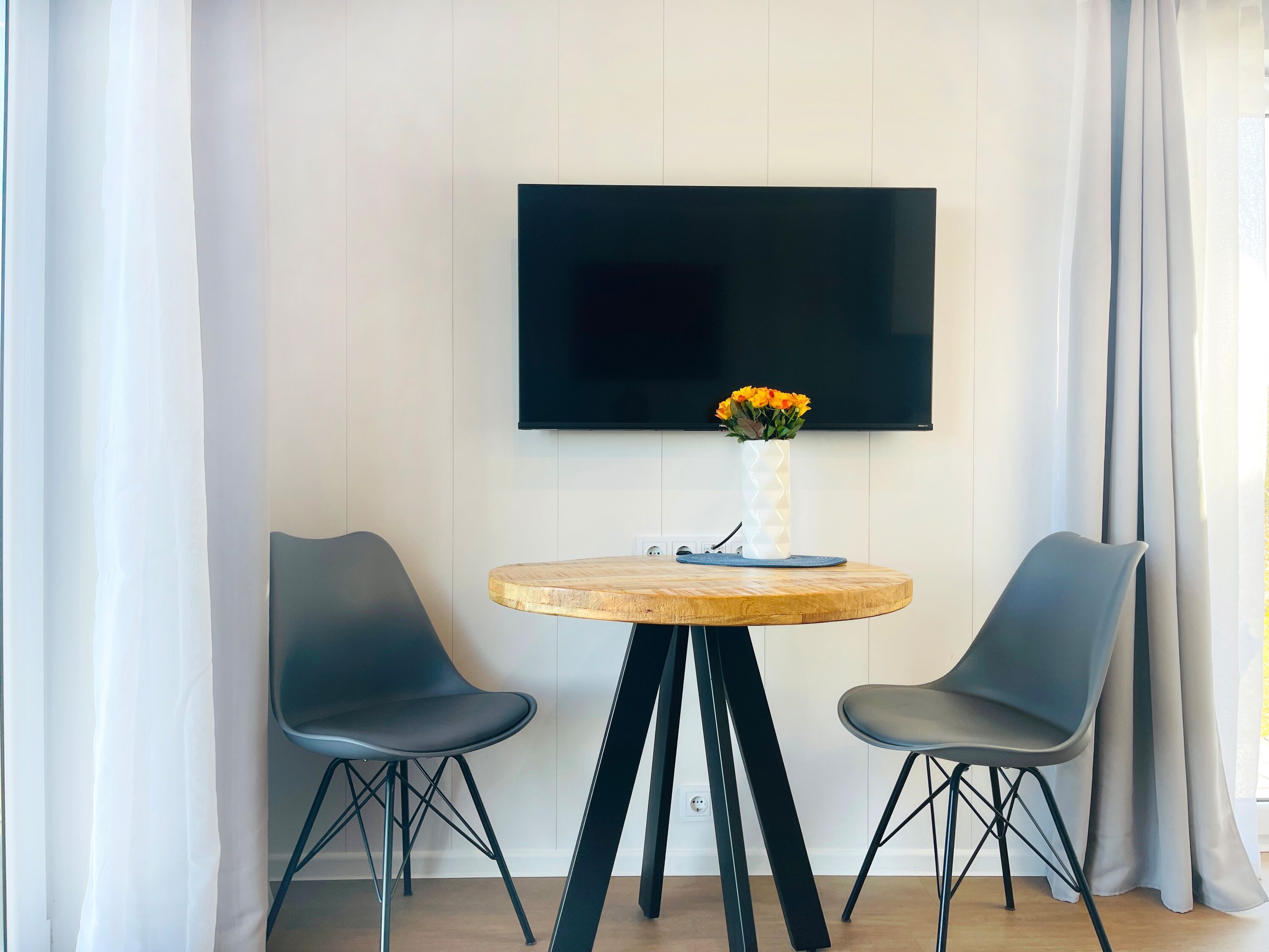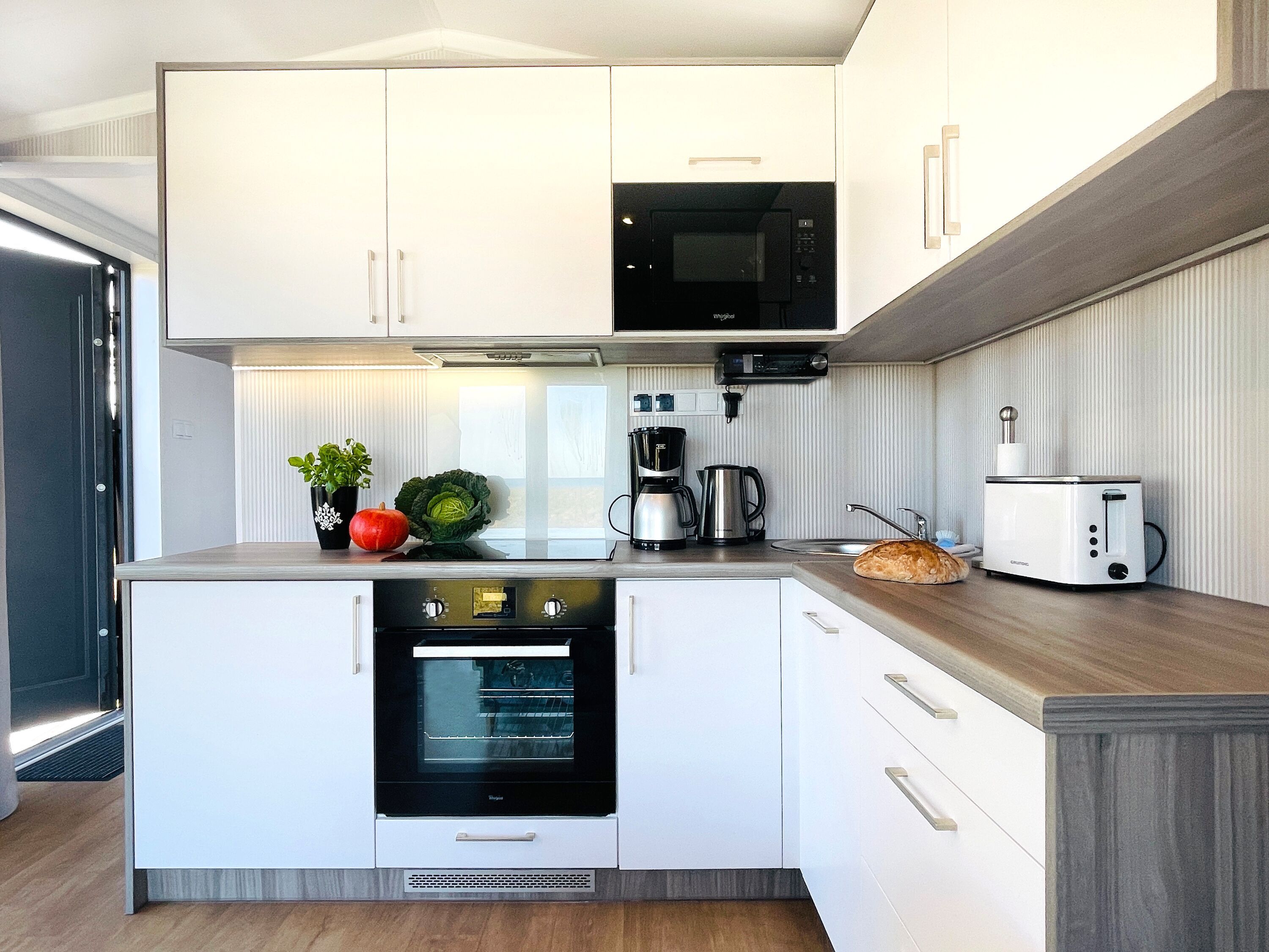 Im Garten des Gutes Teichhof erwartet Sie das Tiny House Anne Bonny für Ihren entspannten Urlaub am Meer. Dieses charmante Strandhaus hat Platz für bis zu 2 Erwachsene und 2 Kinder und bietet einen atemberaubenden Blick auf das Meer. Genießen Sie die Behaglichkeit eines Doppelbettes im Schlafzimmer sowie das eigene Badezimmers mit Dusche. Die Wohnküche lädt zu gemeinsamen Kocherlebnissen ein und ist mit modernen Annehmlichkeiten wie einer Filterkaffeemaschine, Mikrowelle und Spülmaschine ausgestattet. An sonnigen Tagen lädt Ihre private 15 m2 große Terrasse im Garten zum Entspannen und Genießen ein. Im Wohnzimmer mit TV, DVD und HiFi-Anlage finden Sie erholsame Stunden der Unterhaltung. Der Strand liegt direkt vor Ihrer Tür und verspricht Momente der Ruhe und Erholung. Überdachte Fahrradabstellmöglichkeiten und Parkplätze für Ihr Auto stehen auf dem Gelände des Gutshofs zur Verfügung. Die einzigartige Lage des Teichhofs ermöglicht es Ihnen, die idyllische Natur zu erkunden, während Sie zugleich von der Nähe zu zwei Restaurants und der nächsten Stadt profitieren, die nur 5 Kilometer entfernt liegt und eine Vielzahl von Einkaufs- und Restaurantmöglichkeiten bietet. Für gesellige Grillabende steht eine Grillmöglichkeit bereit. Zum Be- und Entladen können Sie gerne direkt am Strandhaus halten. Der Check-in erfolgt bequem eigenständig. Auf dem Gelände des Teichhofes erwartet Sie zudem ein Streichel-Zoo mit Schafen und eine Wiese mit Ponys. Für den individuellen Verbrauch vor Ort fallen Gebühren in Höhe von 90 Cent pro kWh an, die vor der Abreise zu begleichen sind. Das Tiny House James Cook bietet somit die ideale Kombination aus Ruhe und Erholung sowie der Nähe zu verschiedenen Aktivitäten und Annehmlichkeiten für einen unvergesslichen Urlaub.