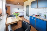 Der Wohn-/Schlafbereich der Ein-Raum-Wohnung überzeugt durch seine klassische und praktische Einrichtung. Sie finden in der Wohnung ein gemütliches Boxspringbett, eine Sitzgruppe, einen Esstisch und eine Kochzeile vor. Außerdem steht Ihnen ein Bad mit Dusche zur Verfügung. Nach einem langen Inseltag können Sie vor einem Flachbildfernseher und mit kostenfreien schnellen WLAN entspannen. Bettwäsche, Handtücher und Küchentücher werden gestellt und wöchentlich gewechselt. Pro Haustier und Tag berechnen wir Ihnen 10 Euro. Zwei Haustiere sind maximal erlaubt.