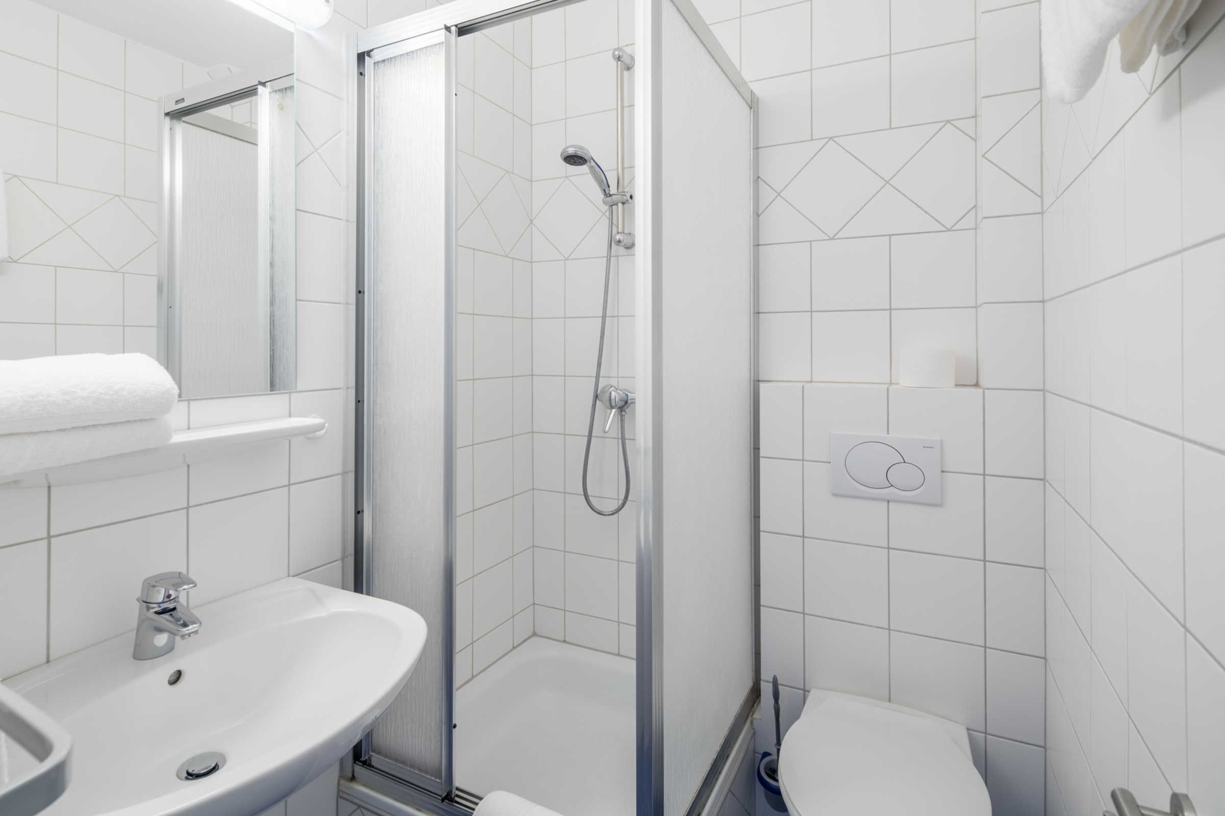 Flachbildfernseher WLAN Radio Küchenzeile mit Elektroherd (2 Platten) Kühlschrank Wasserkocher Toaster Badezimmer inkl. Dusche und Haartrockner