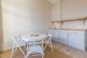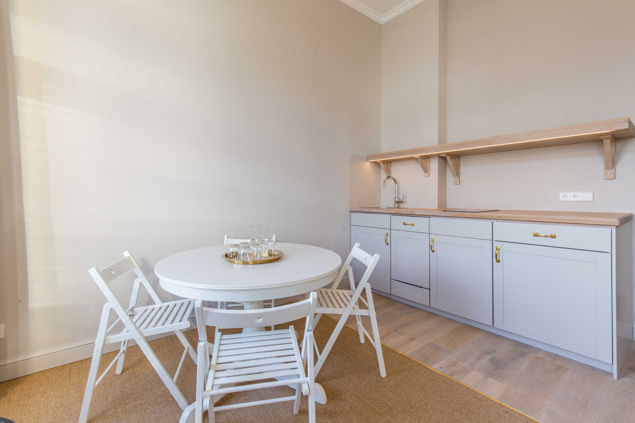 Auch die Vorteile von kostenfreien WLAN dürfen Sie hier genießen. Alle Wohnungen sind mit einem Sisal-Teppich ausgestattet, vor der Küchenzeile finden Sie Echtholzboden vor.