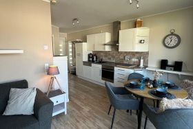 - Wohnbereich mit moderner Einbauküche und gemütlichem Sitzbereich inkl. Sat-TV, Radio, CD- und DVD Spieler