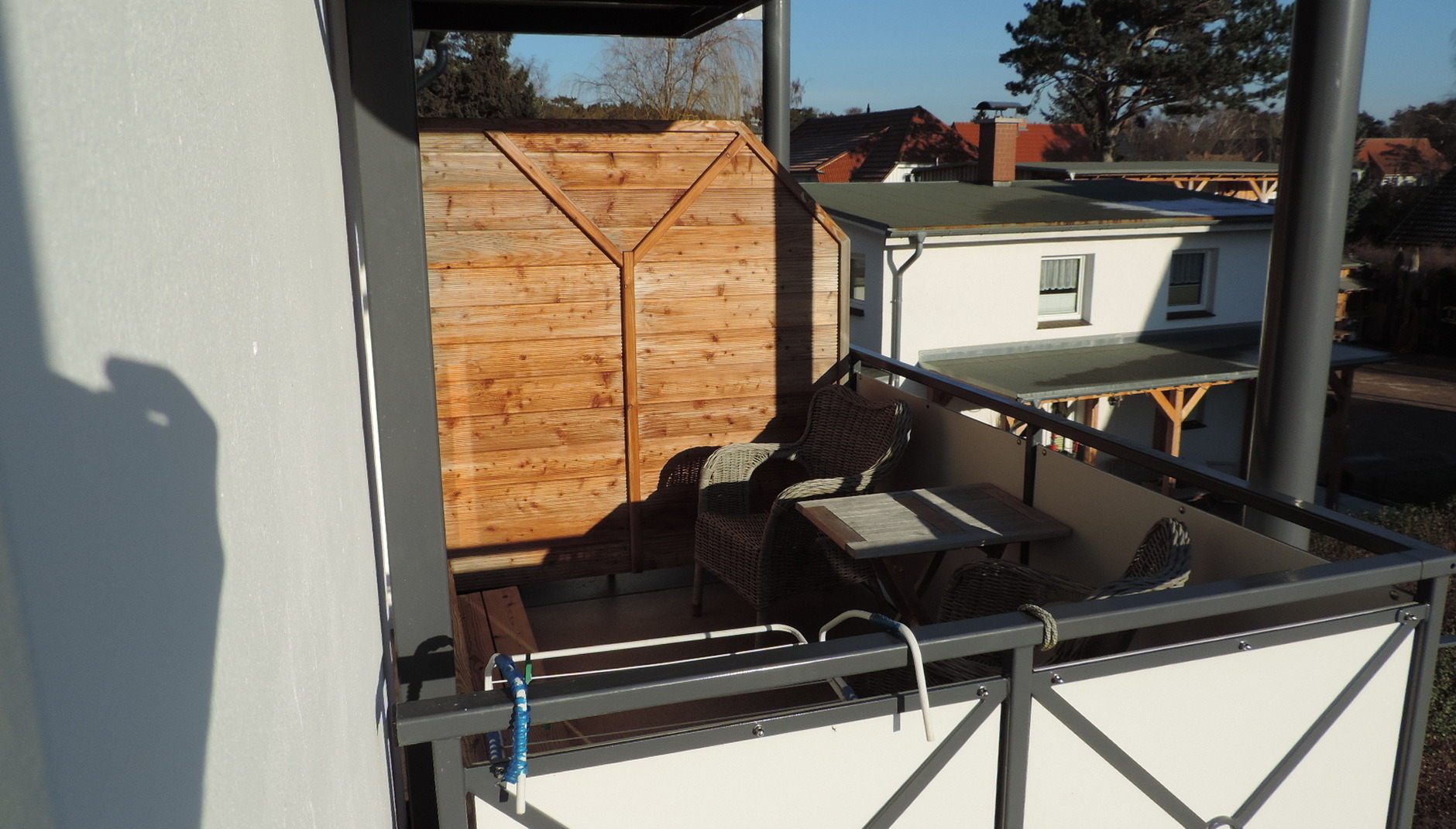 Südbalkon: Zugang über das Bad, ideal für sonnige Stunden im Freien.