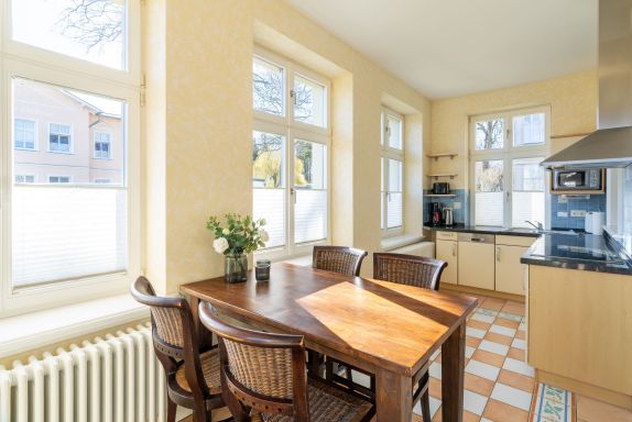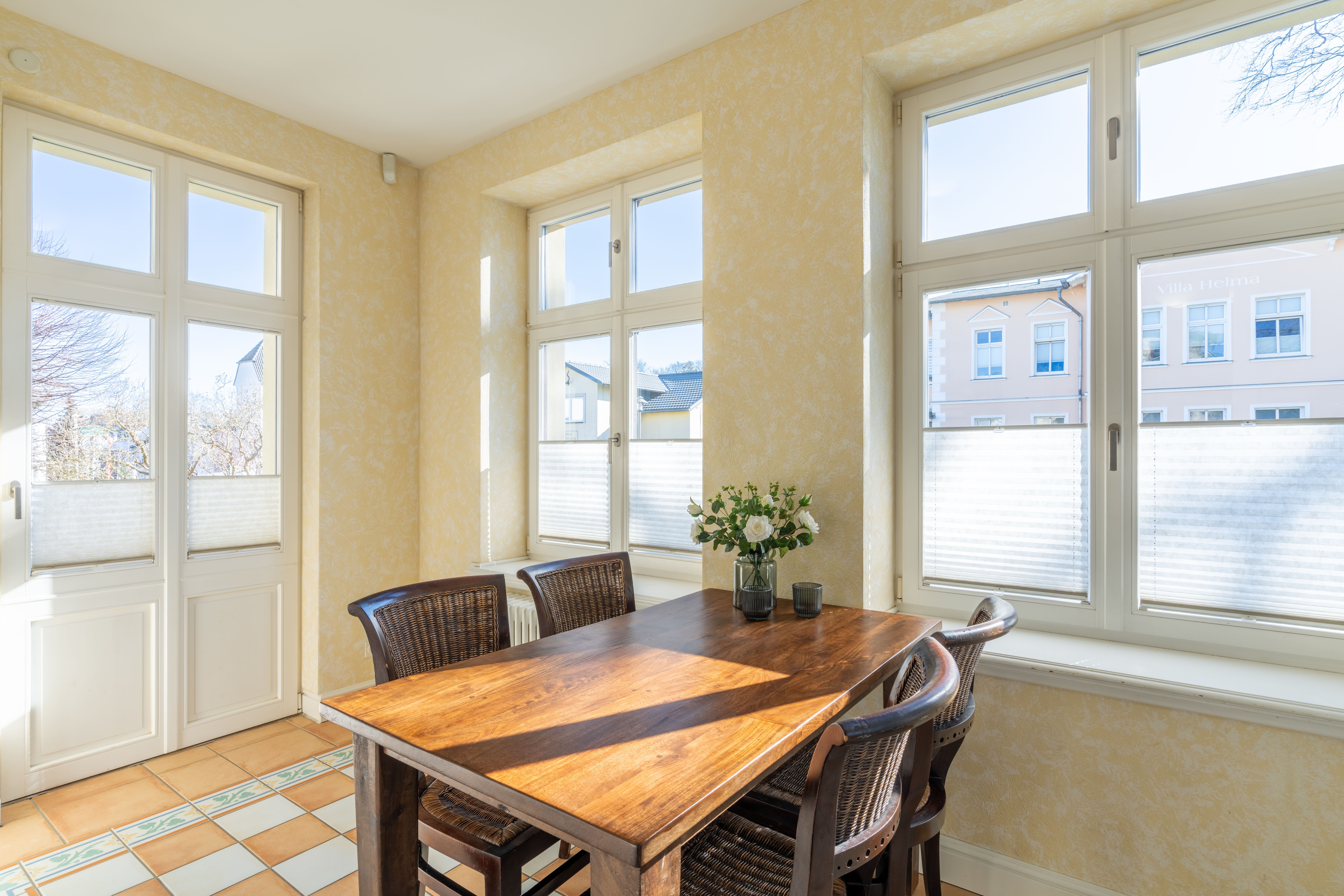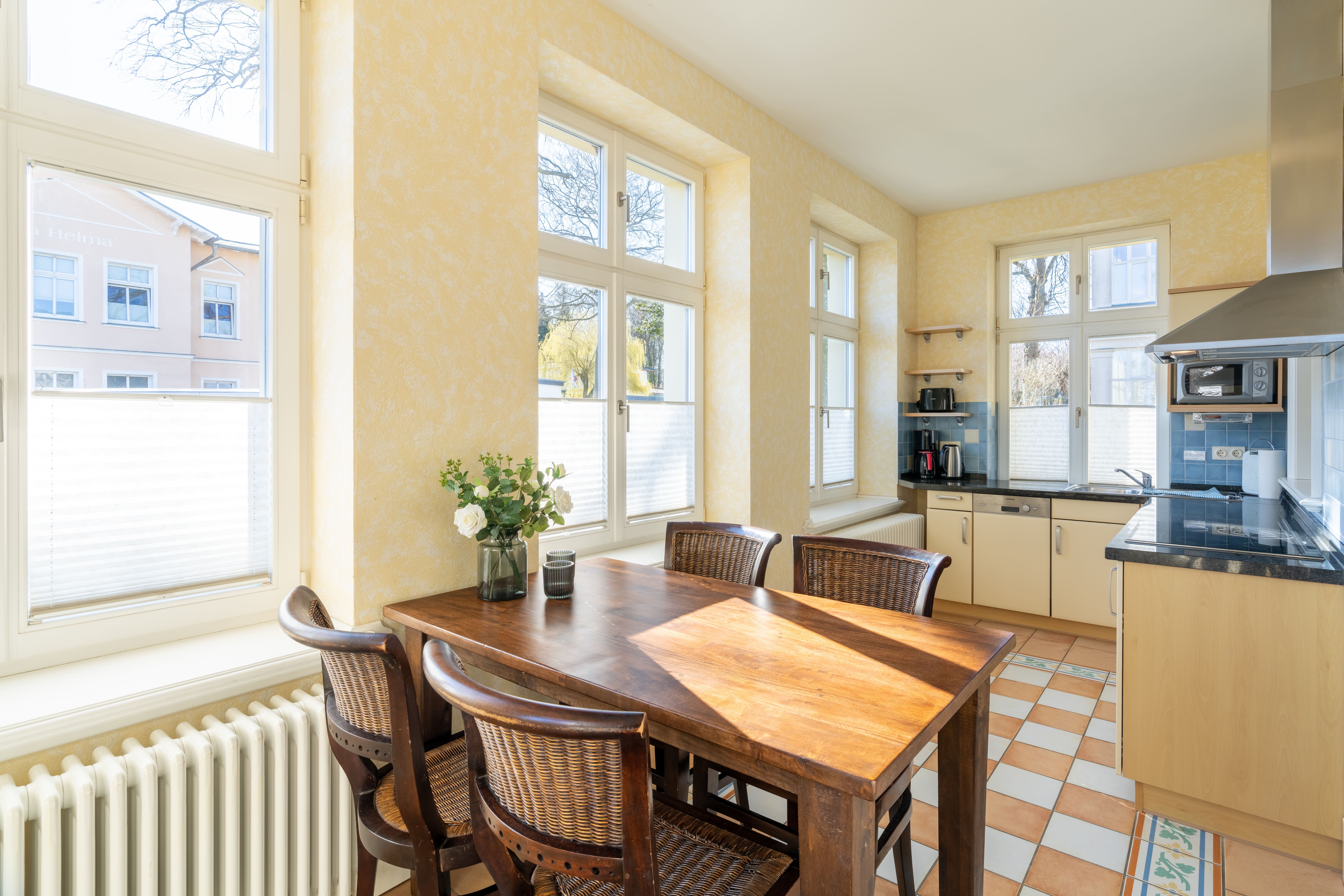 Umgeben von altem Baumbestand befindet sie sich in ruhiger Nachbarschaft weiterer Sommerresidenzen der Gründerzeit erbauter Villen. Zu Fuß erreichen Sie in zwei Minuten das gepflegte Zentrum des Ostseebades Zinnowitz mit Bernsteintherme, Seebrücke und Strand.