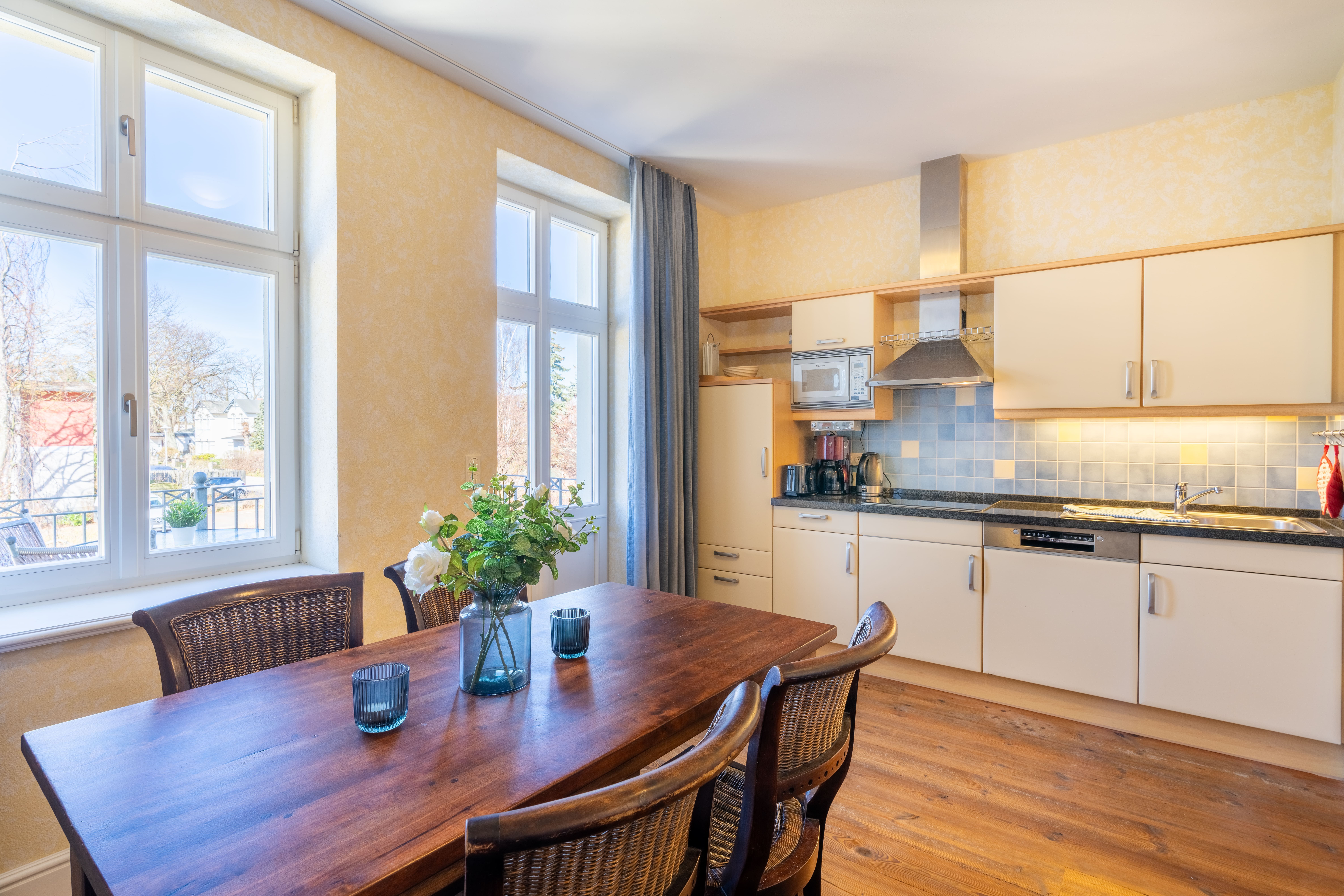 Umgeben von altem Baumbestand befindet sie sich in ruhiger Nachbarschaft weiterer Sommerresidenzen der Gründerzeit erbauter Villen. Zu Fuß erreichen Sie in zwei Minuten das gepflegte Zentrum des Ostseebades Zinnowitz mit Bernsteintherme, Seebrücke und Strand.