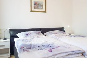 Ein weiteres Schlafzimmer mit Doppelbett, Kleiderschrank und Nachttisch sorgt für zusätzlichen Komfort und Ruhe. Die Treppe zum Obergeschoss ist abschließbar, was zusätzliche Sicherheit bietet (besonders bei Reisen mit Kindern oder Hund).