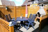 Ferienhaus in ruhiger Lage. Holztreppe im Haus, Teppichboden, Küche & Bad gefliest, Terrasse, Nichtraucherhaus