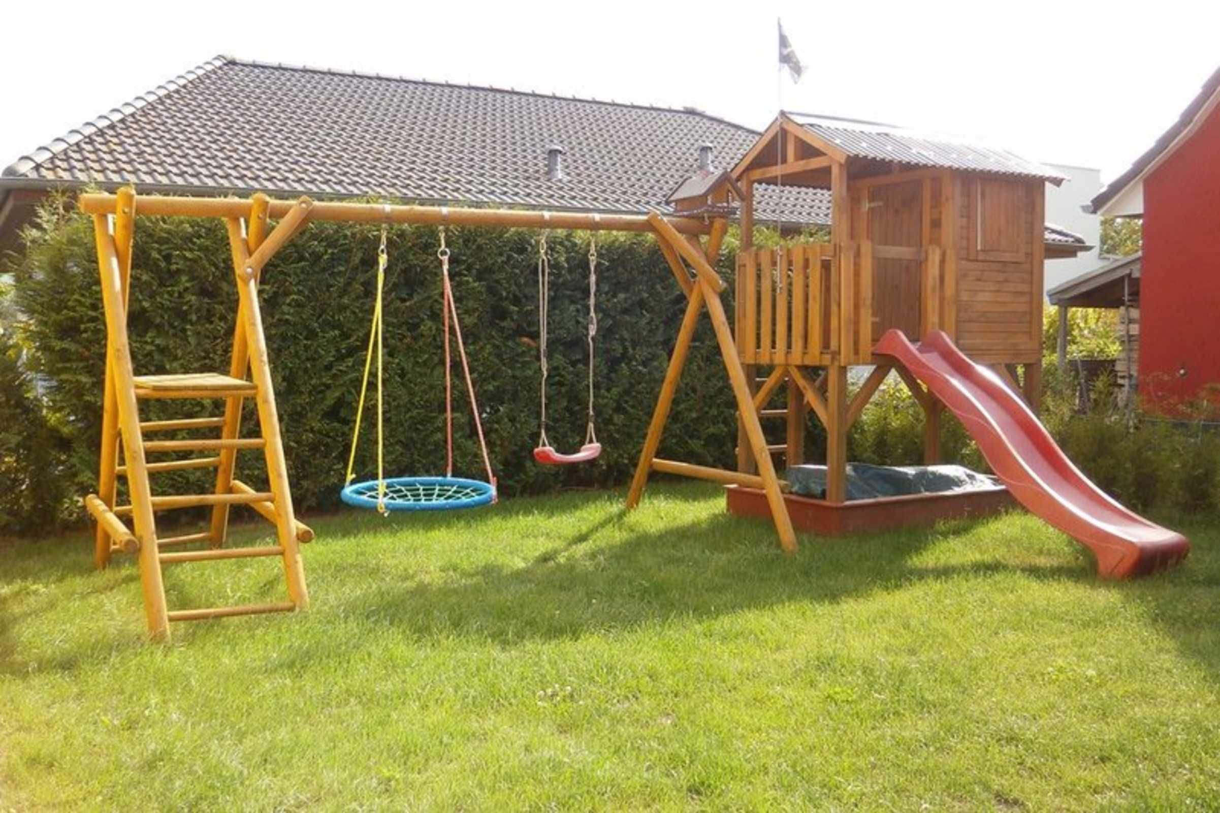 Das 1,5 geschössige Ferienhaus ist modern eingerichtet und verfügt über ein Wohnzimmer, ein Schlafzimmer mit Doppelbett und ein weiteres Schlafzimmer mit zwei Einzelbetten, einer Küche mit Miniküchenanlage inkl. Kühlschrank, Mikrowelle, Sat-TV, Radio sowie Bad mit Dusche/WC. Eine Sitzecke mit Grillmöglichkeit lädt zum Verweilen ein. Ein Spielplatz darf auf Anfrage genutzt werden.
