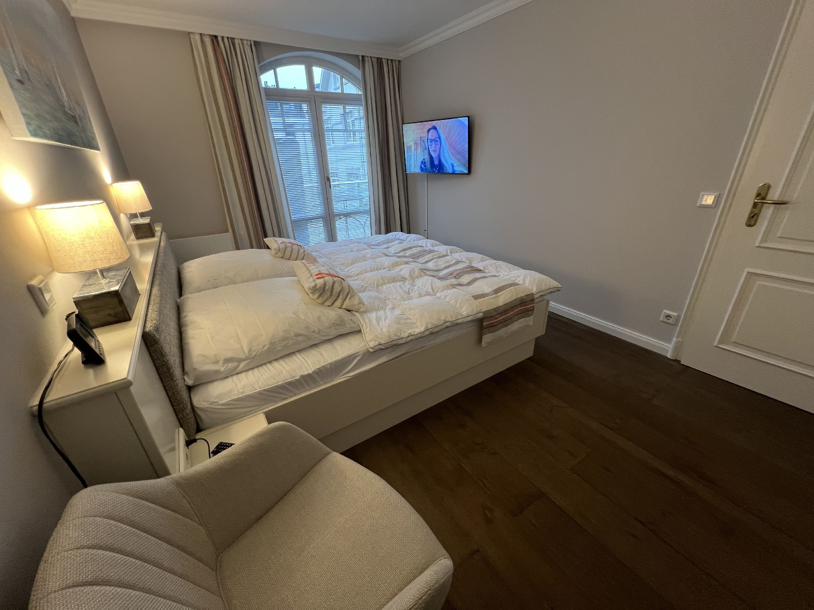 Exklusive 2-Zimmer-Ferienwohnunng in der 'Residenz Bismarck' mit ca. 60 m² auf 1 Ebene (1. OG, mit Fahrstuhl) für bis zu 3 Personen. Die Wohnung wurde im November 2024 renoviert.