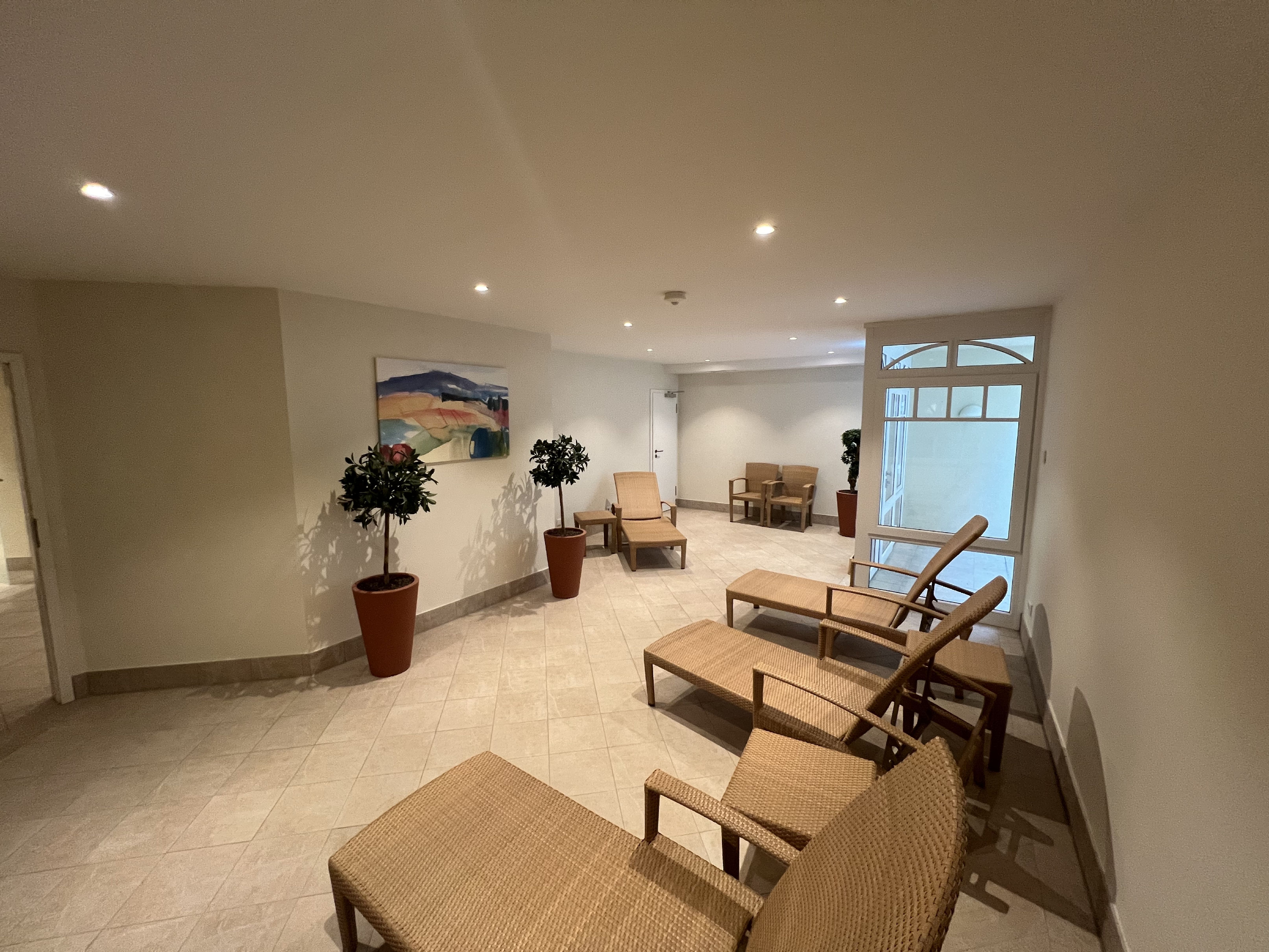 Im Keller finden Sie einen Fahrrad-Abstellraum sowie Ihren Tiefgaragenplatz. Ein einzigartiger Wellnessbereich im Haus mit großem Schwimmbad, finnischer Sauna, Dampfsauna (alles incl.), Solarium (gegen Gebühr) sowie einem großen Ruheraum im Haus bieten hervorragende Möglichkeiten zum Relaxen.