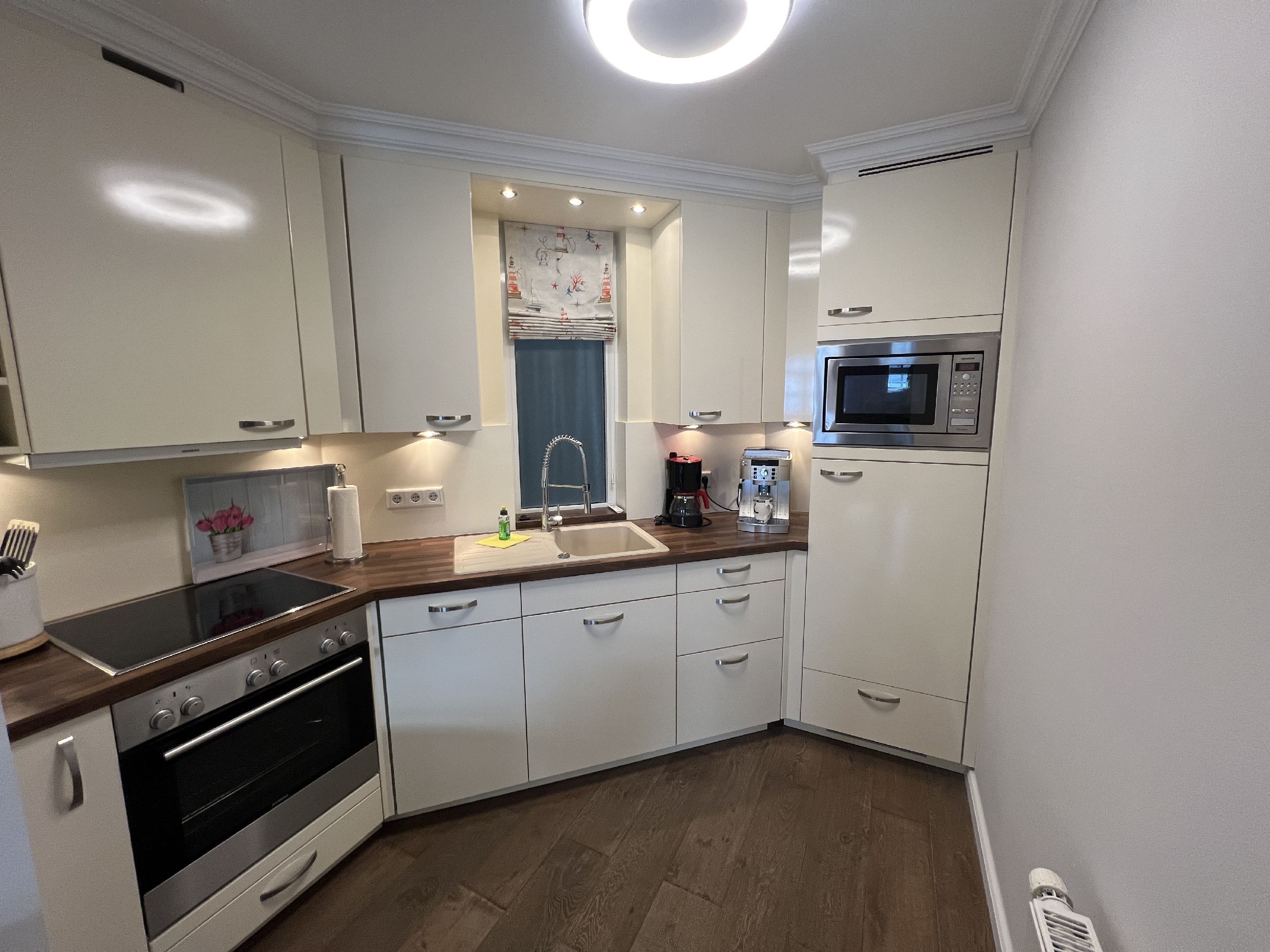 Offene Küche mit 4-flammigem Herd, Geschirrspüler, Filter-Kaffeemaschine sowie Kaffeevollautomaten und allem Komfort.